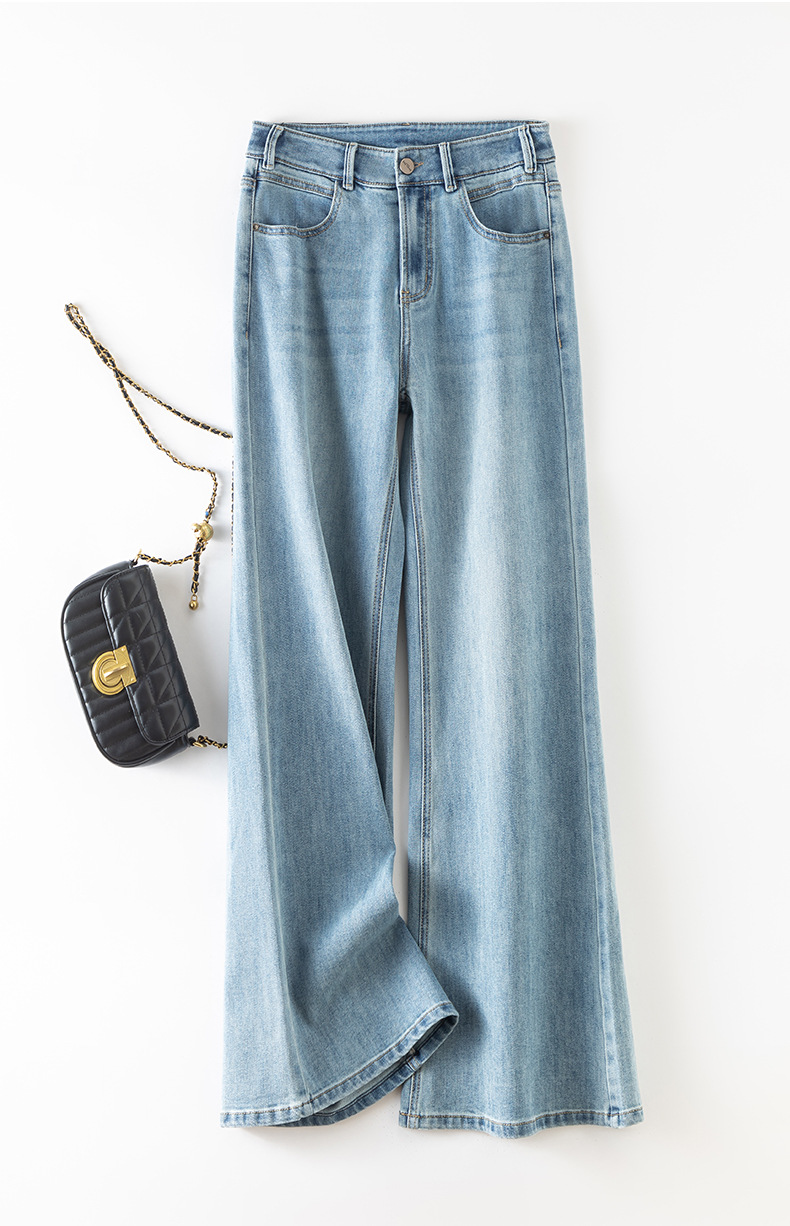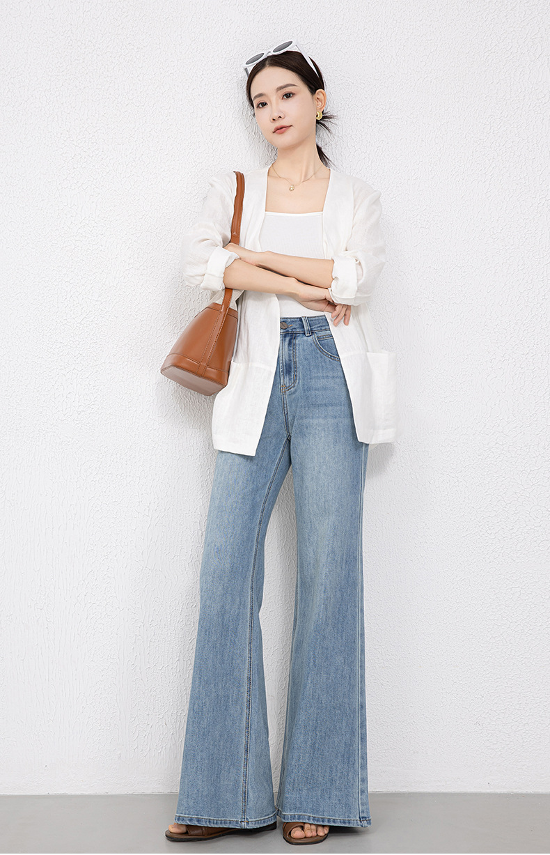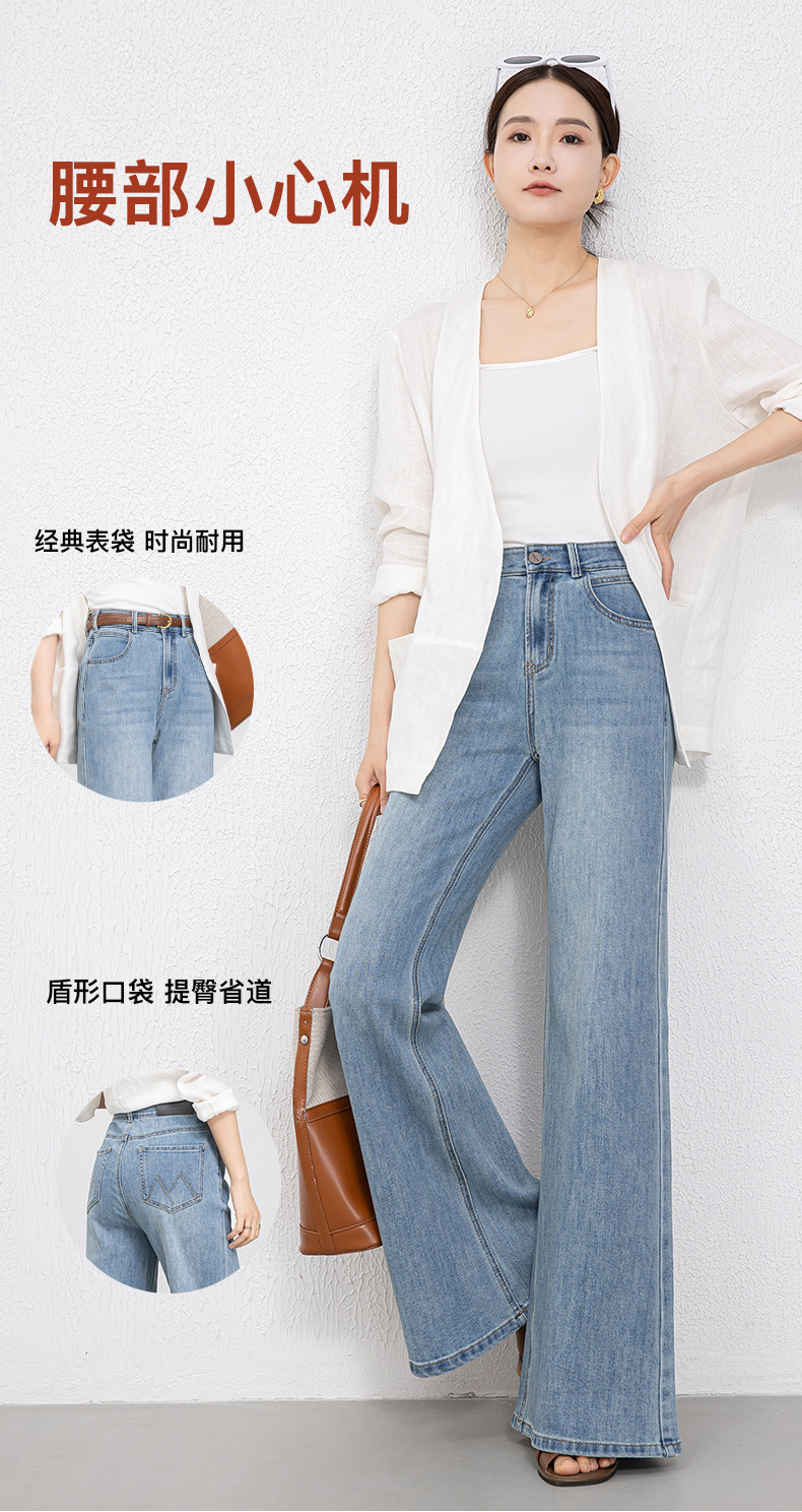 가볍고 통기성 마이크로 청바지 여성의 2025 여름 새로운 높은 허리 처진 뿔 바지 8180