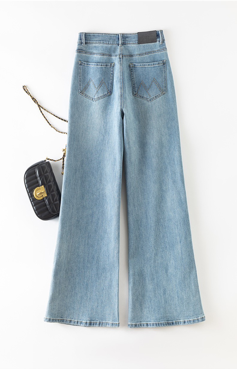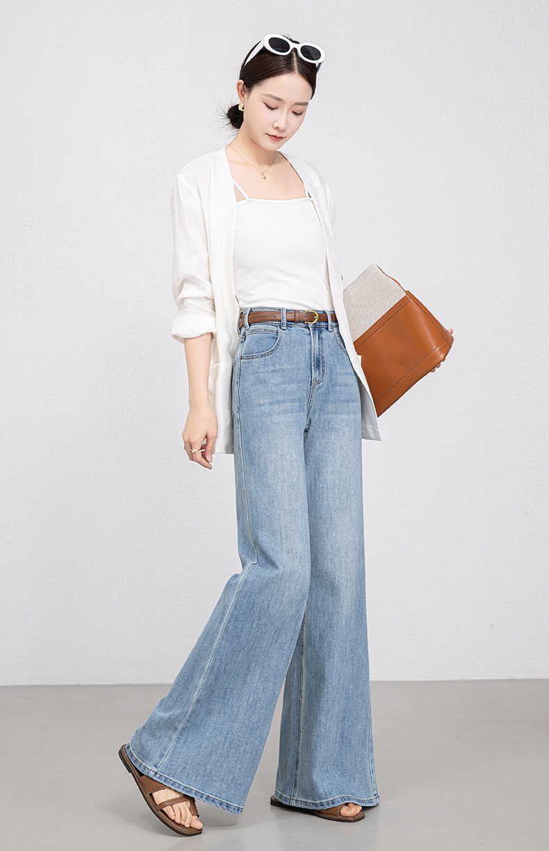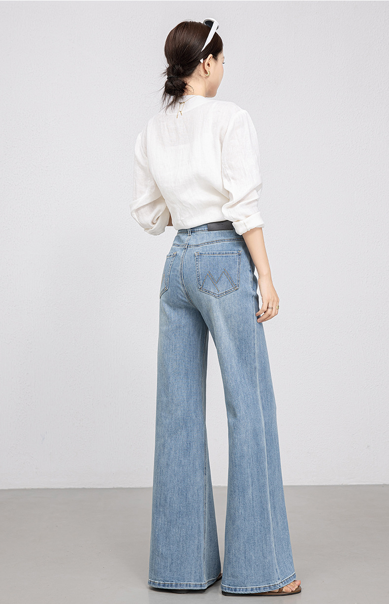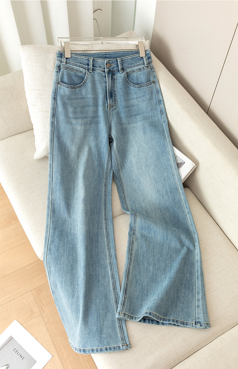 가볍고 통기성 마이크로 청바지 여성의 2025 여름 새로운 높은 허리 처진 뿔 바지 8180