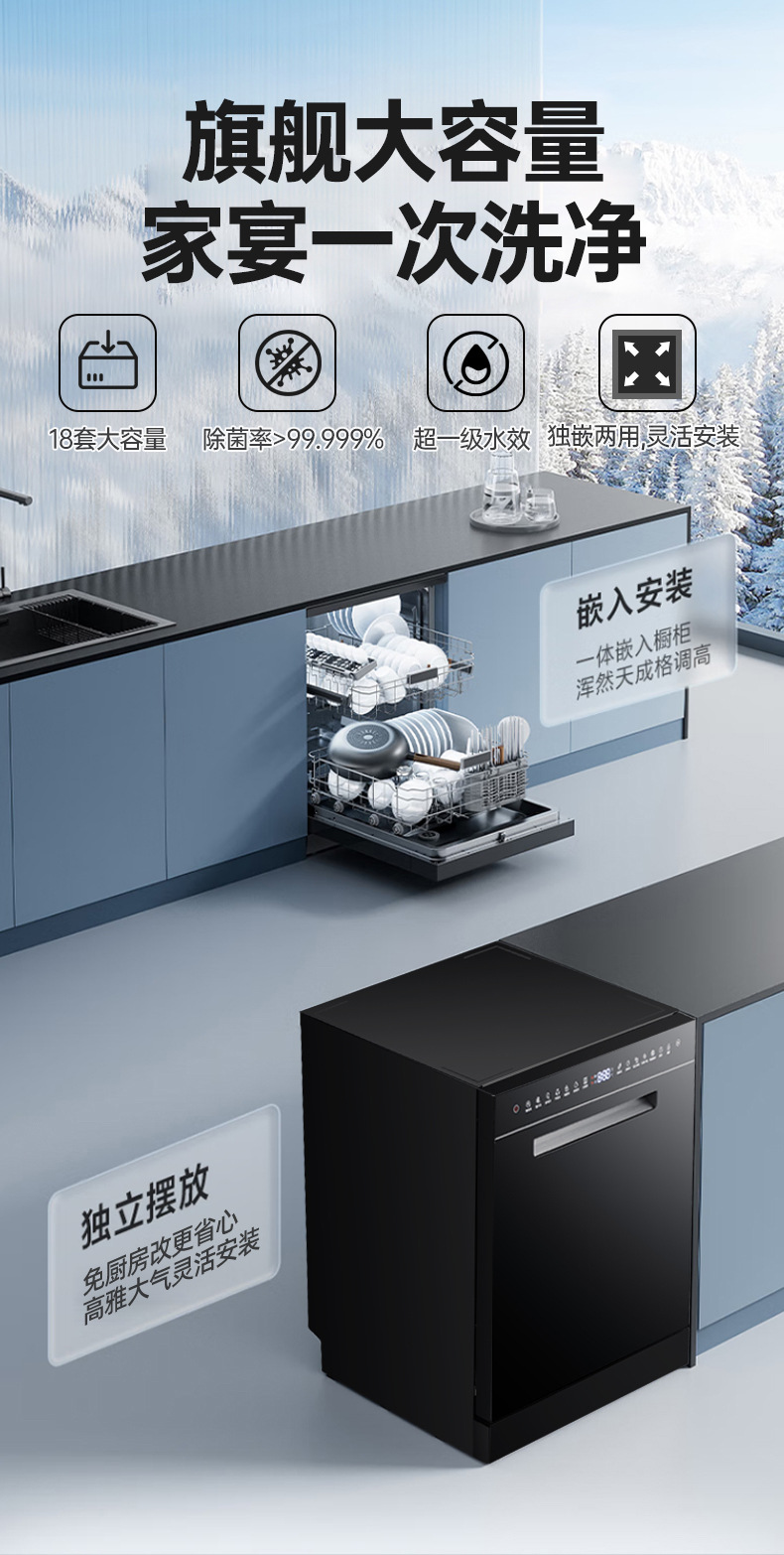대용량 가정용 자동 식기 세척기 DC 주파수 변환 18 세트 AI 계층 세척 3 층 단일 임베디드 이중 목적 식기 세척기스토어 가기