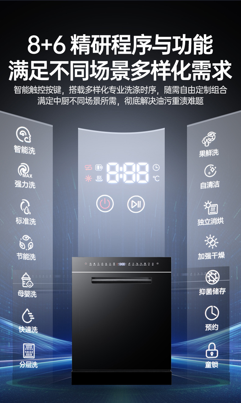 대용량 가정용 자동 식기 세척기 DC 주파수 변환 18 세트 AI 계층 세척 3 층 단일 임베디드 이중 목적 식기 세척기