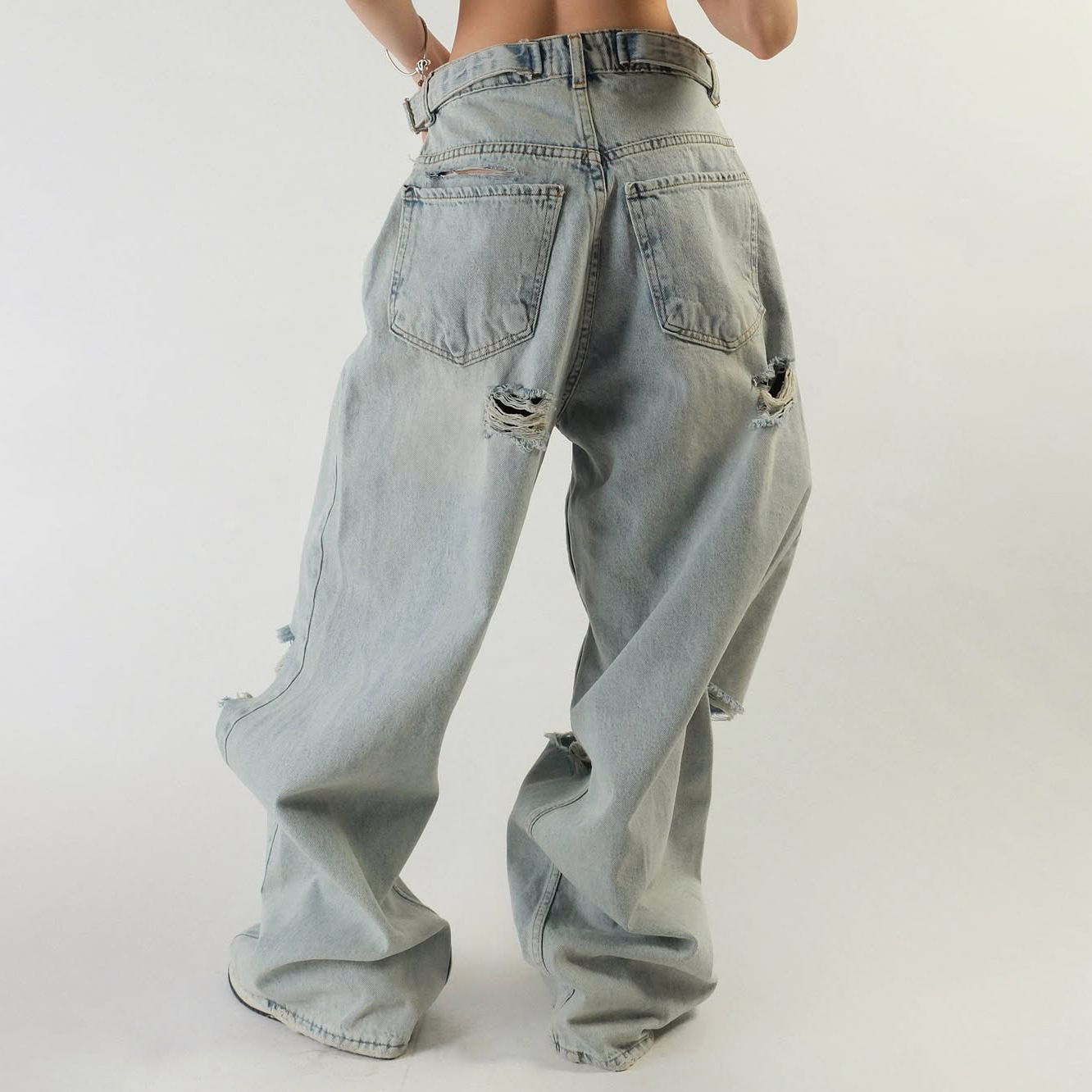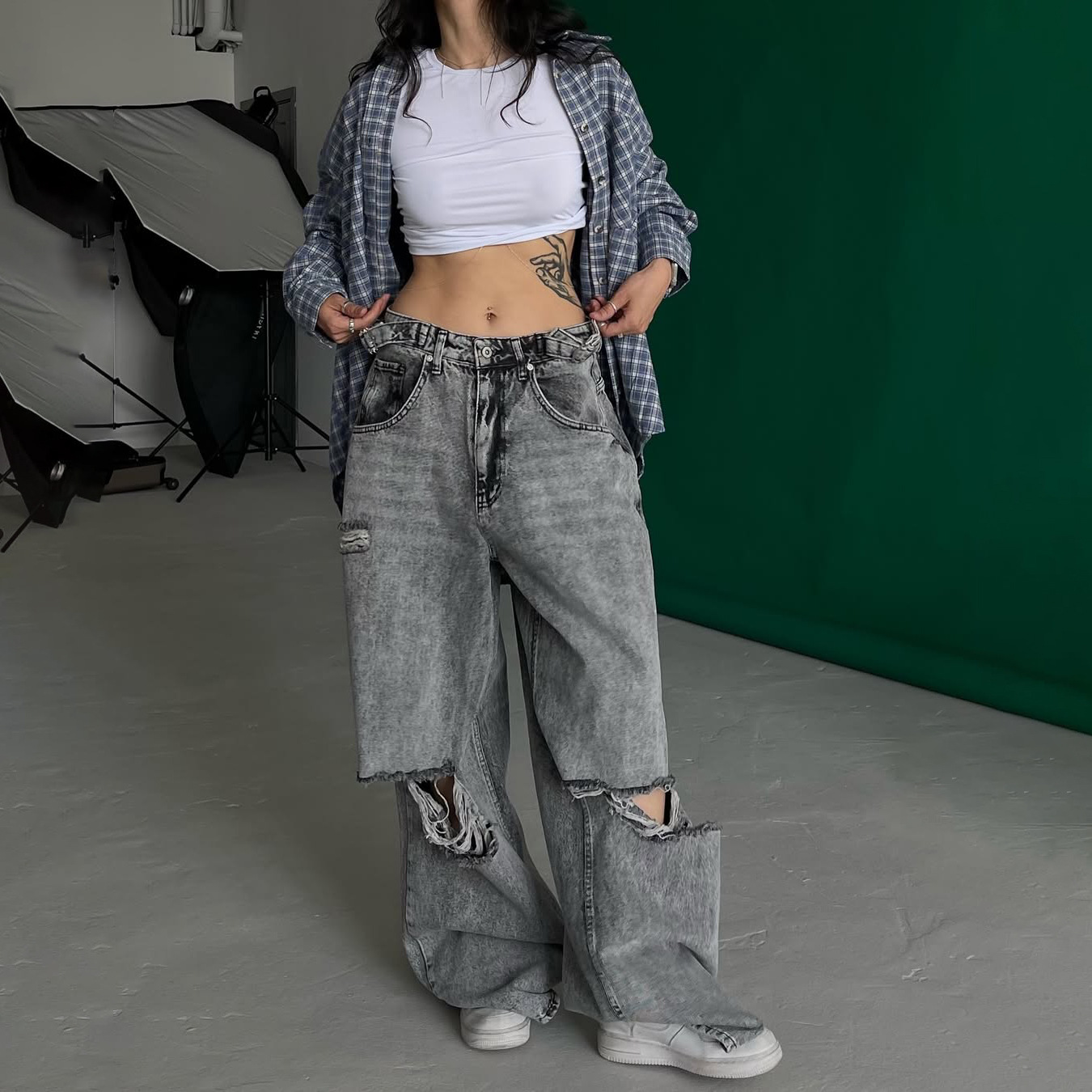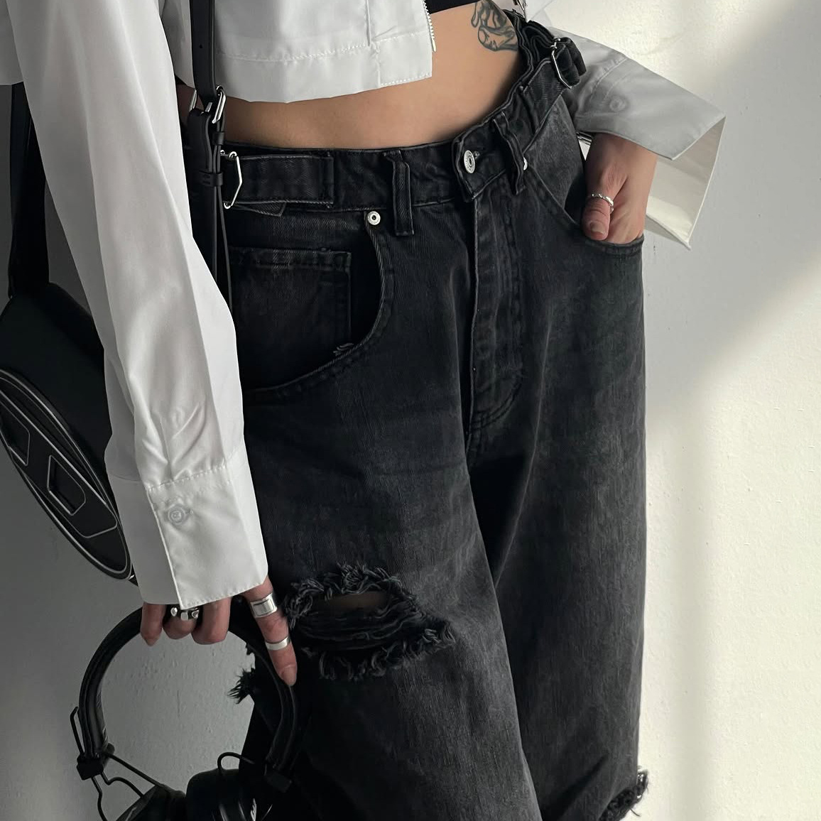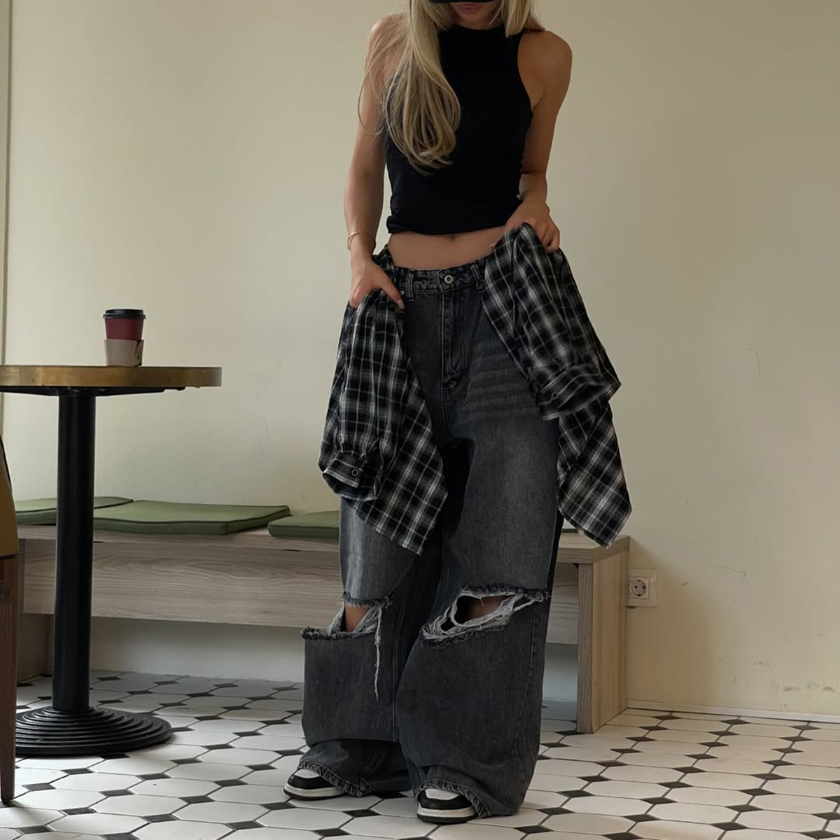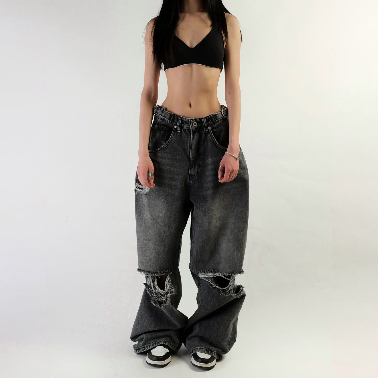 미국 힙합 하이 스트리트 새로운 도착 드레스 찢어진 워시 와이드 레그 청바지 여성용 스트레이트 하이 허리 느슨한 얇은 청바지스토어 가기