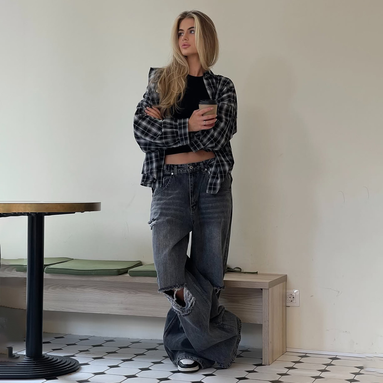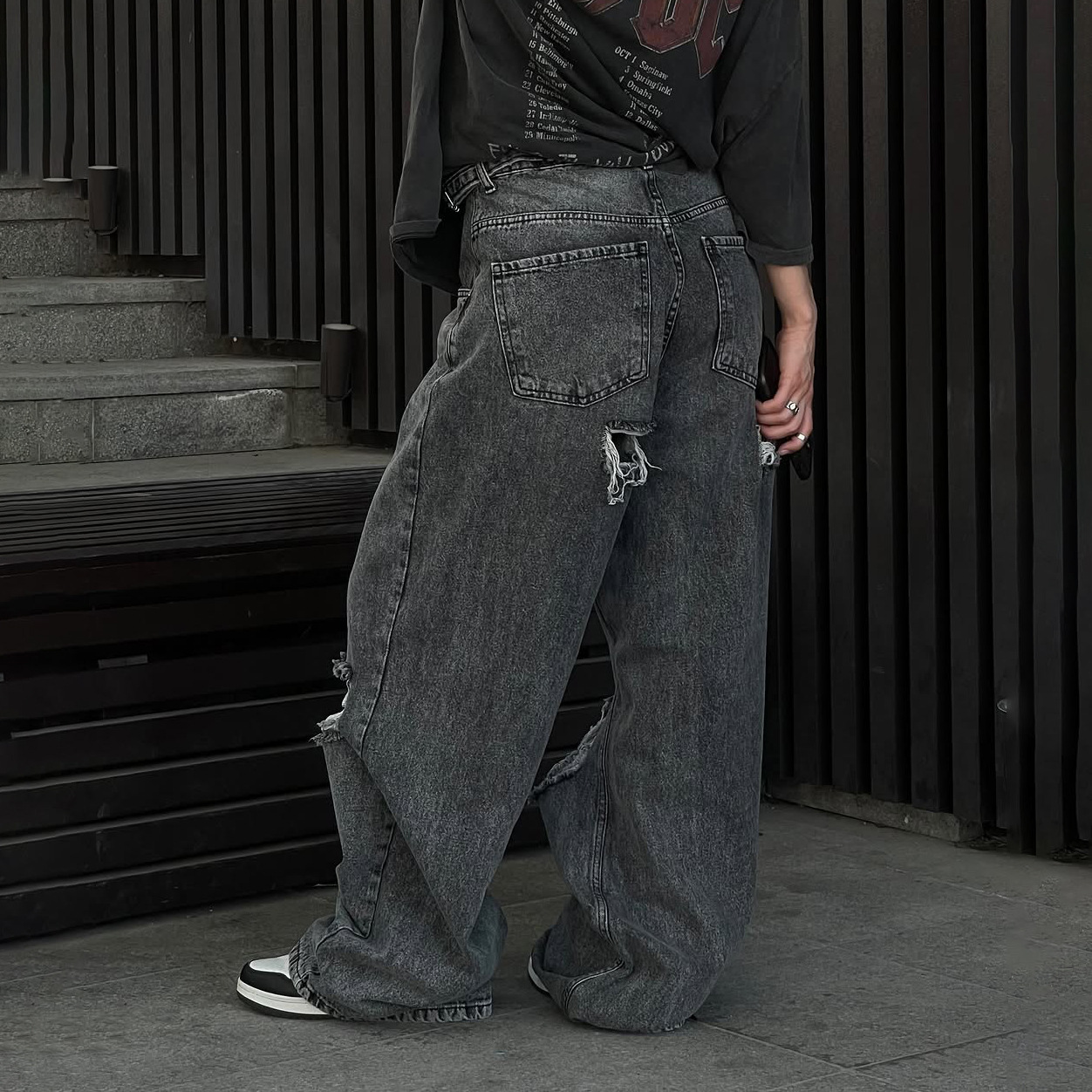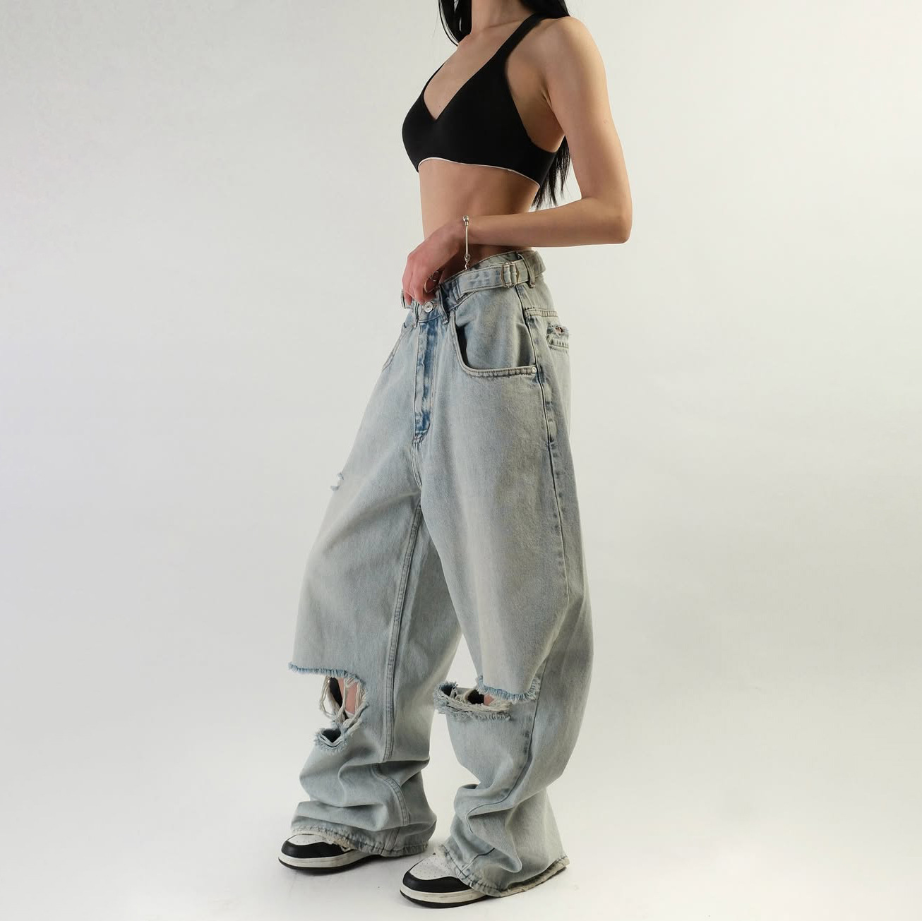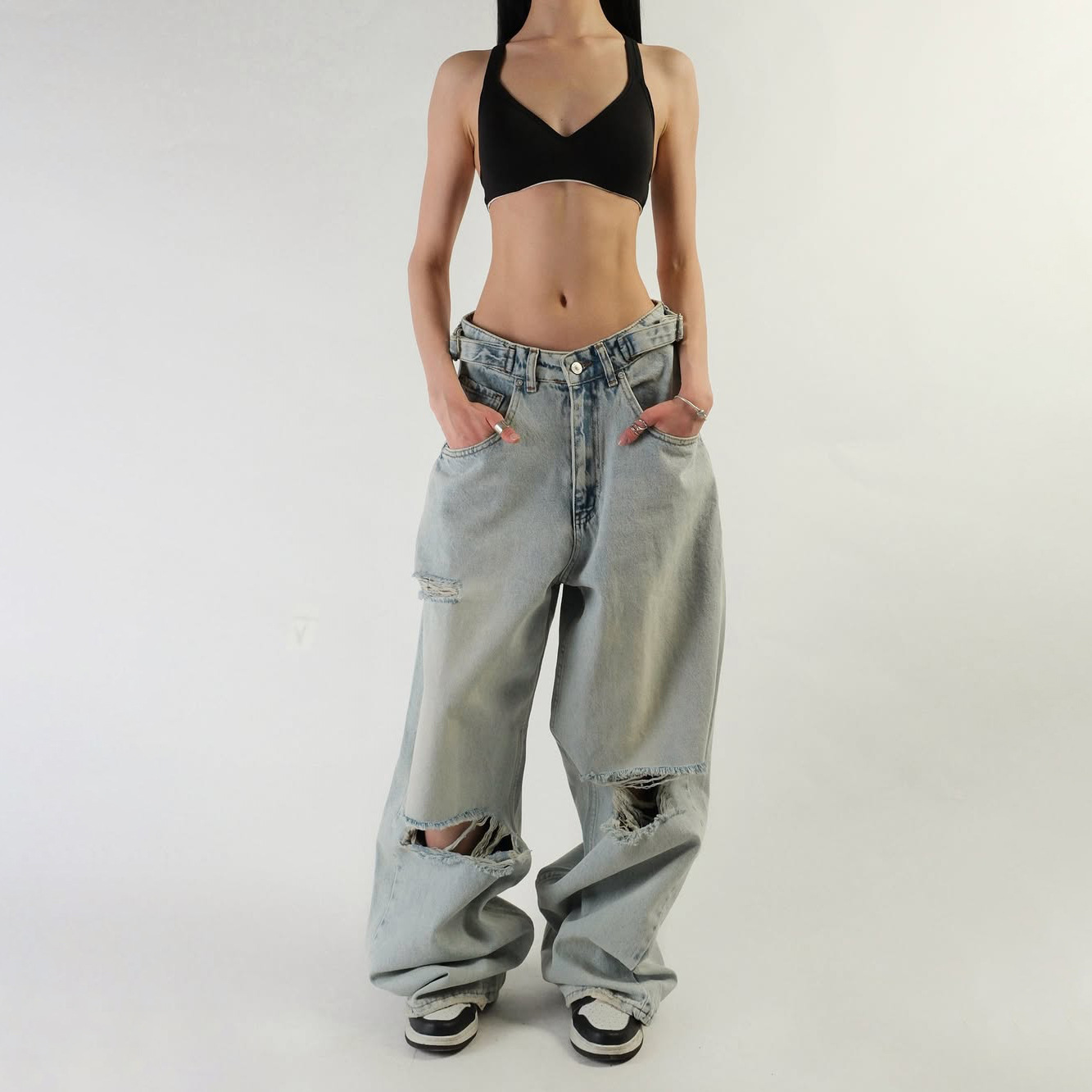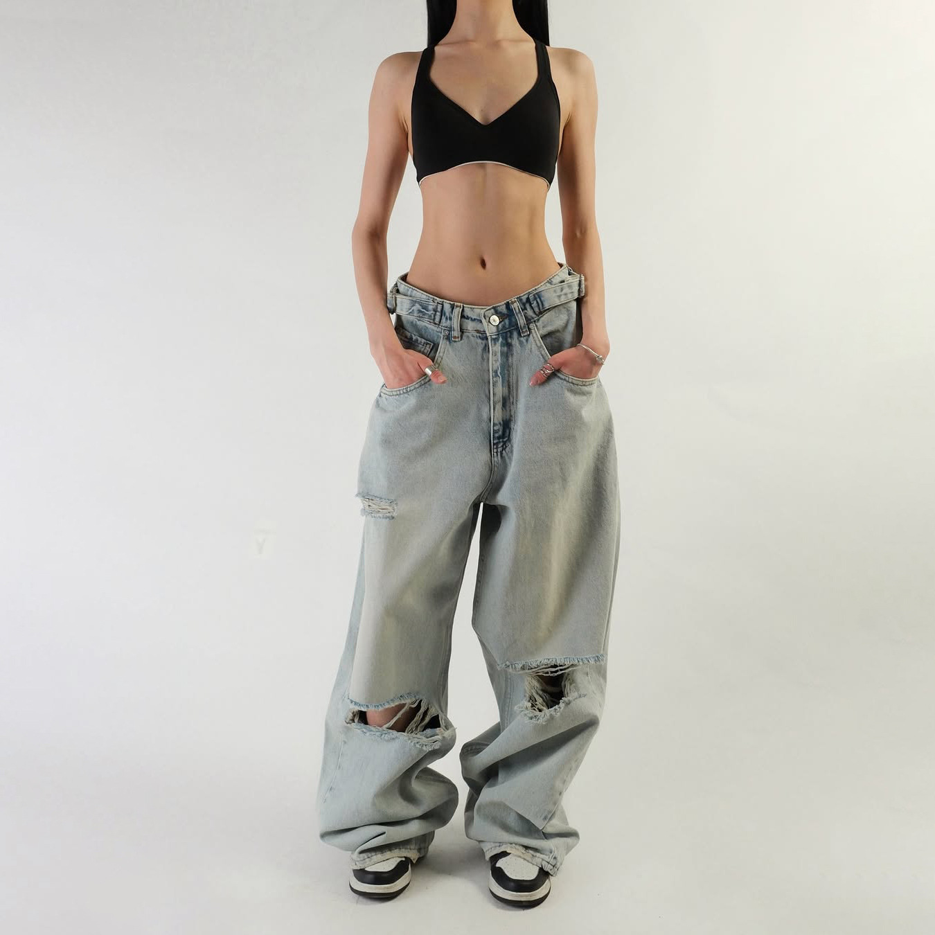 미국 힙합 하이 스트리트 새로운 도착 드레스 찢어진 워시 와이드 레그 청바지 여성용 스트레이트 하이 허리 느슨한 얇은 청바지스토어 가기