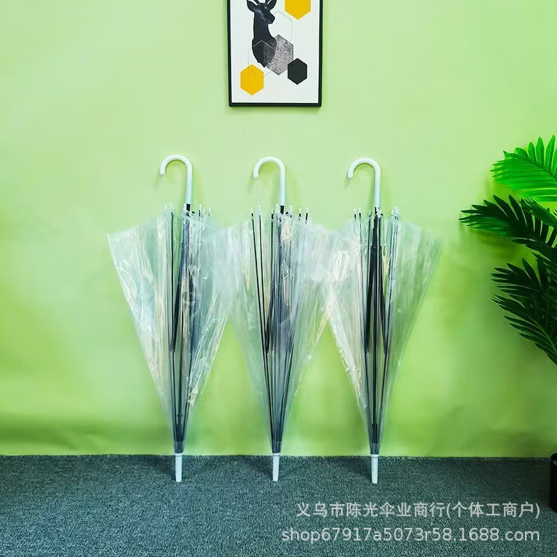 투명한 작은 신선한 8본 우산, 환경 친화적인 PVC 투명 우산, 창의적인 두꺼운 반자동 플라스틱 우산