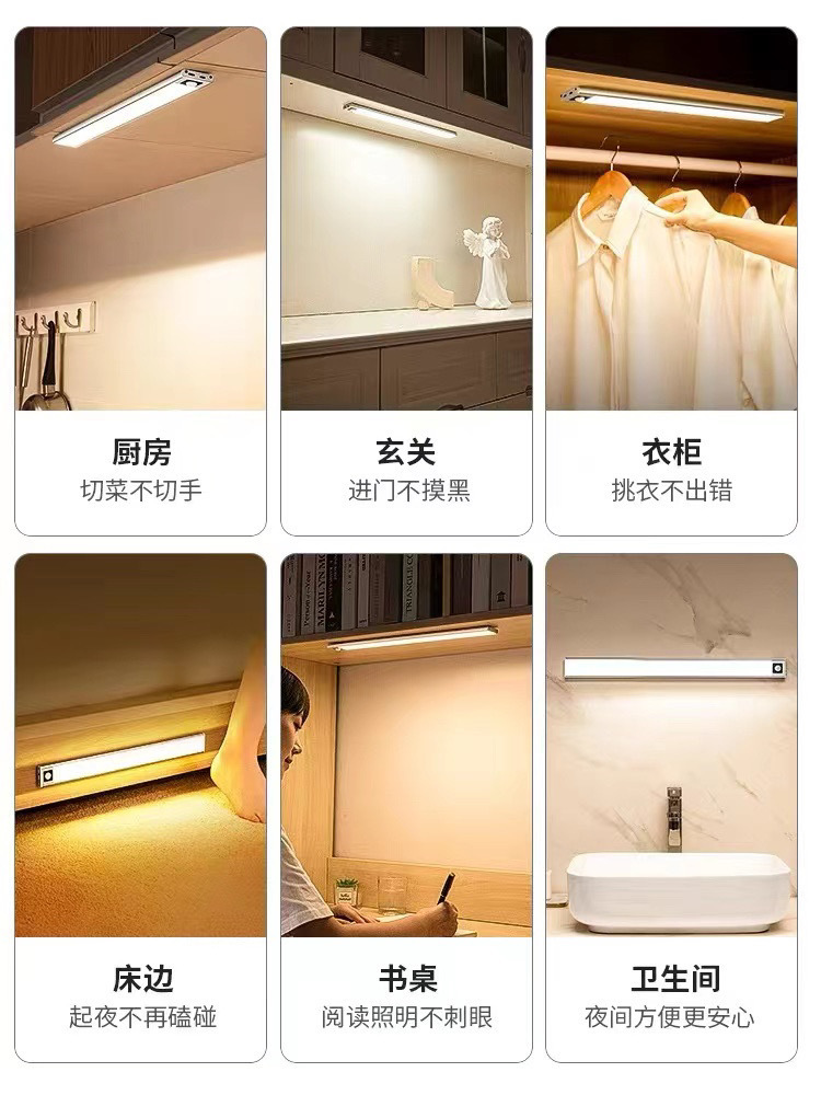 초박형 무선 충전 캐비닛 조명 인체 센서 조명 옷장 신발 캐비닛 조명 플러그 아웃 홈 주방 통로 조명 공장스토어 가기