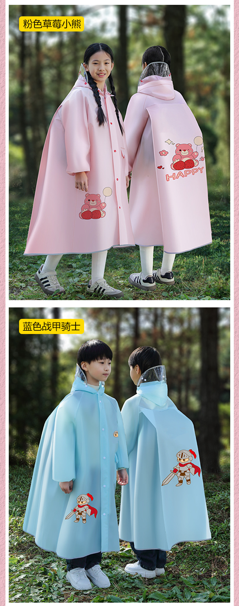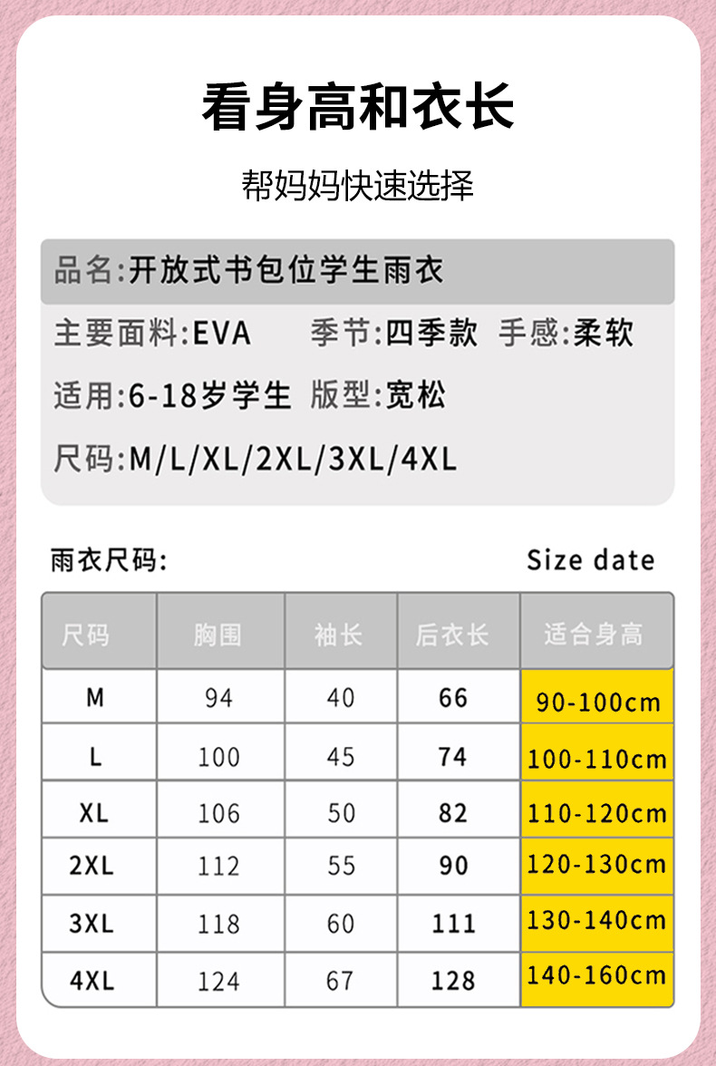 남아 및 여아용 아동 비옷 제조업체, 유치원 초등학생 비옷, 아동 방수 판초, 배낭스토어 가기