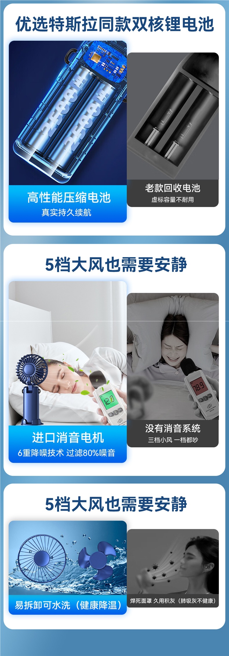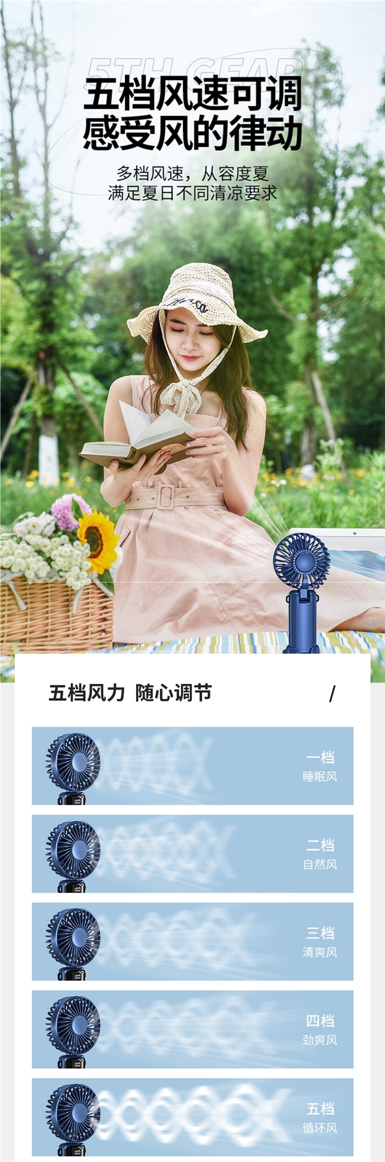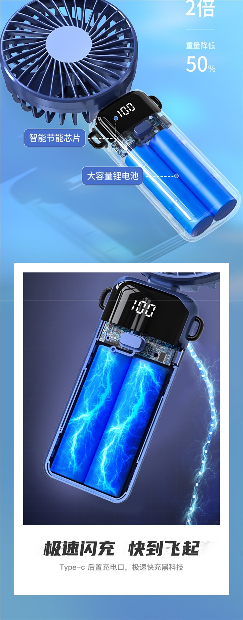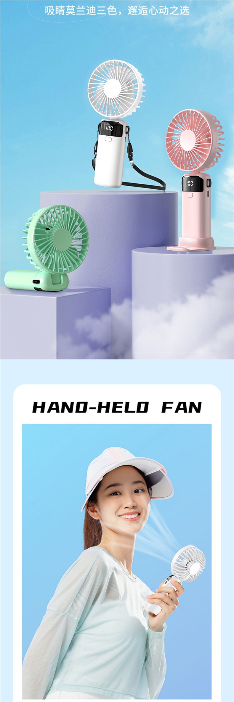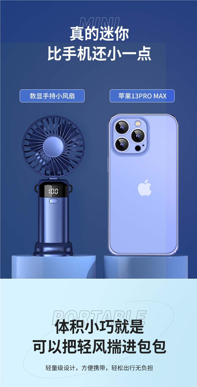 • 기본 버전 [라이트 럭셔리 블루·10000mAh] 지능형 디지털 디스플레이丨5단계 조절 가능丨데스크탑 + 핸드헬드 + 행잉 넥