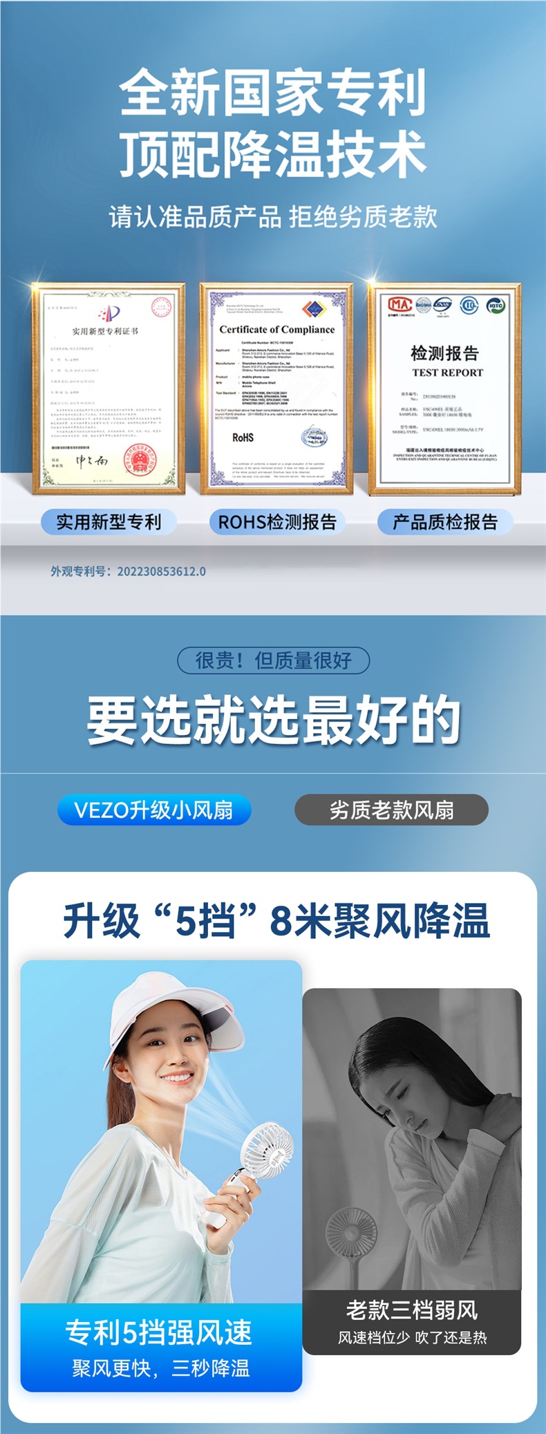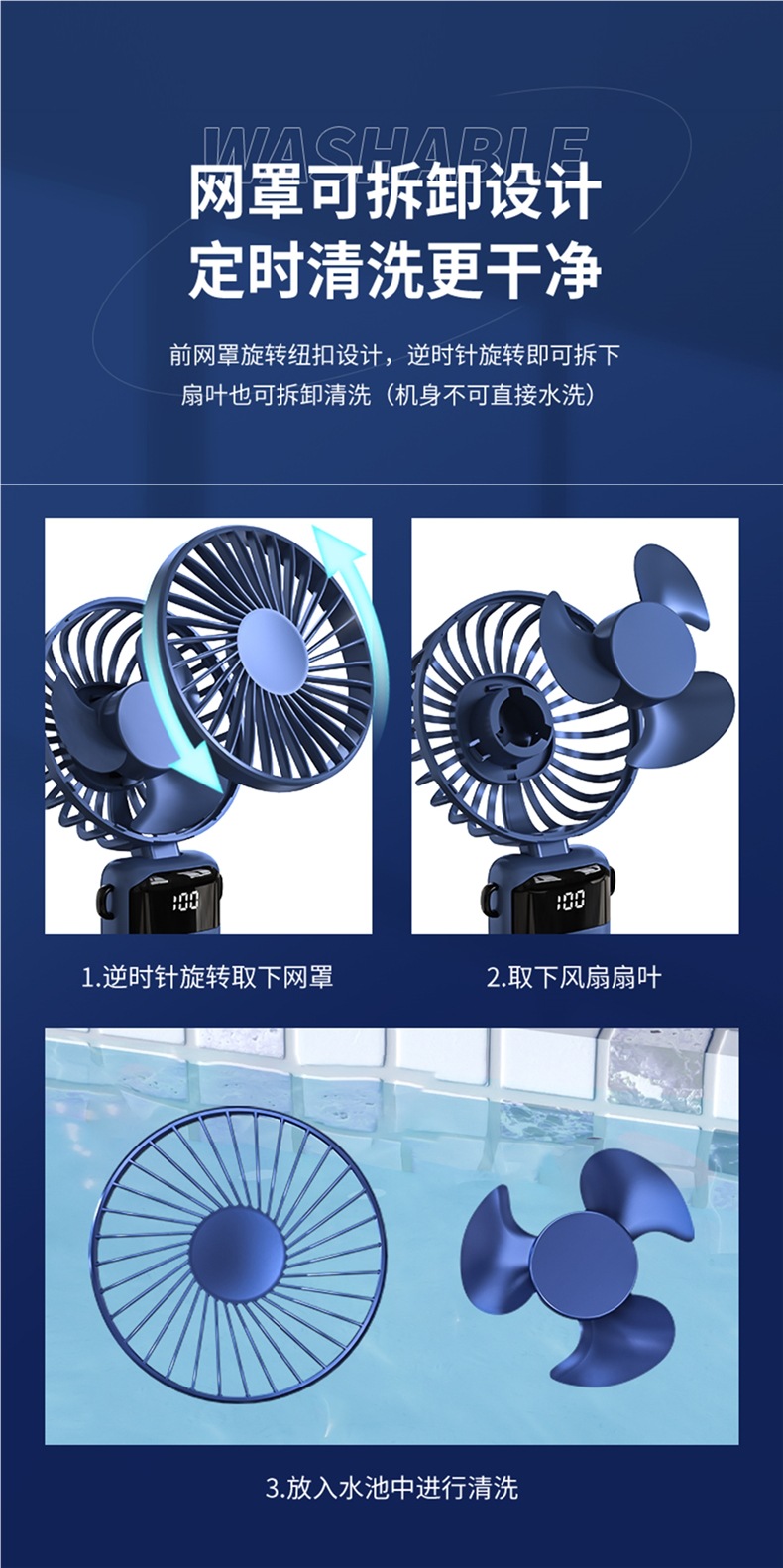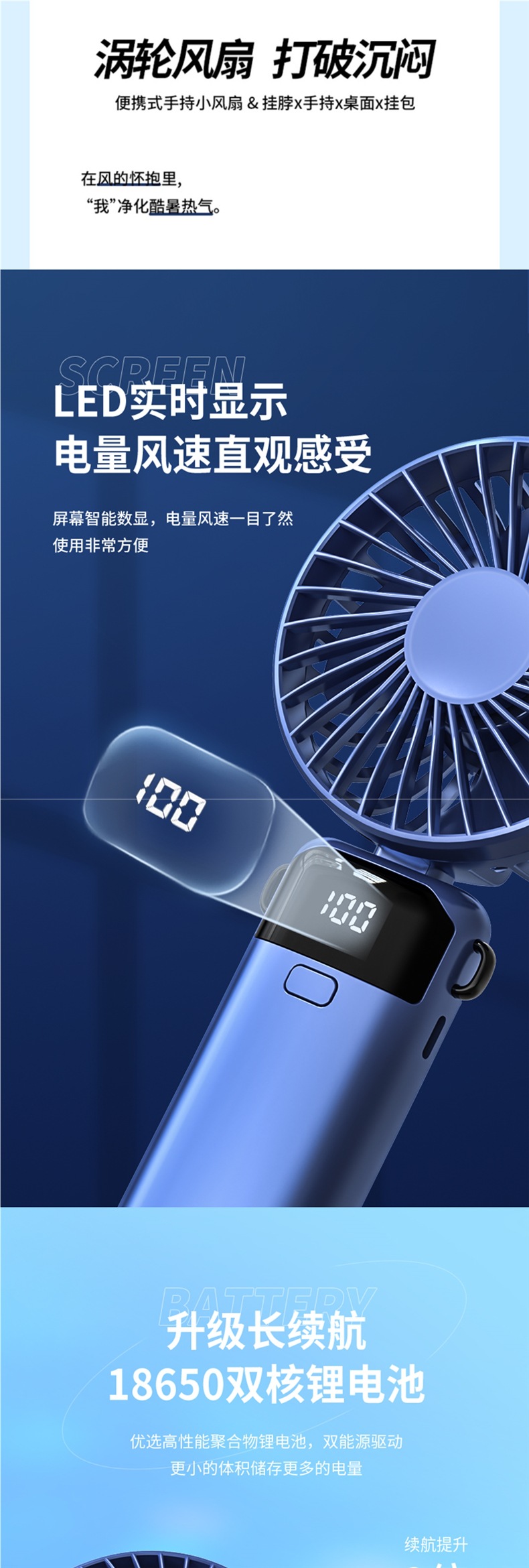 • 플래그십 버전 [라이트 럭셔리 블루·15000mAh] 지능형 디지털 디스플레이丨5단계 조절 가능丨데스크탑 + 핸드헬드 + 행잉넥