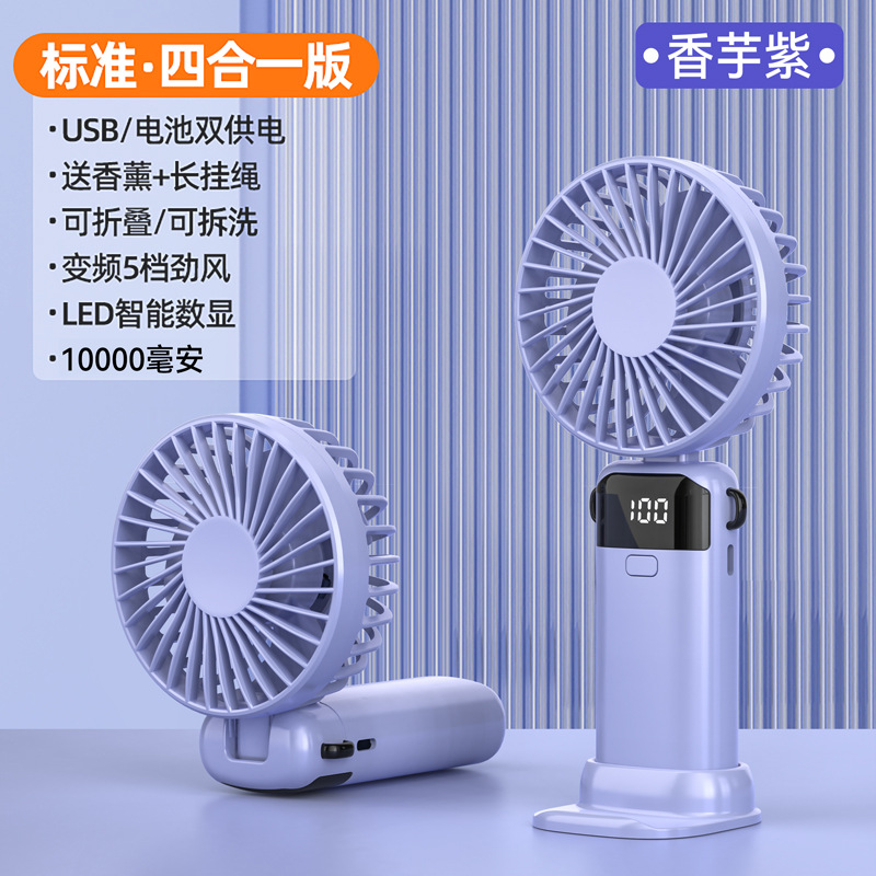 • 기본 버전 [Taro Purple·10000mAh] 지능형 디지털 디스플레이丨5단계 조절 가능丨데스크탑 + 핸드헬드 + 행잉 넥