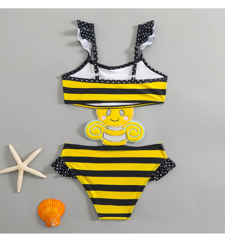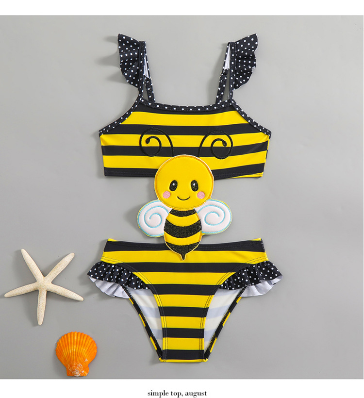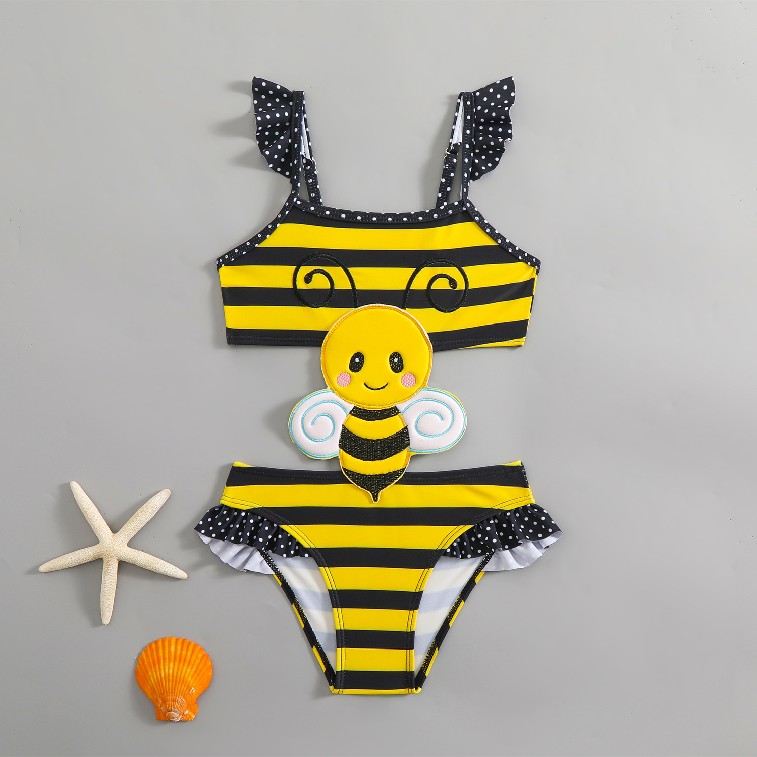 국경을 넘는 유럽 및 미국 어린이 수영복 2025 유아용 꿀벌 귀여운 아기 만화 소녀 원피스 수영복