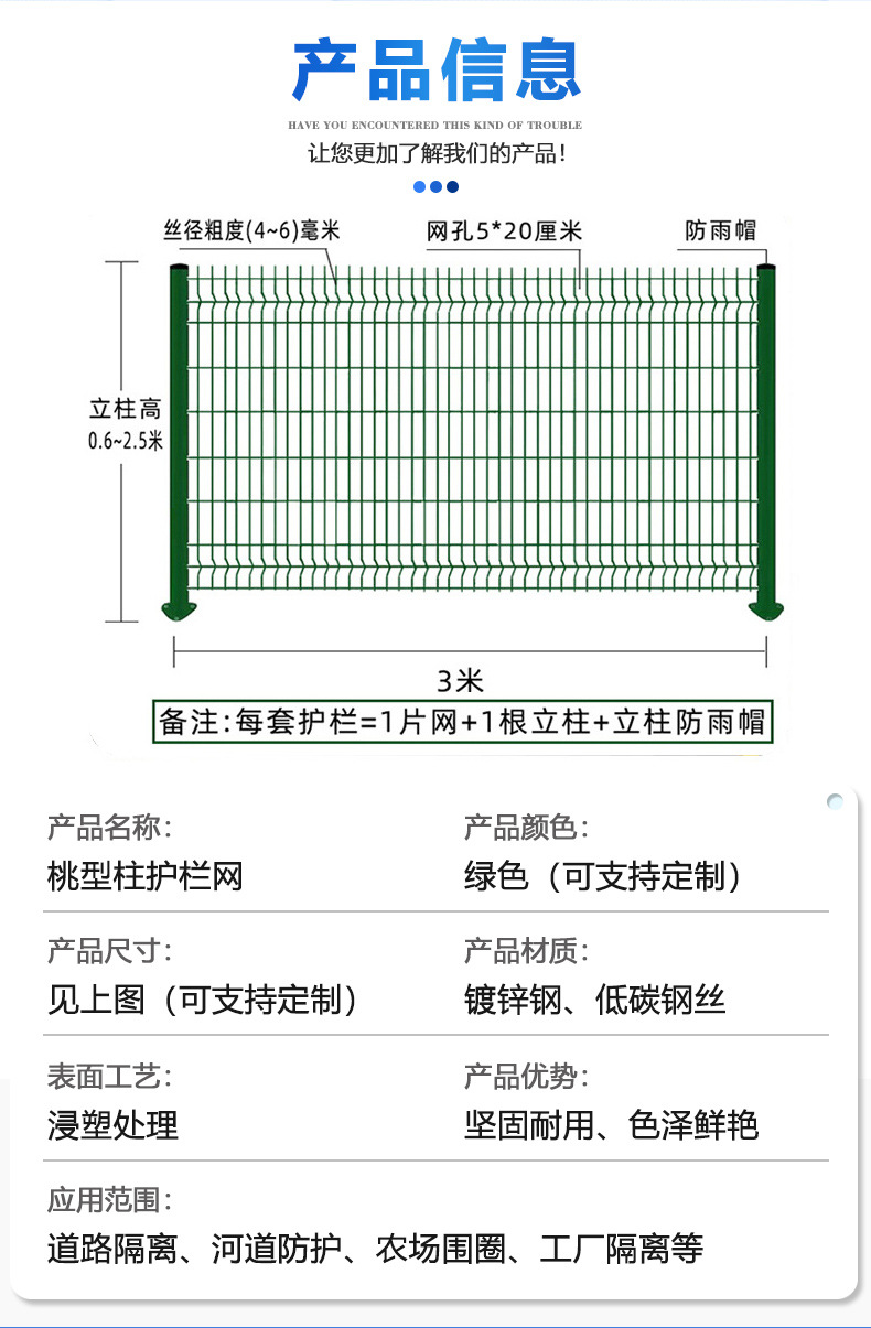 맞춤형 복숭아 모양의 기둥 가드레일, 고속도로 가드레일, 울타리, 보호망, 주거용 정원 및 과수원 격리망스토어 가기