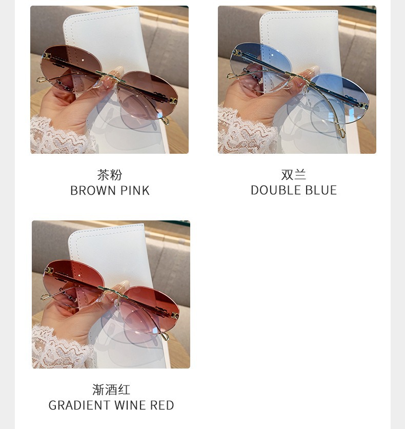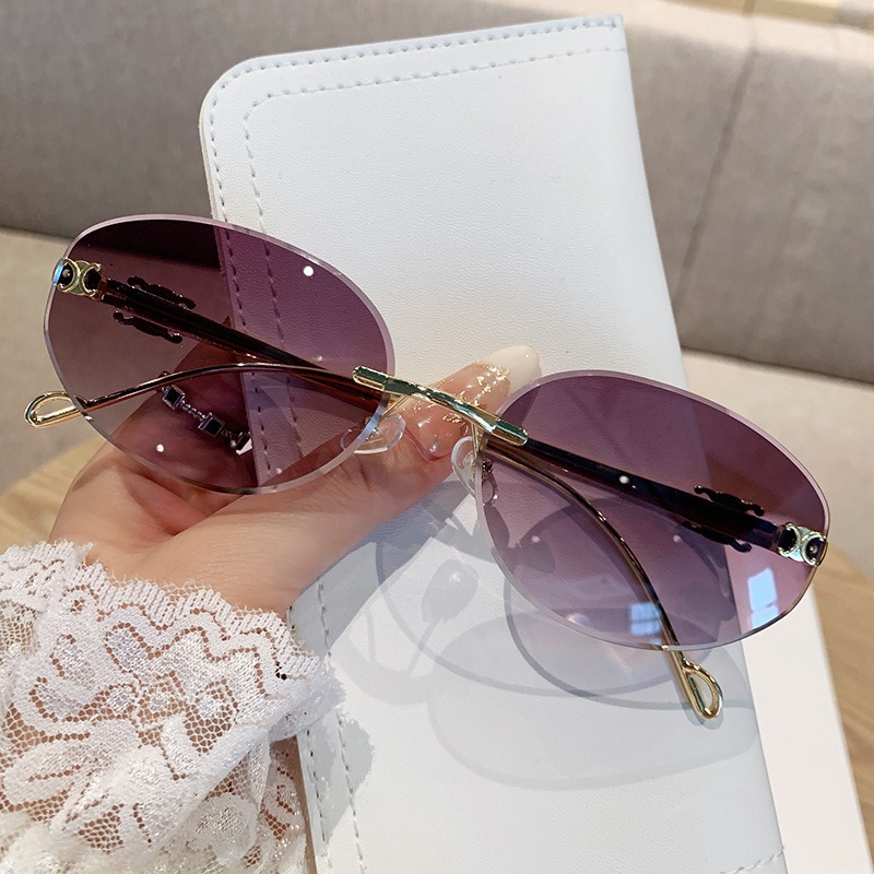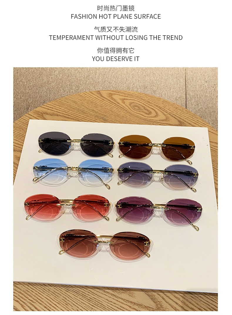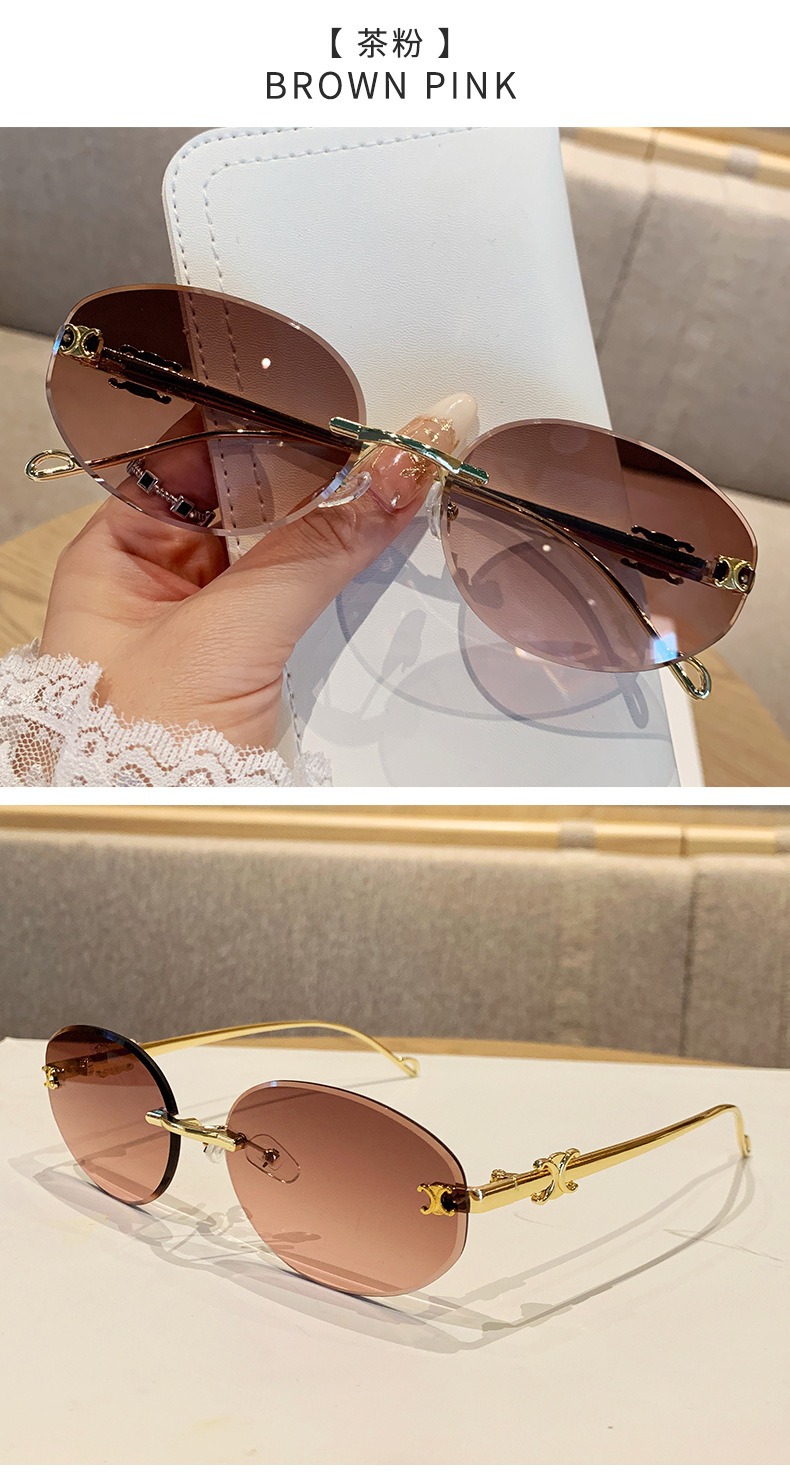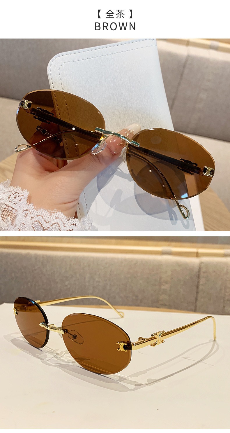 2025 새로운 타원형 프레임 크로스보더 메탈 프레임리스 선글라스 남성용 트렌디한 하이엔드 복고풍 패션 자외선 차단 선글라스 여성용스토어 가기