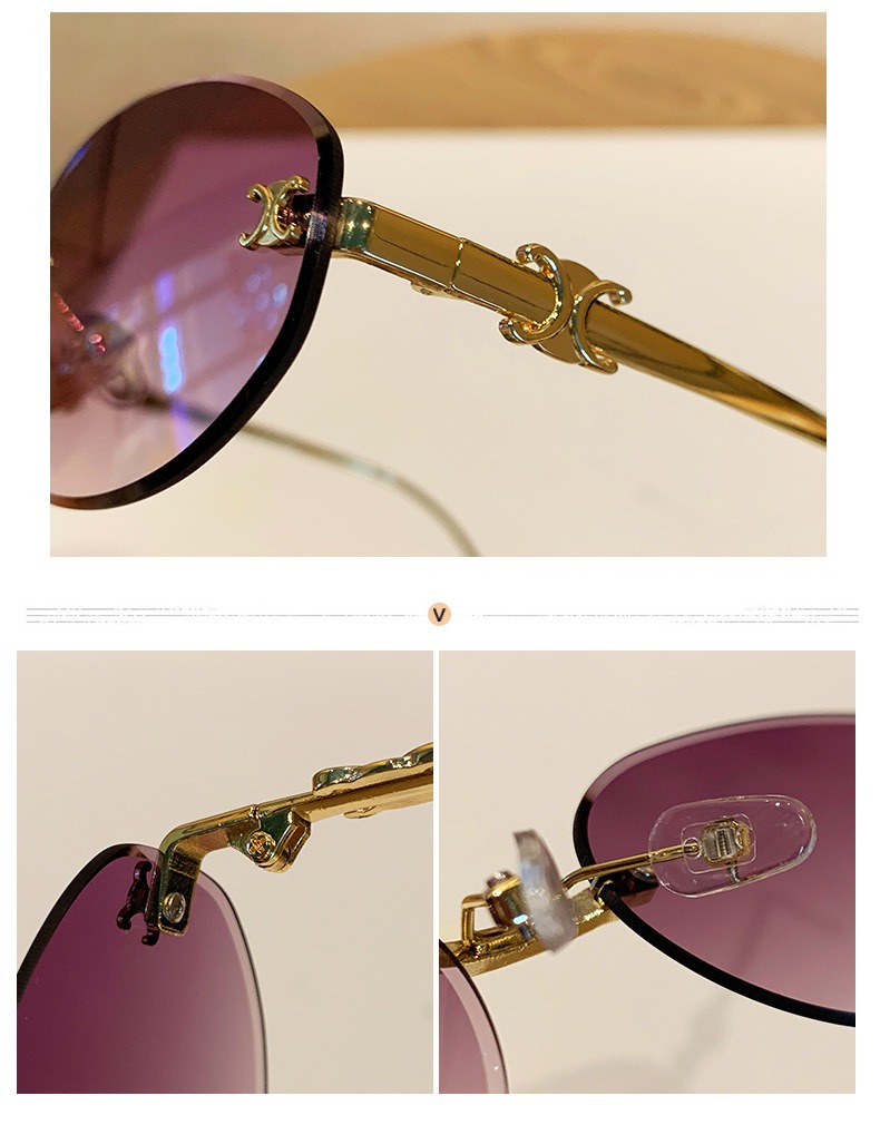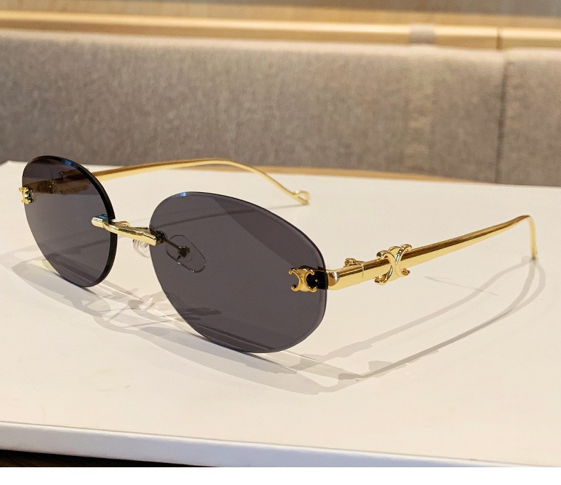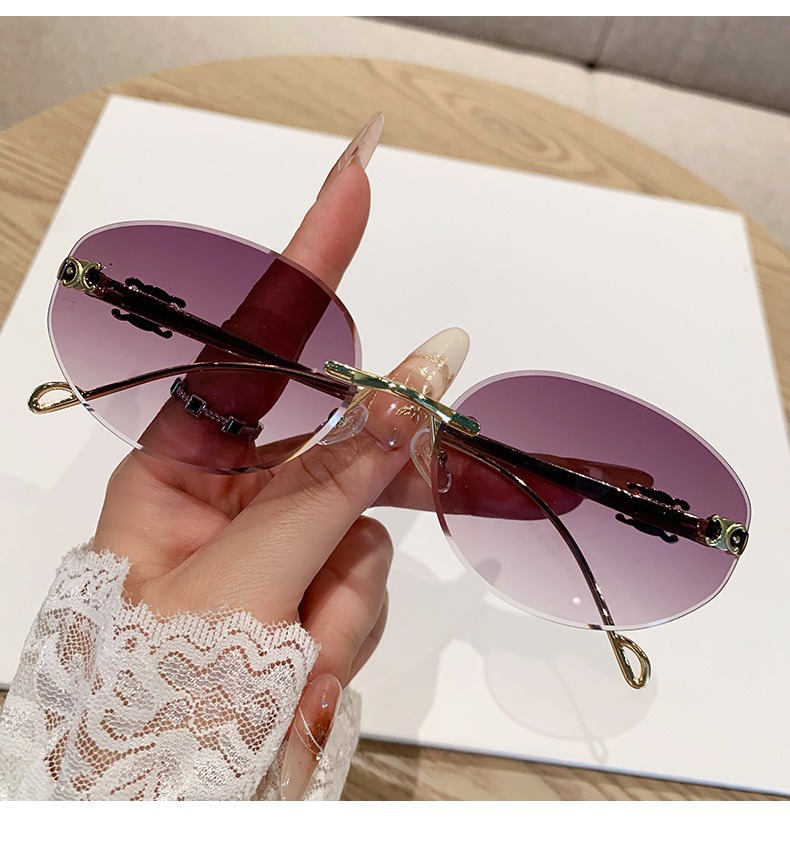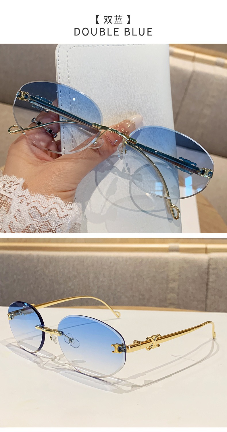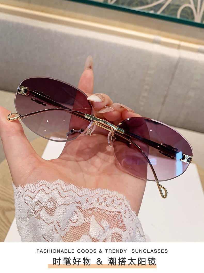 2025 새로운 타원형 프레임 크로스보더 메탈 프레임리스 선글라스 남성용 트렌디한 하이엔드 복고풍 패션 자외선 차단 선글라스 여성용스토어 가기
