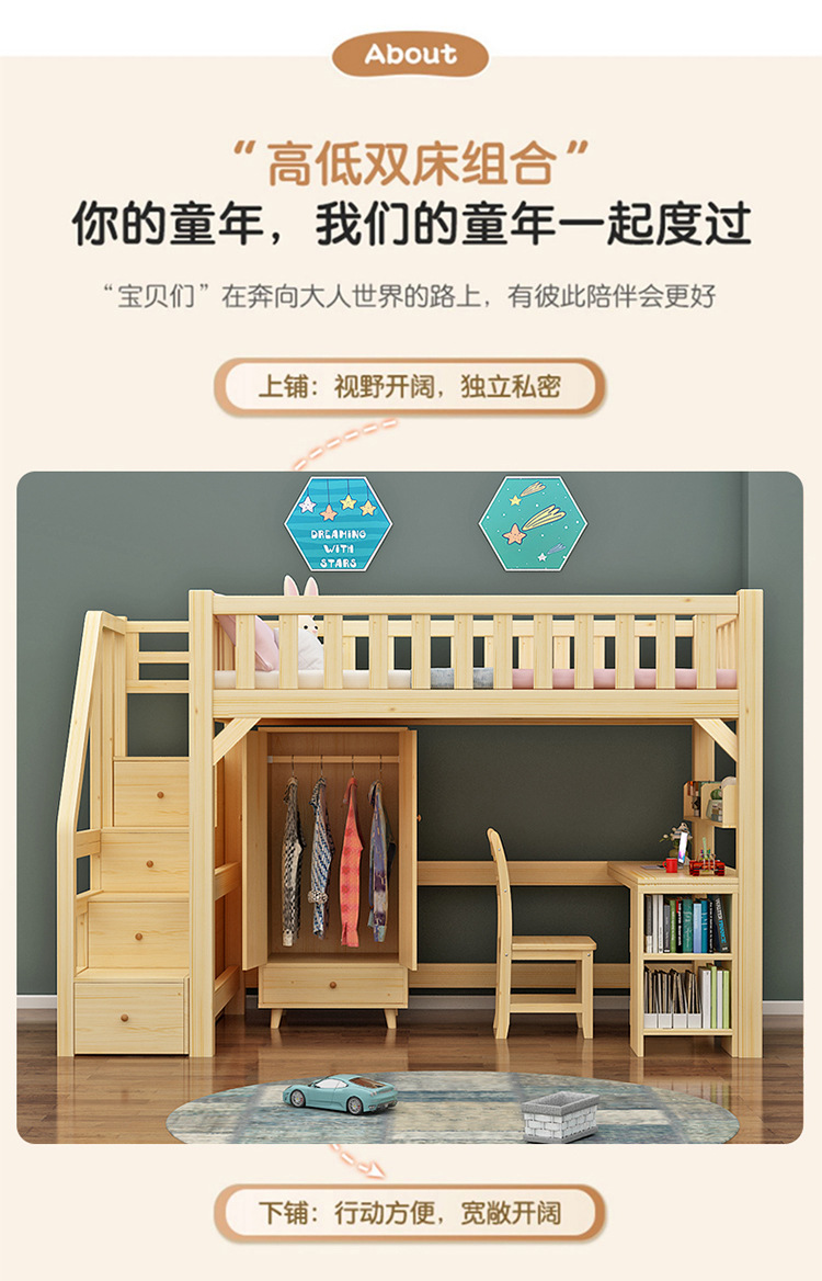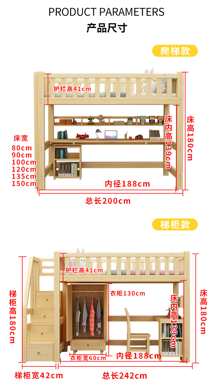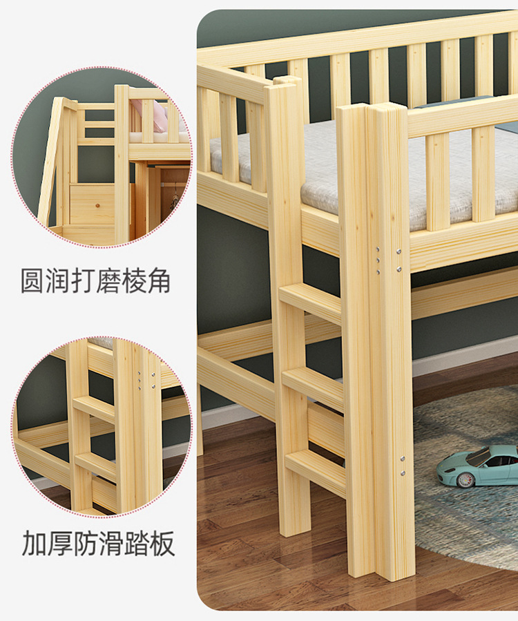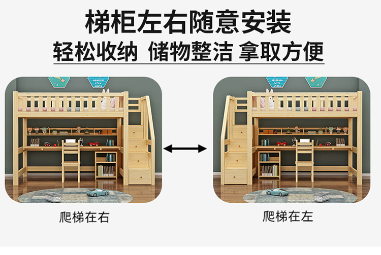 어린이 및 성인을 위한 모든 원목 하이 및 로우 침대, 테이블, 소형 다기능 싱글 어퍼 침대, 사다리 캐비닛, 홈 J&