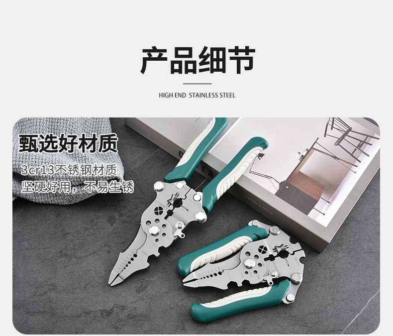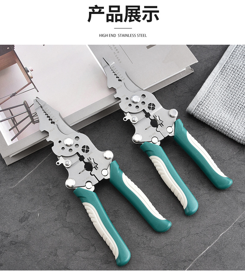 공장 직접 공급 26-in-1 범용 접이식 와이어 스트리핑 펜치 다기능 필링 및 와이어 권선 압착 와이어 절단 전기 펜치