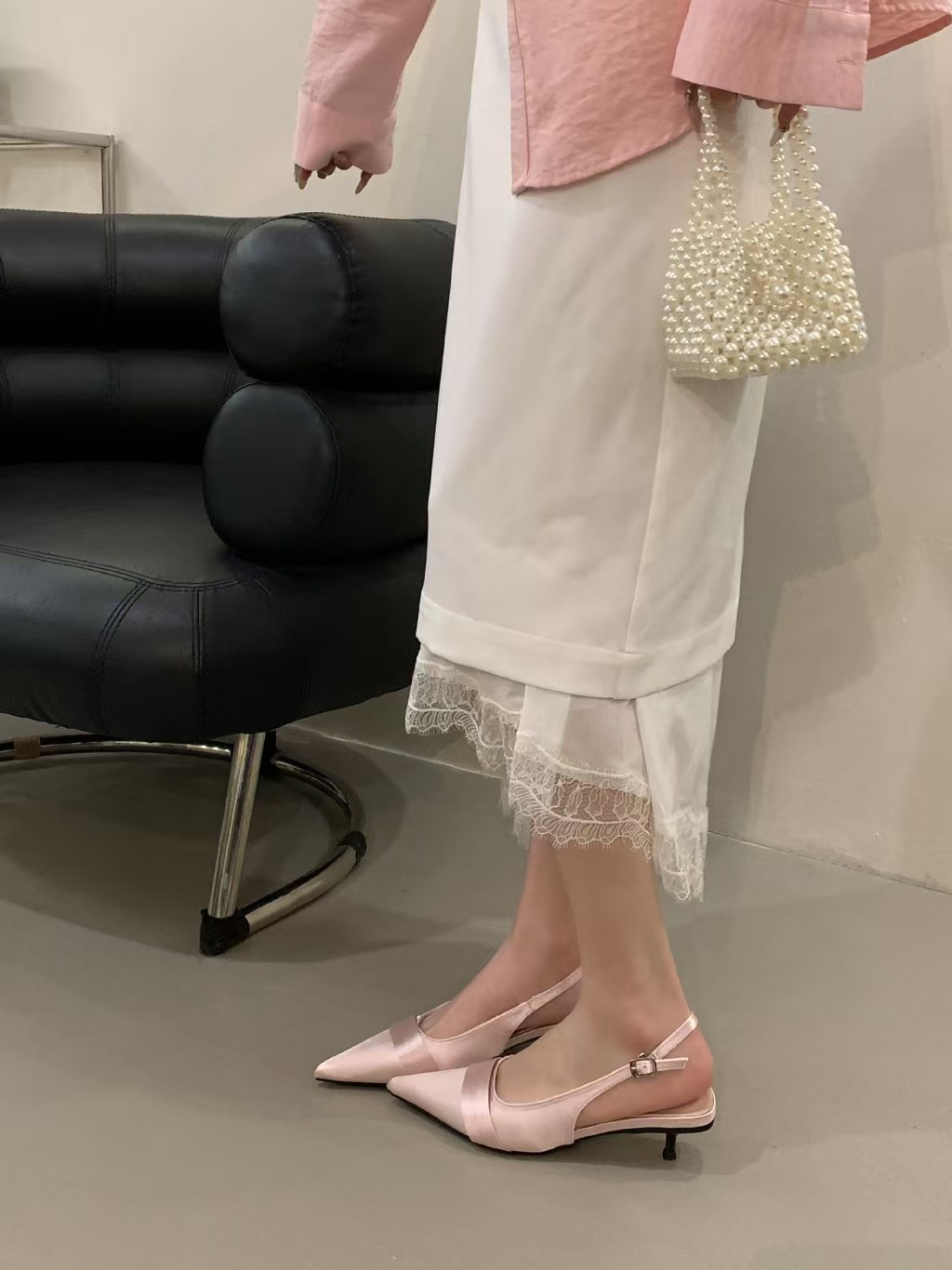니치 하이힐 새틴 샌들 요정 신발 2025 신상 여름 프렌치 다용도 포인티드 슈즈