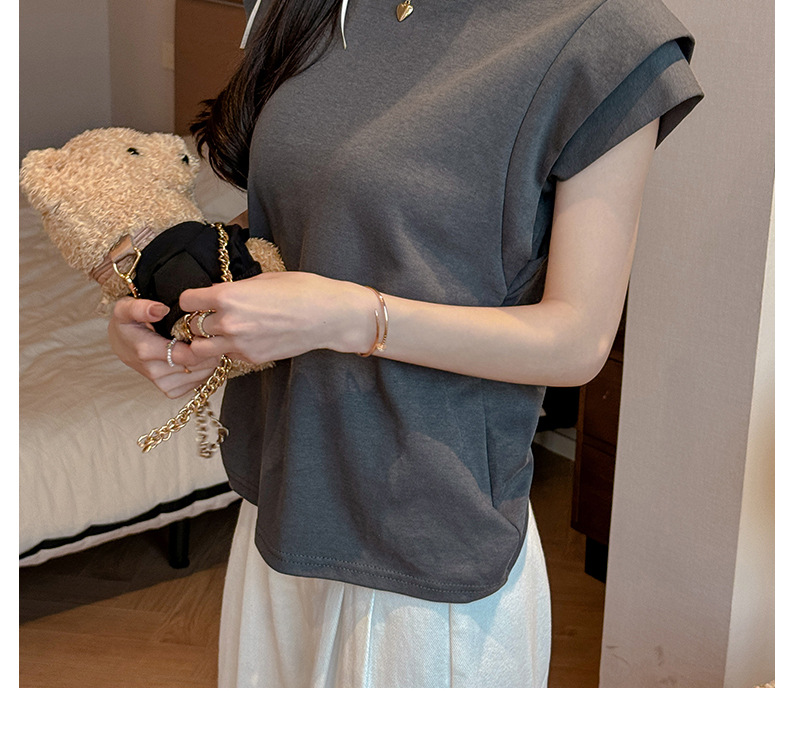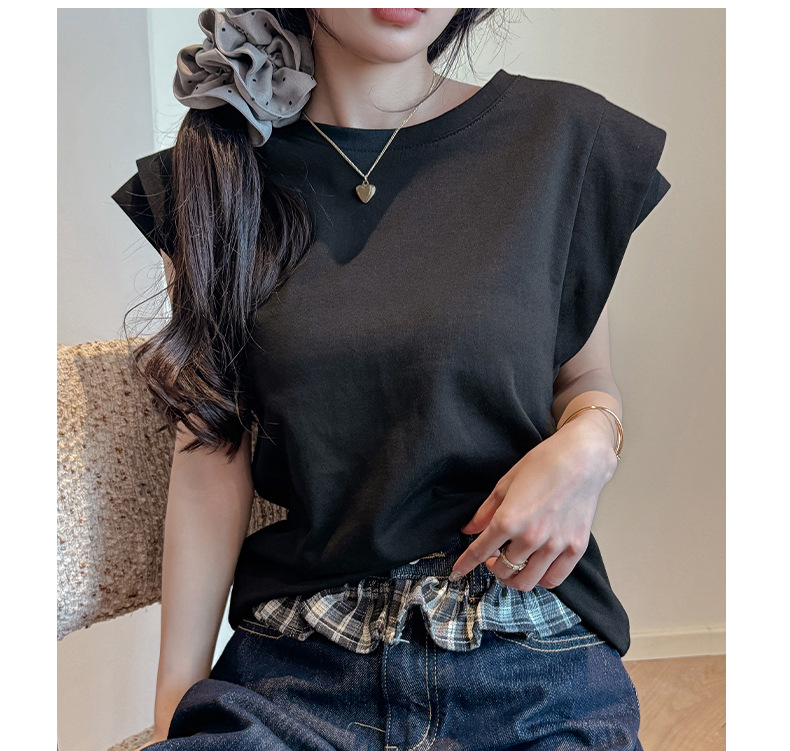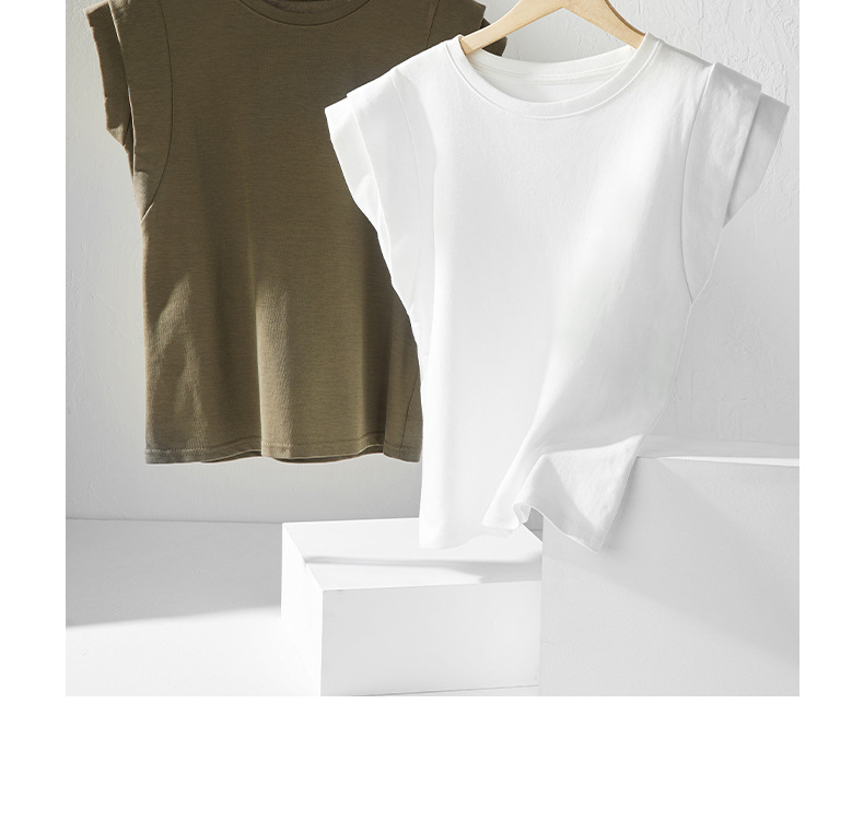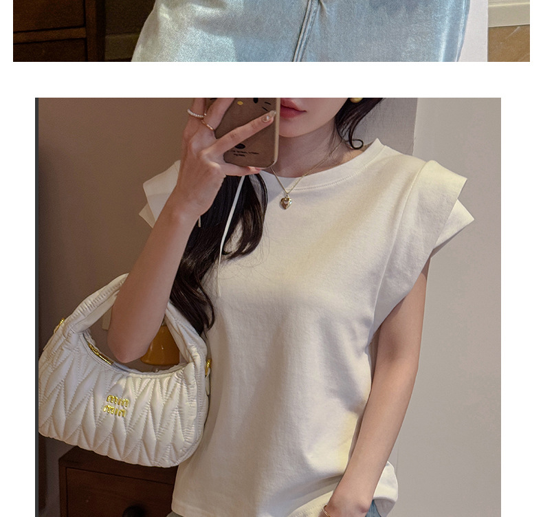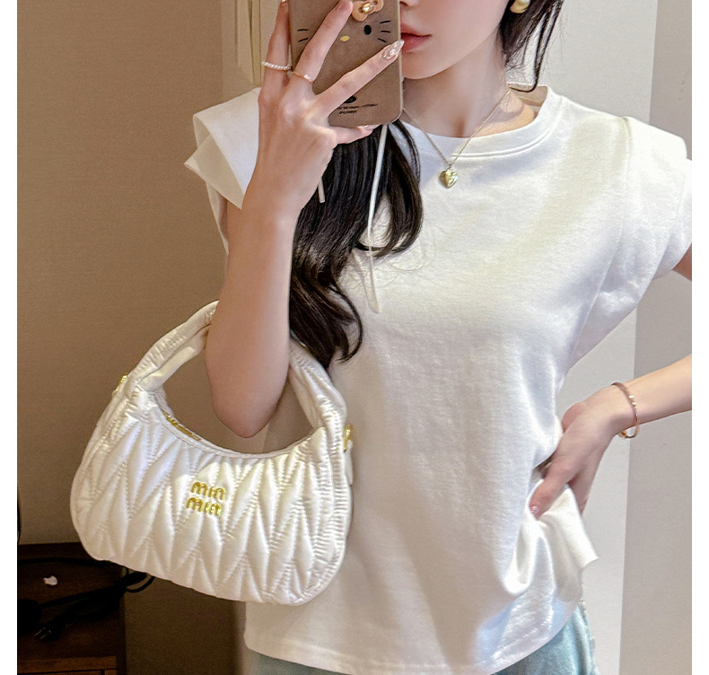 여름 화이트 라운드 넥 반팔 티셔츠 여성 봄과 여름 새로운 디자인 감각 틈새 느슨한 캐주얼 어깨 슬리밍 탑