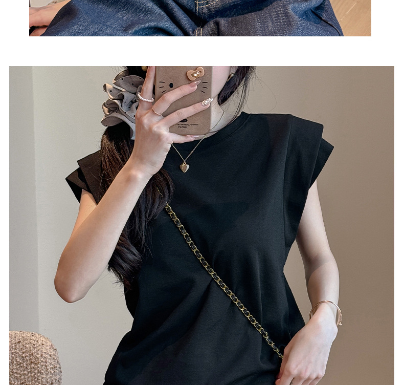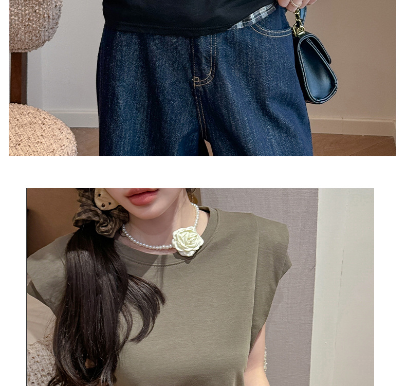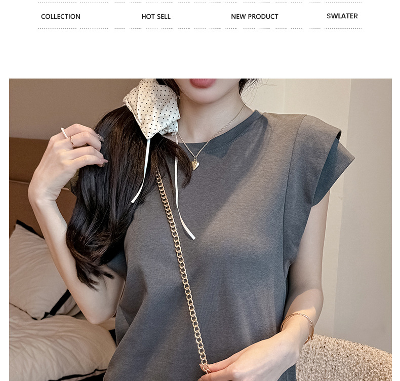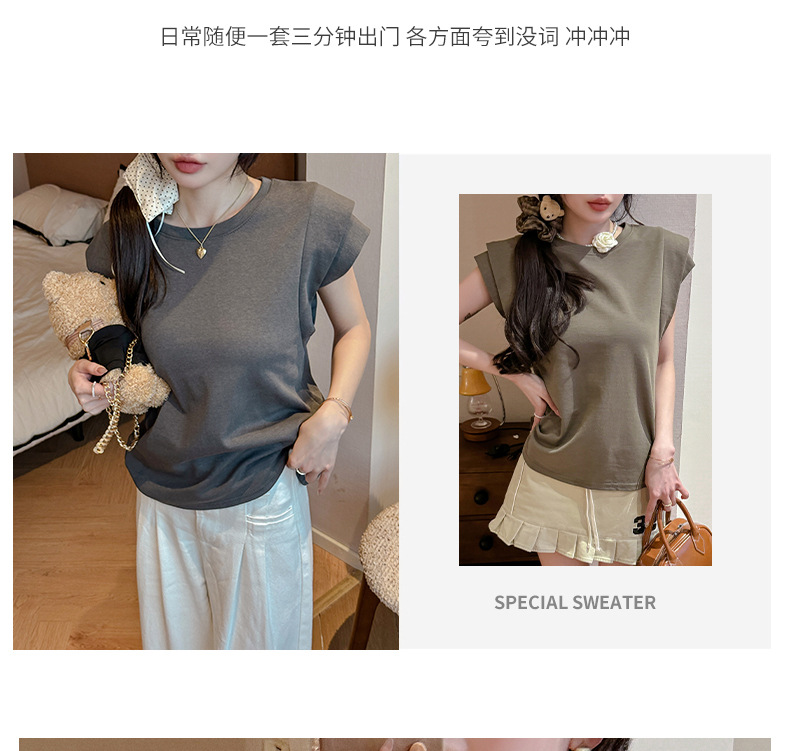 여름 화이트 라운드 넥 반팔 티셔츠 여성 봄과 여름 새로운 디자인 감각 틈새 느슨한 캐주얼 어깨 슬리밍 탑스토어 가기