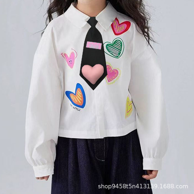 새로운 어린이 넥타이, 귀여운 핑크 복숭아 하트, 무료 소녀 영어 라벨, 다용도 셔츠, 짧은 미니 넥타이