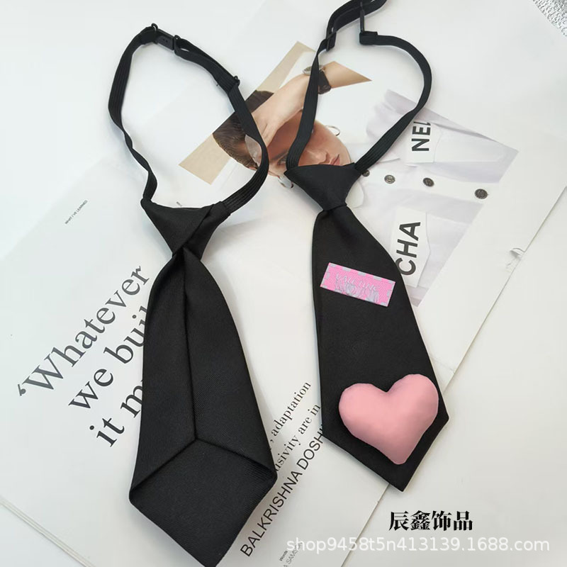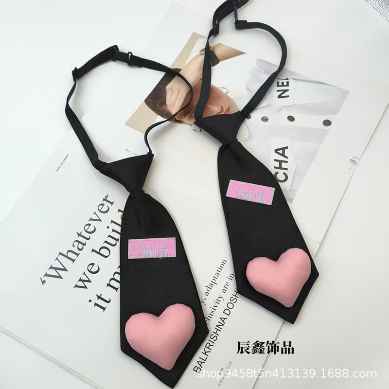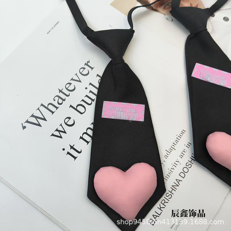 새로운 어린이 넥타이, 귀여운 핑크 복숭아 하트, 무료 소녀 영어 라벨, 다용도 셔츠, 짧은 미니 넥타이스토어 가기