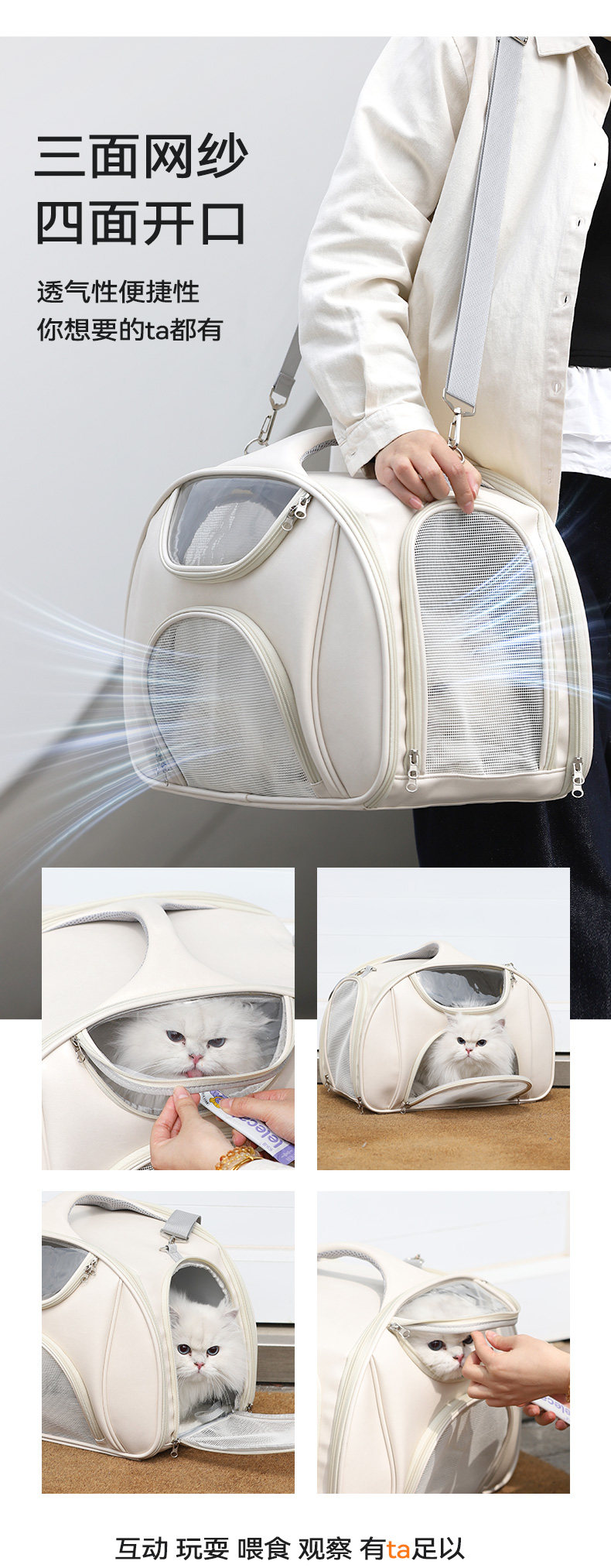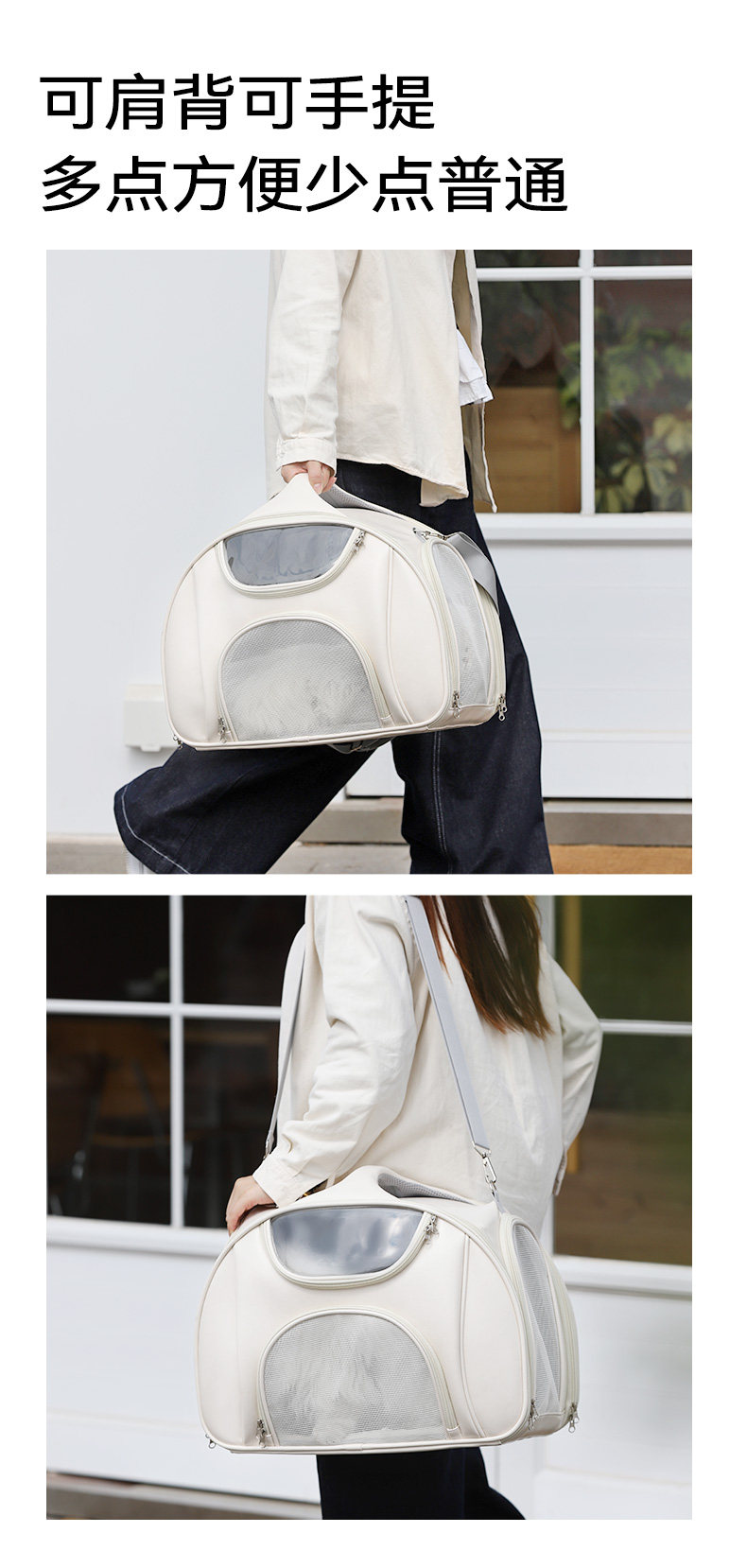 【品名】:HOOPET宠物轻奢单肩拎包(米色)