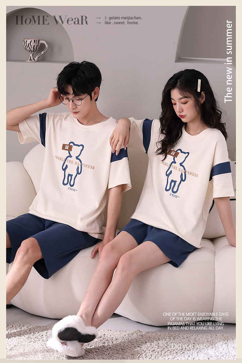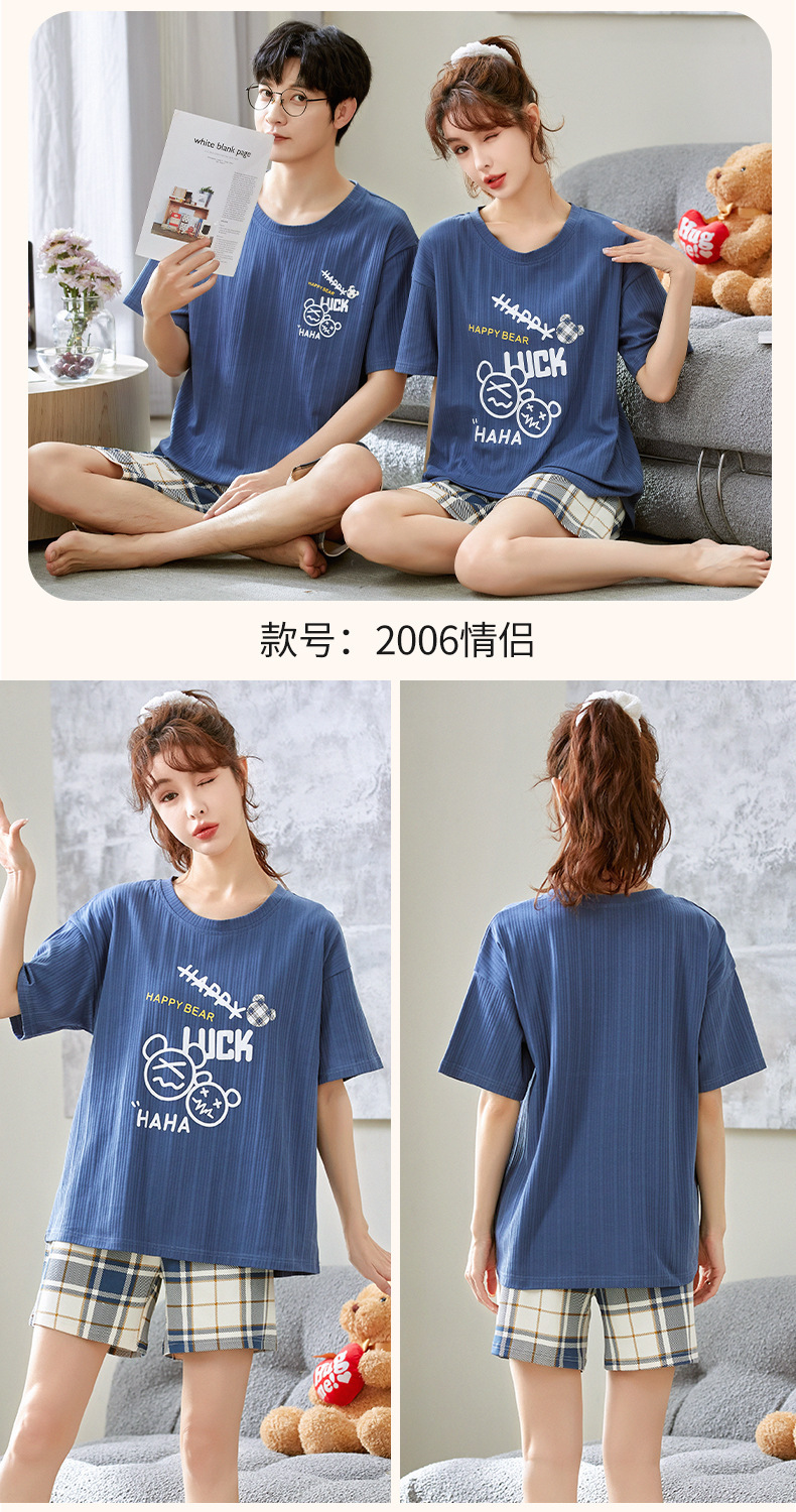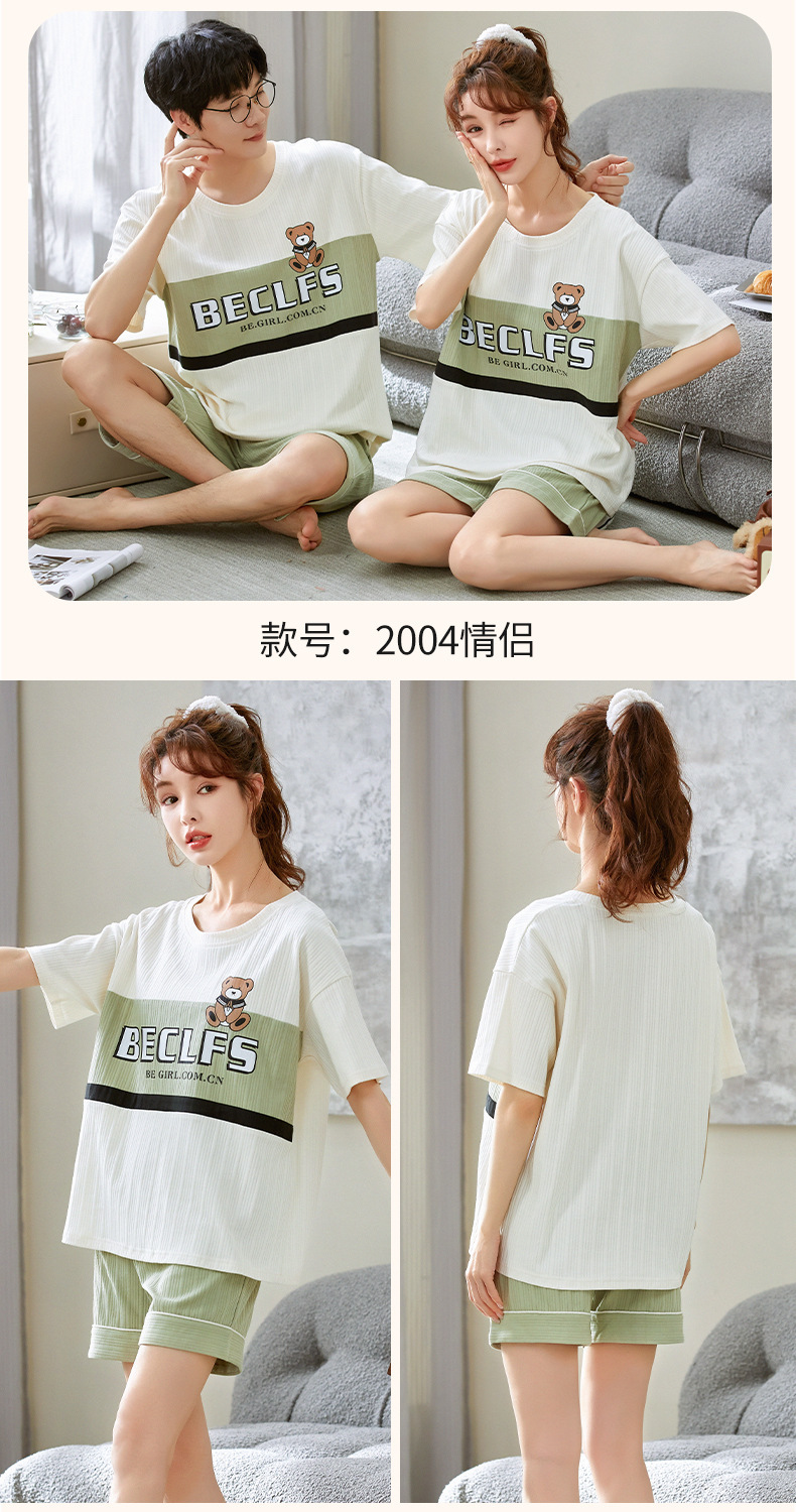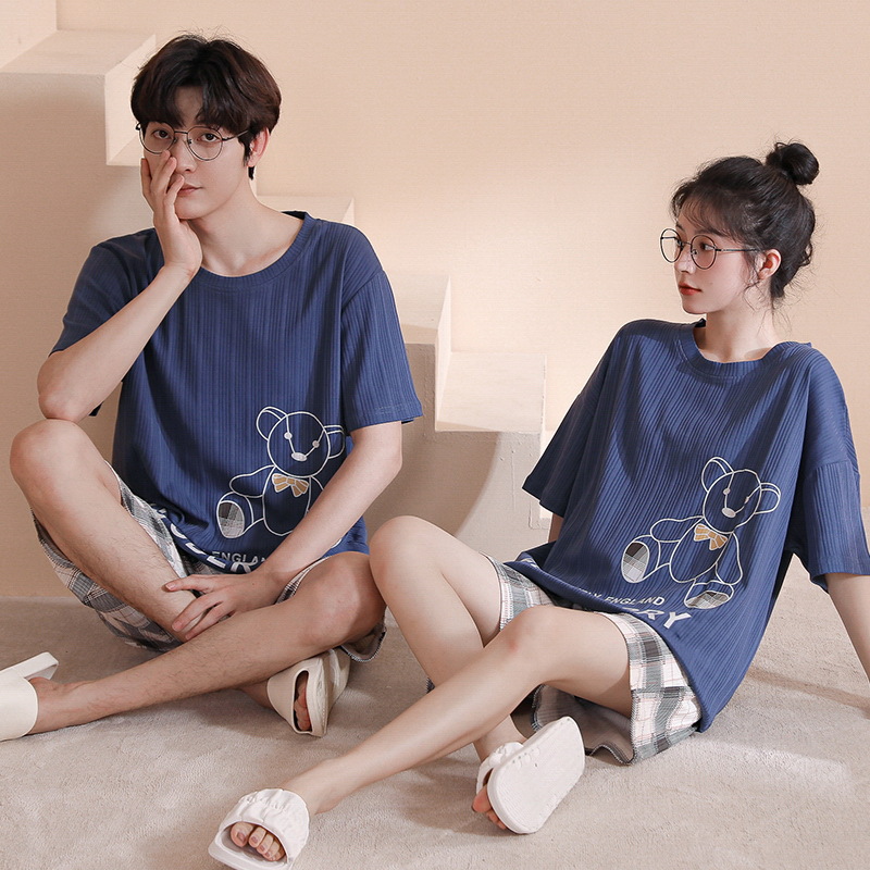 여름 커플 잠옷 여성 여름 학생 면화 여름 반팔 반바지 남성 만화 새로운 홈웨어 세트 여성스토어 가기