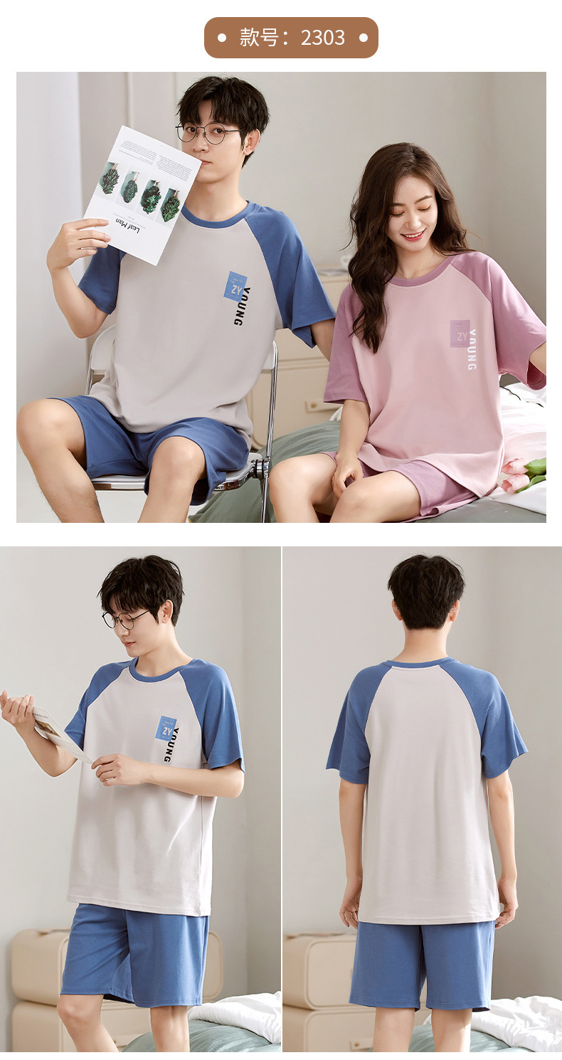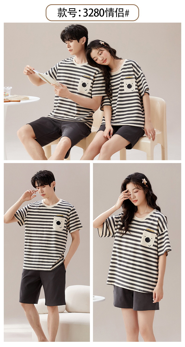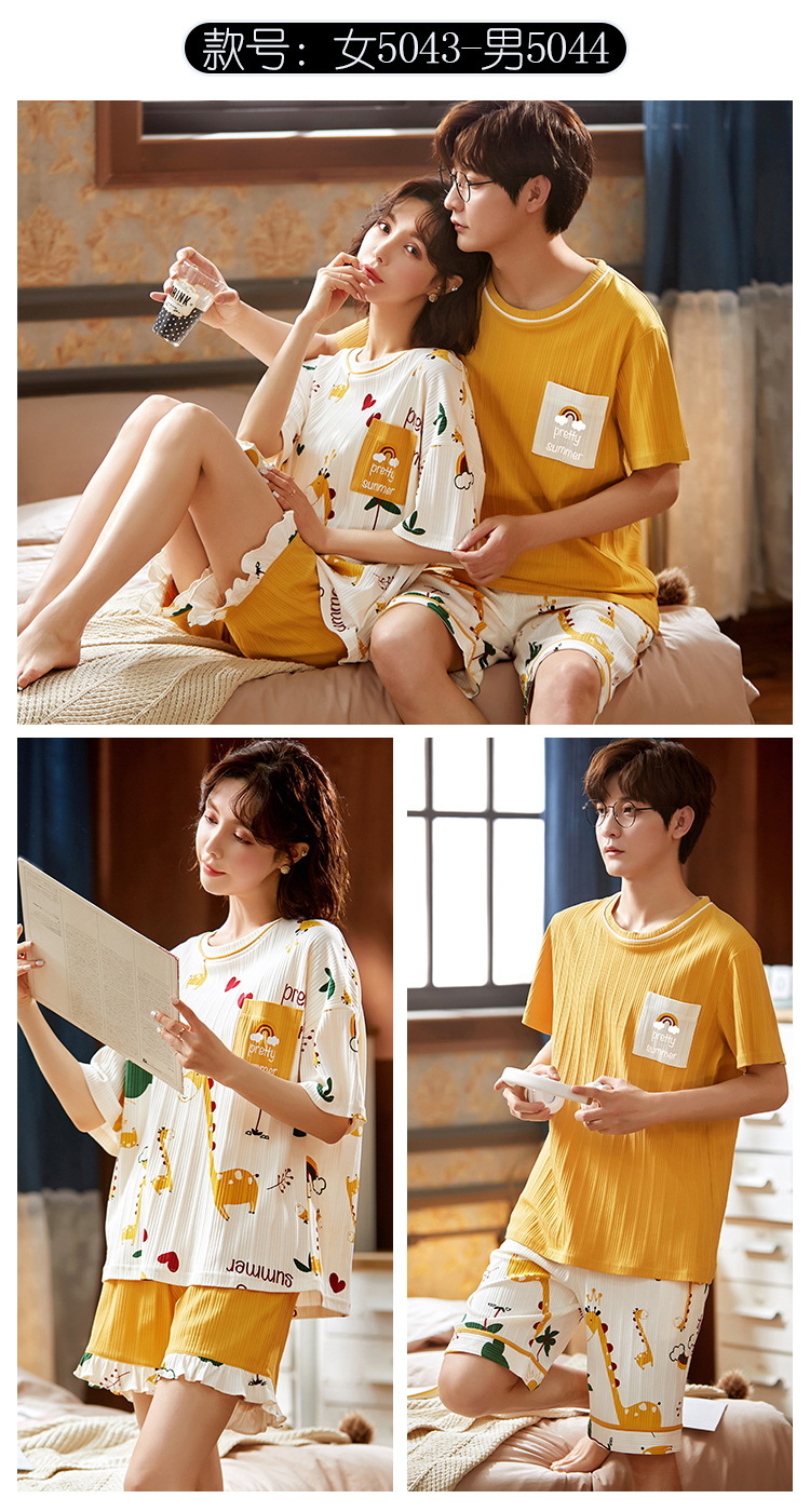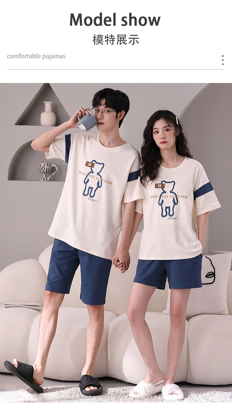 여름 커플 잠옷 여성 여름 학생 면화 여름 반팔 반바지 남성 만화 새로운 홈웨어 세트 여성스토어 가기