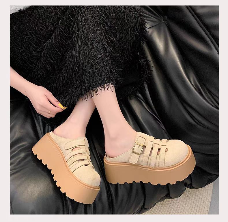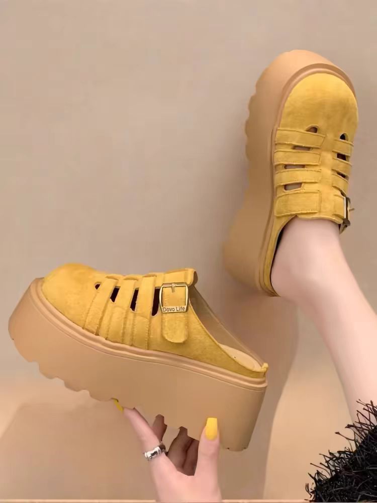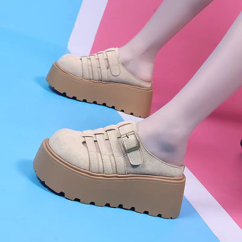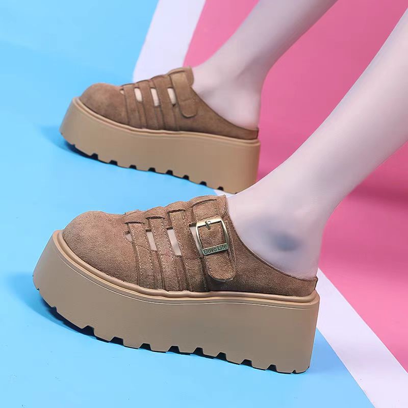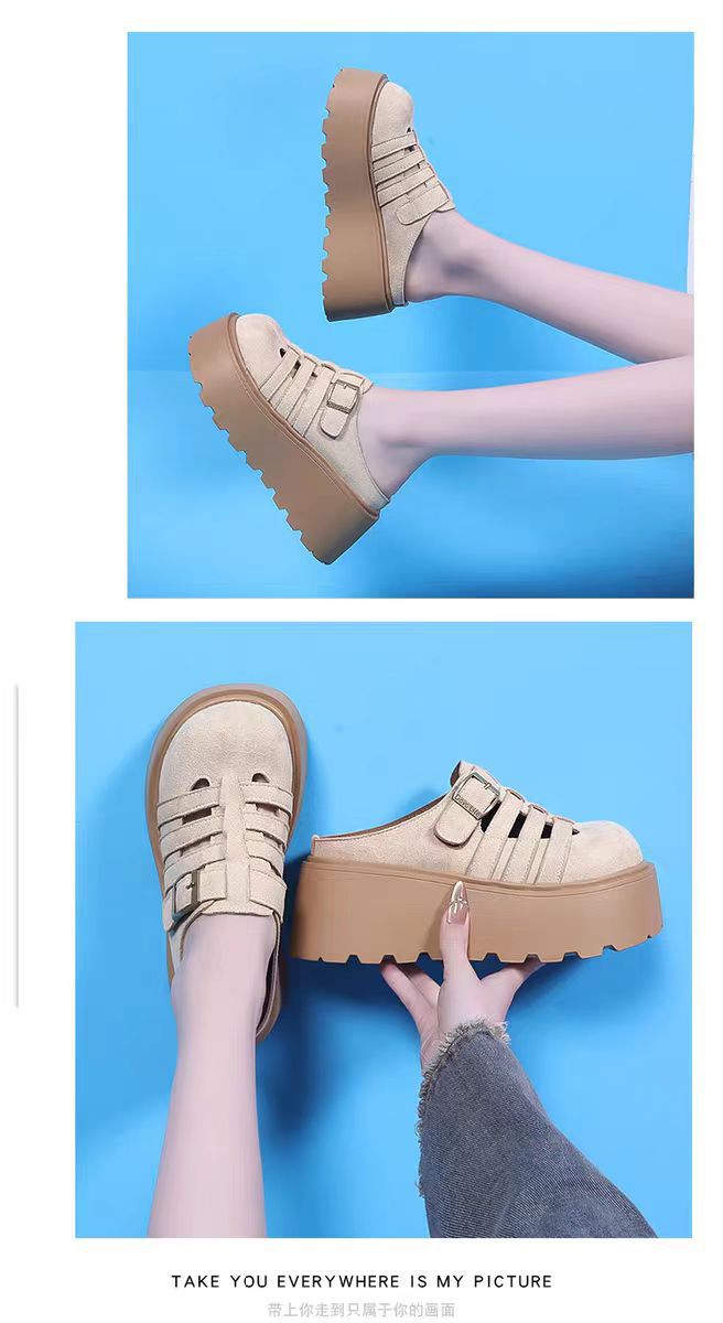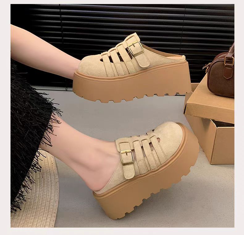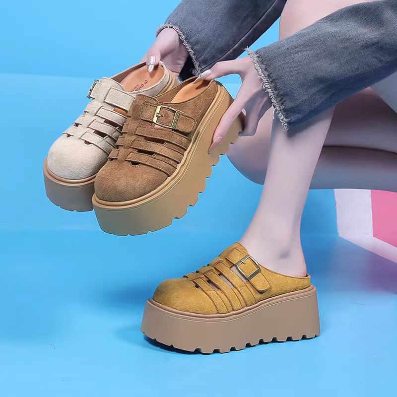 2025 새로운 여름 패션 중공 발가락 반 슬리퍼 두꺼운 밑창 웨지 하이힐 샌들 여성 신발 유행스토어 가기