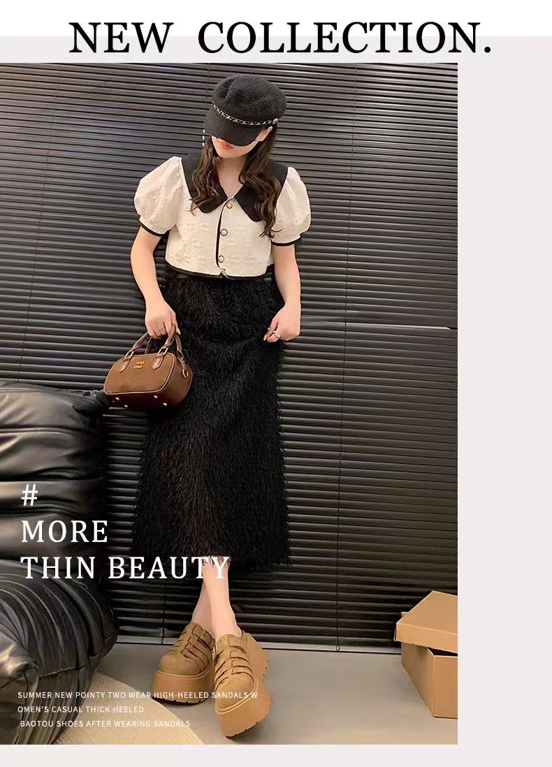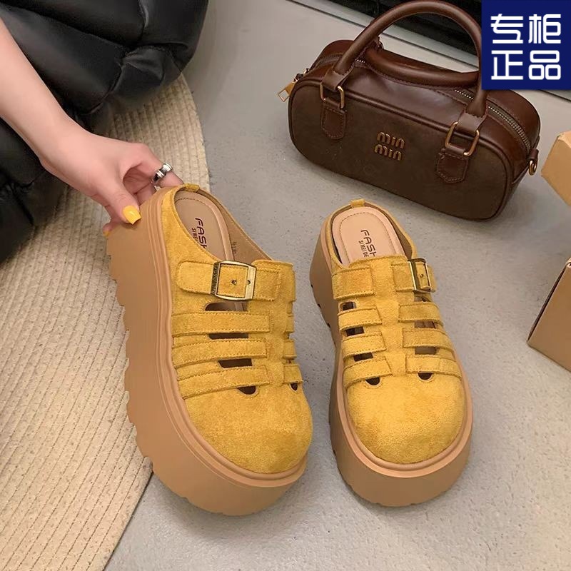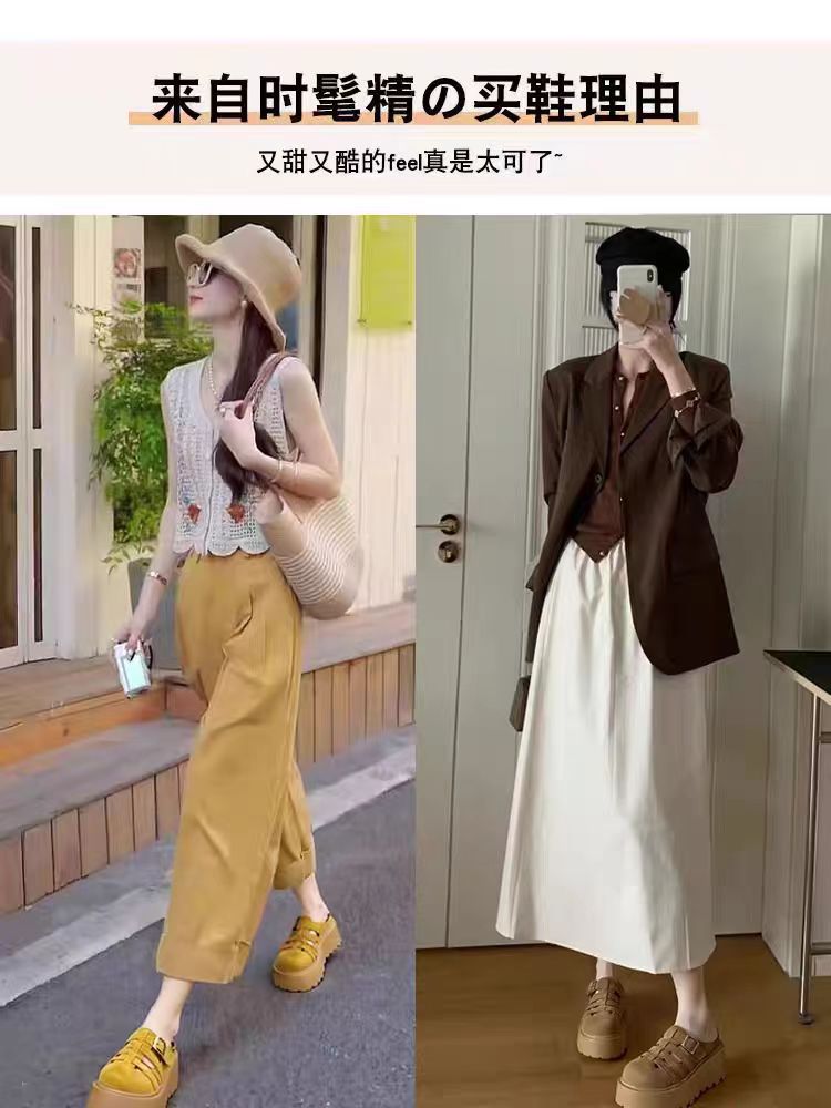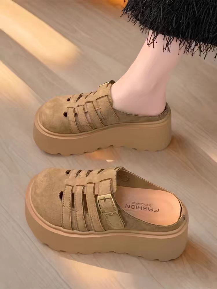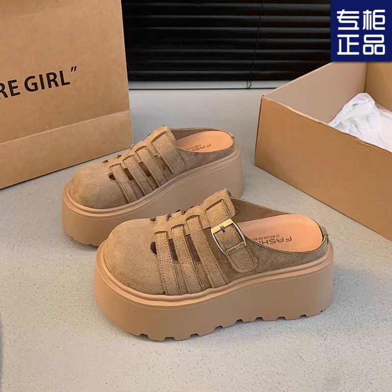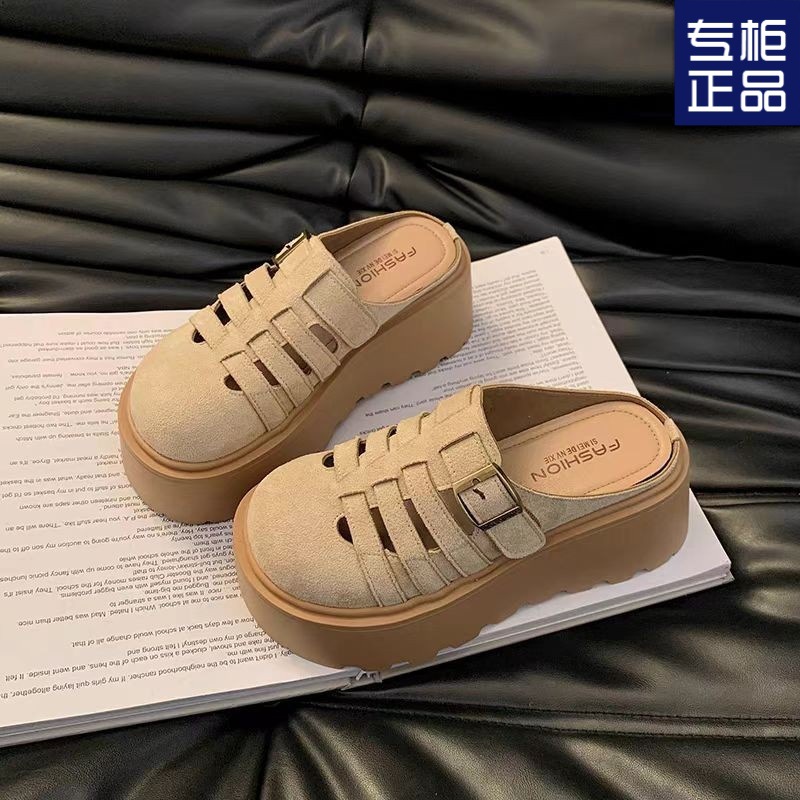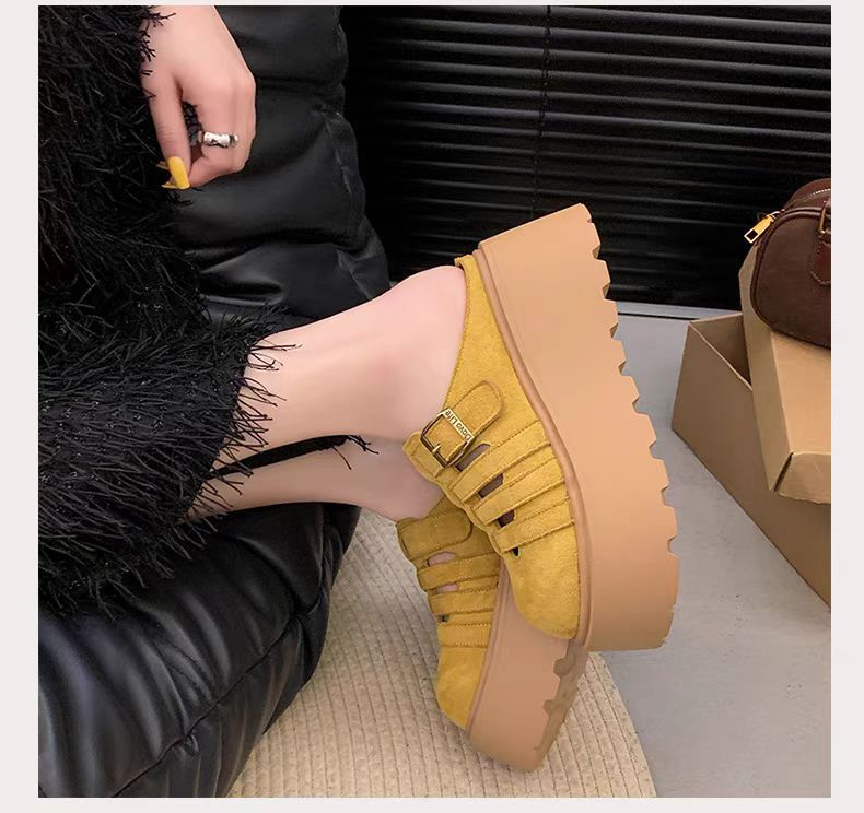 2025 새로운 여름 패션 중공 발가락 반 슬리퍼 두꺼운 밑창 웨지 하이힐 샌들 여성 신발 유행스토어 가기