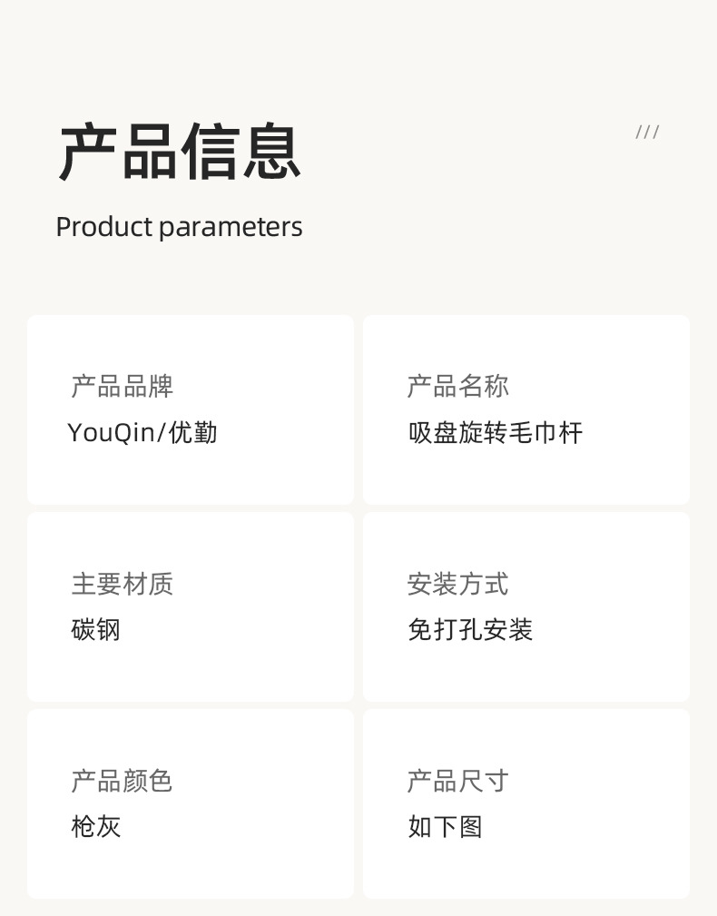 • 흡착컵[건애쉬] 막대 3개(탈착 가능, 180도 가능)°회전하다)