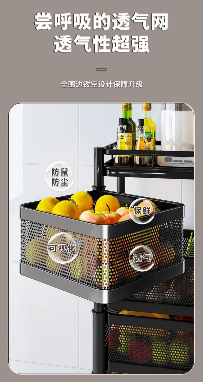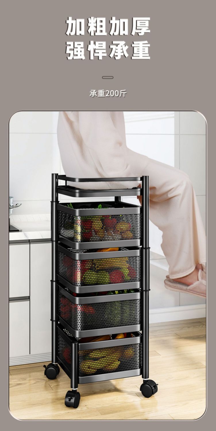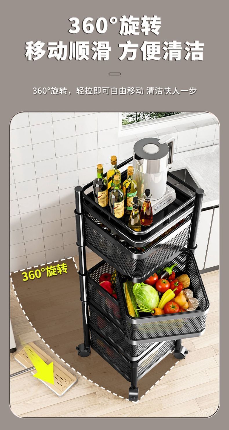 주방 회전 랙 가정용 바닥 거실 스낵 박스 장난감 과일 및 야채 야채 바구니 다층 카트 보관 랙스토어 가기