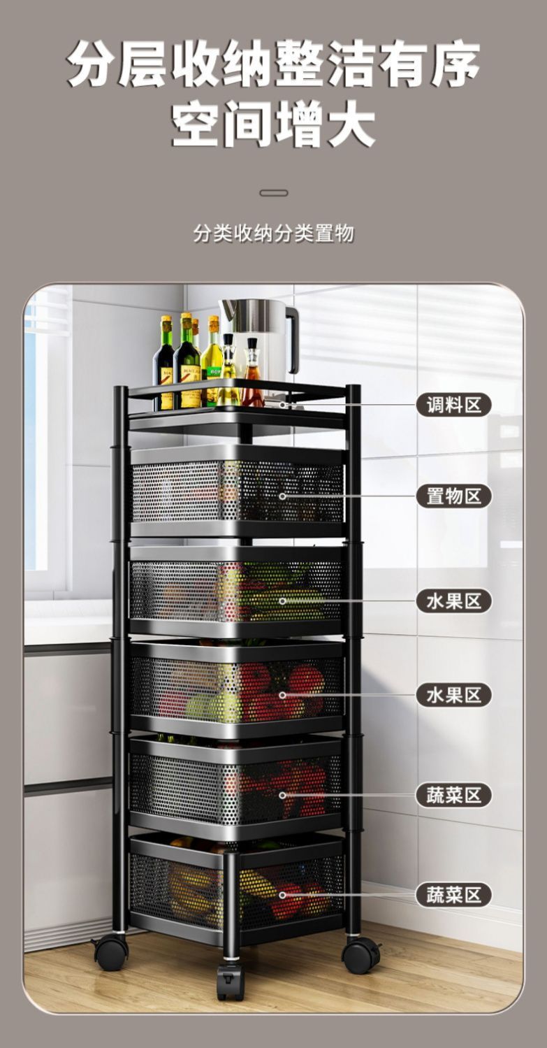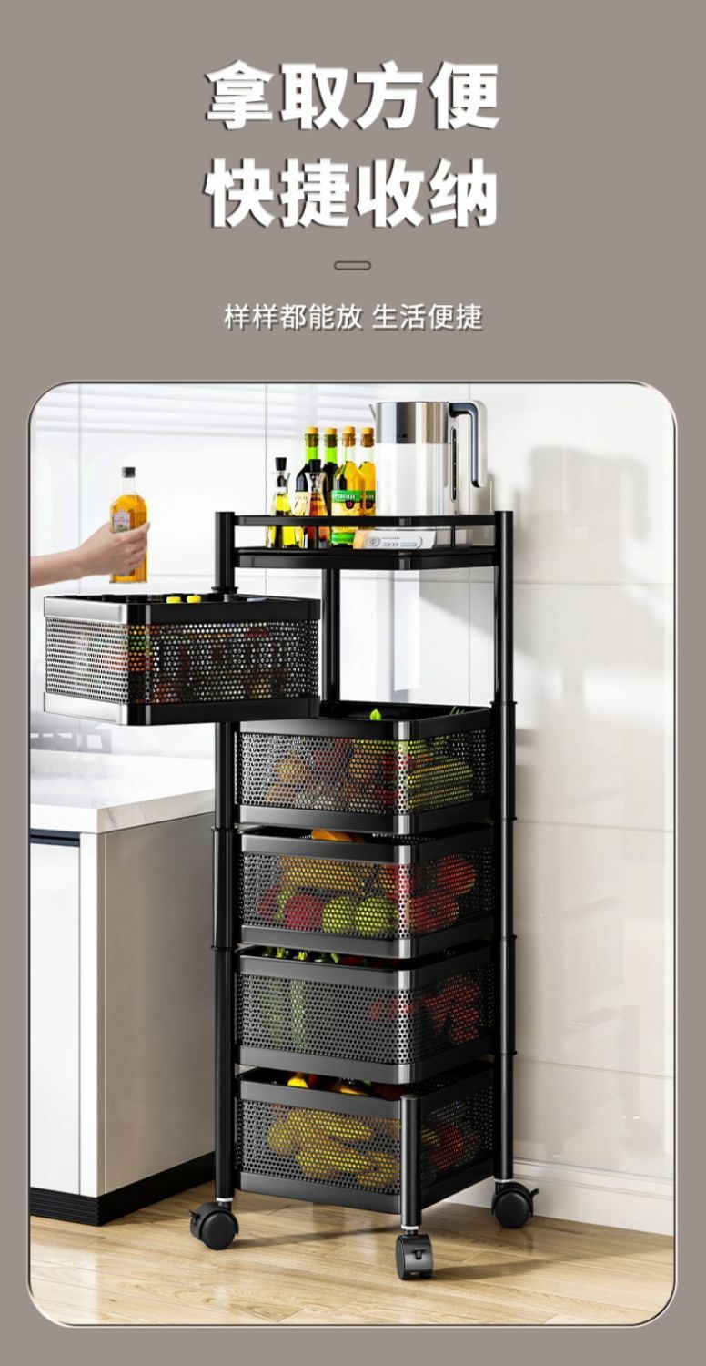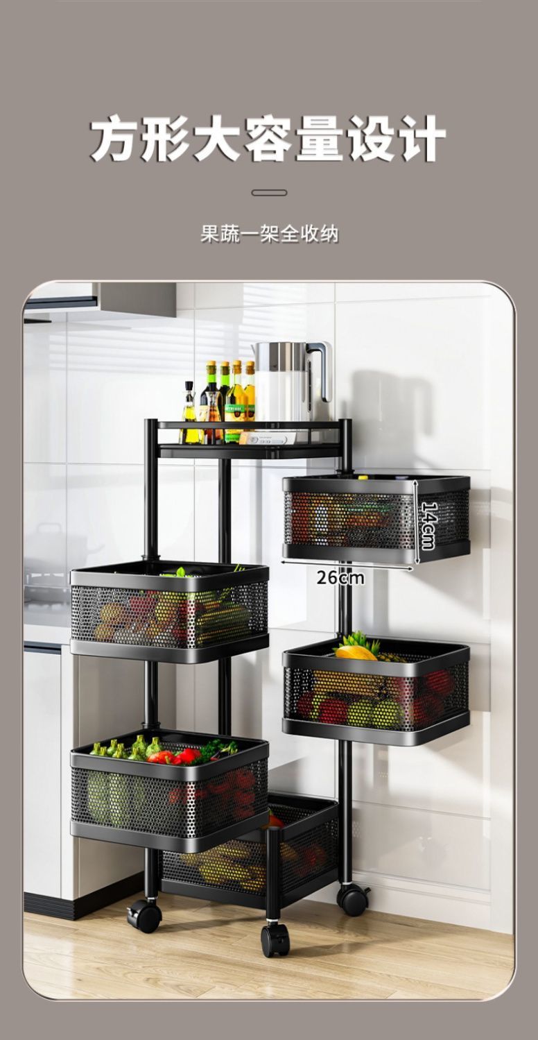 주방 회전 랙 가정용 바닥 거실 스낵 박스 장난감 과일 및 야채 야채 바구니 다층 카트 보관 랙스토어 가기