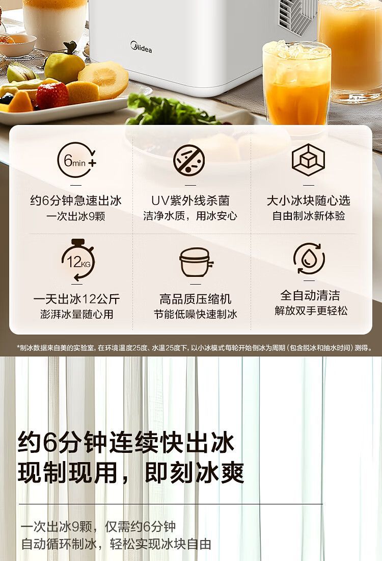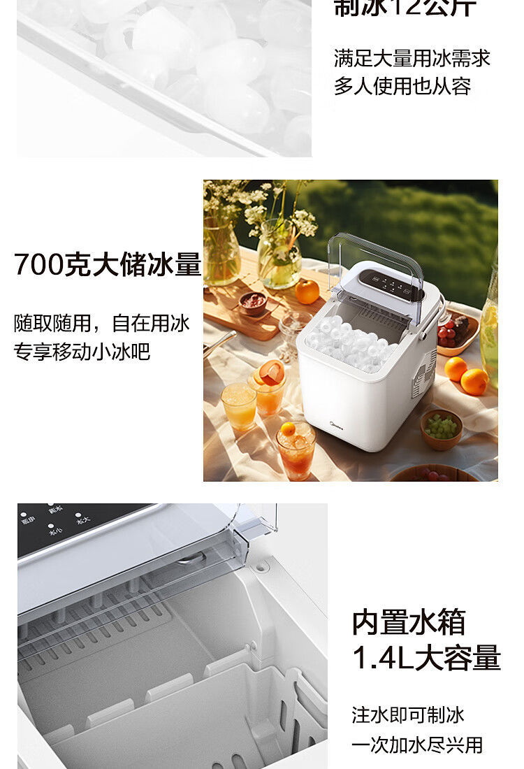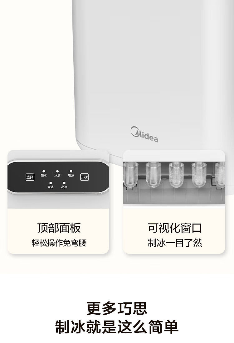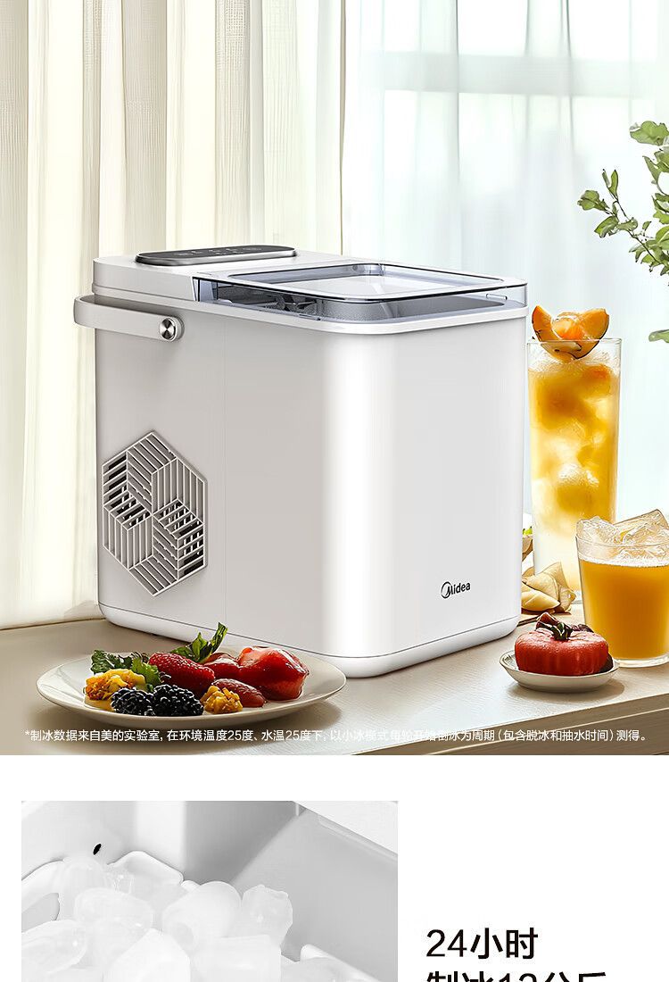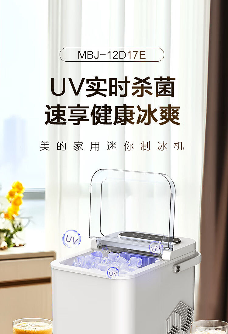 Midea 자동차 냉장고 제빙기 완전 자동 UV 살균 미니 12KG 총알 얼음 자체 청소 12D17E