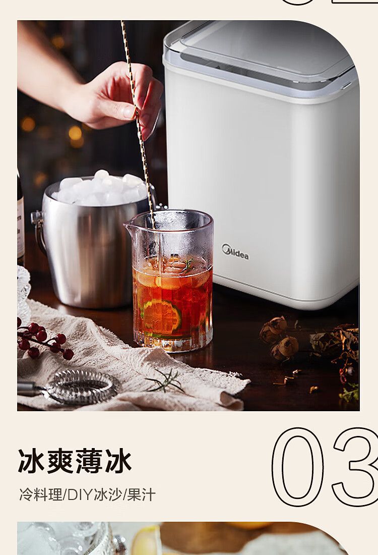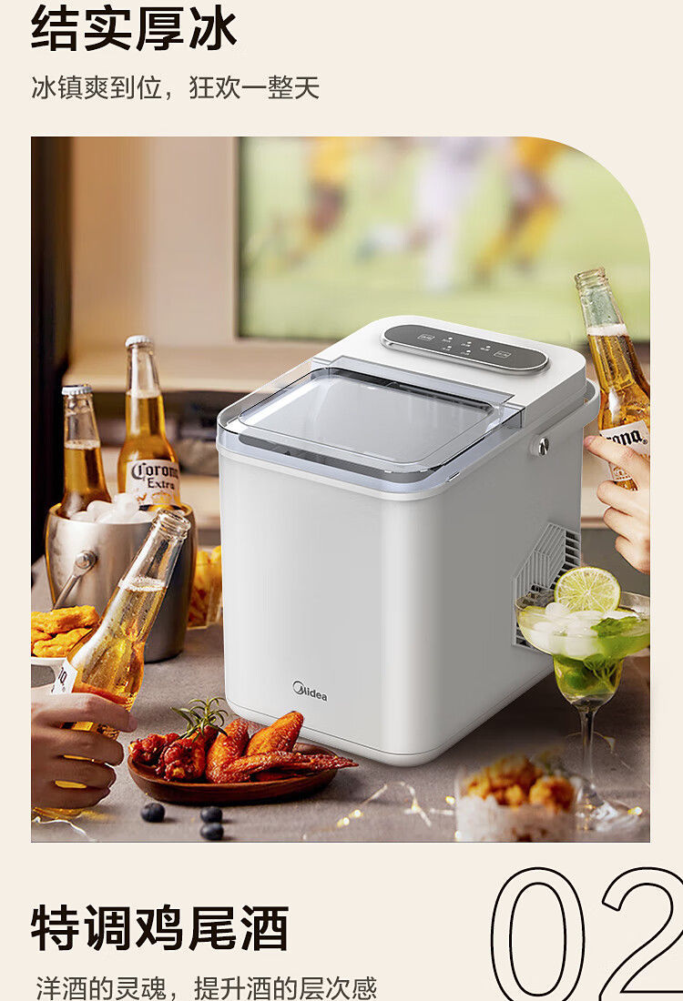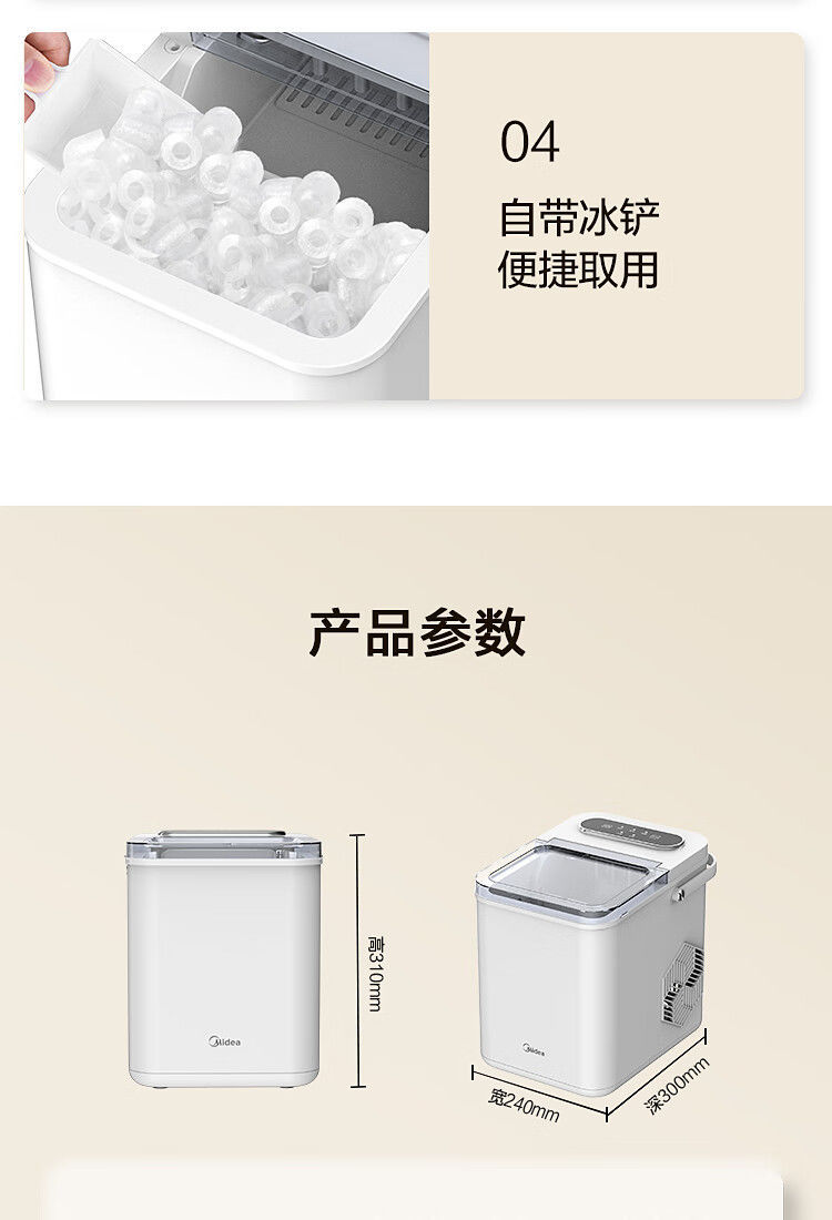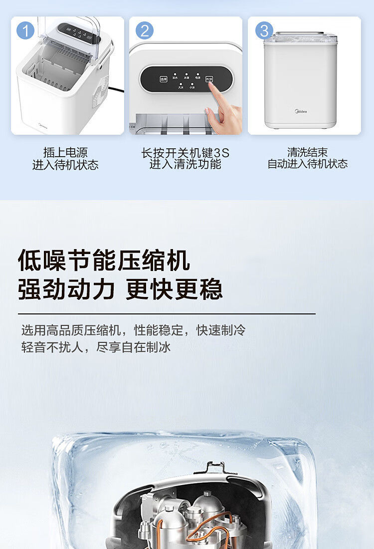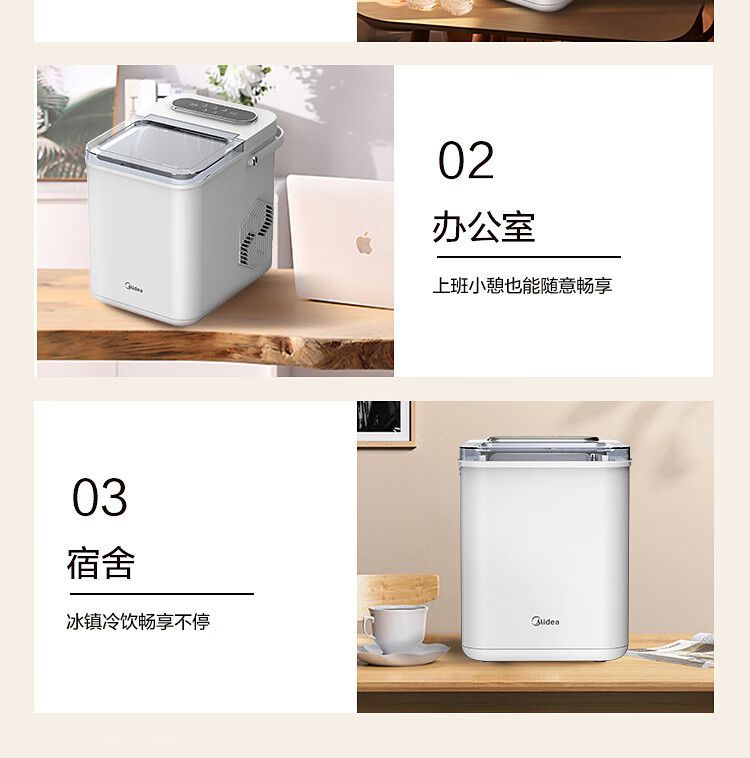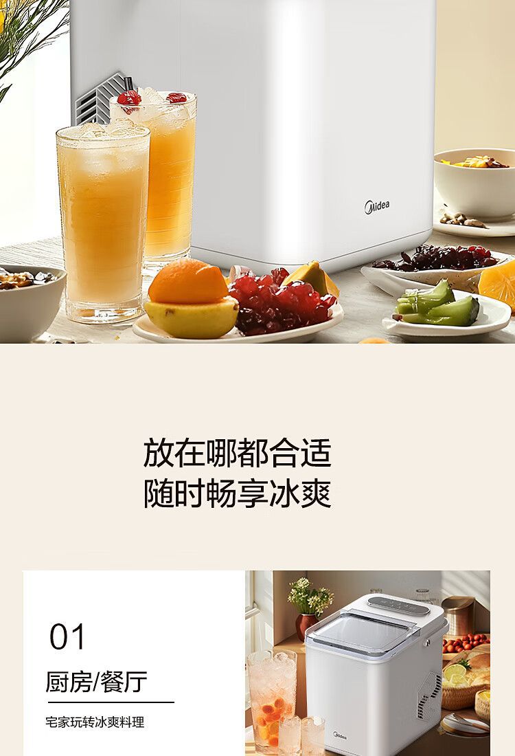Midea 자동차 냉장고 제빙기 완전 자동 UV 살균 미니 12KG 총알 얼음 자체 청소 12D17E스토어 가기