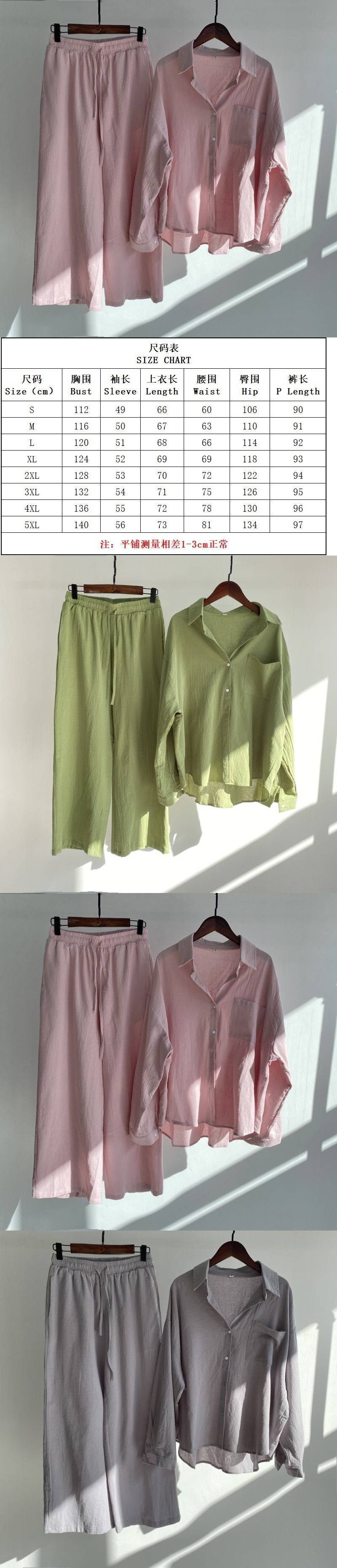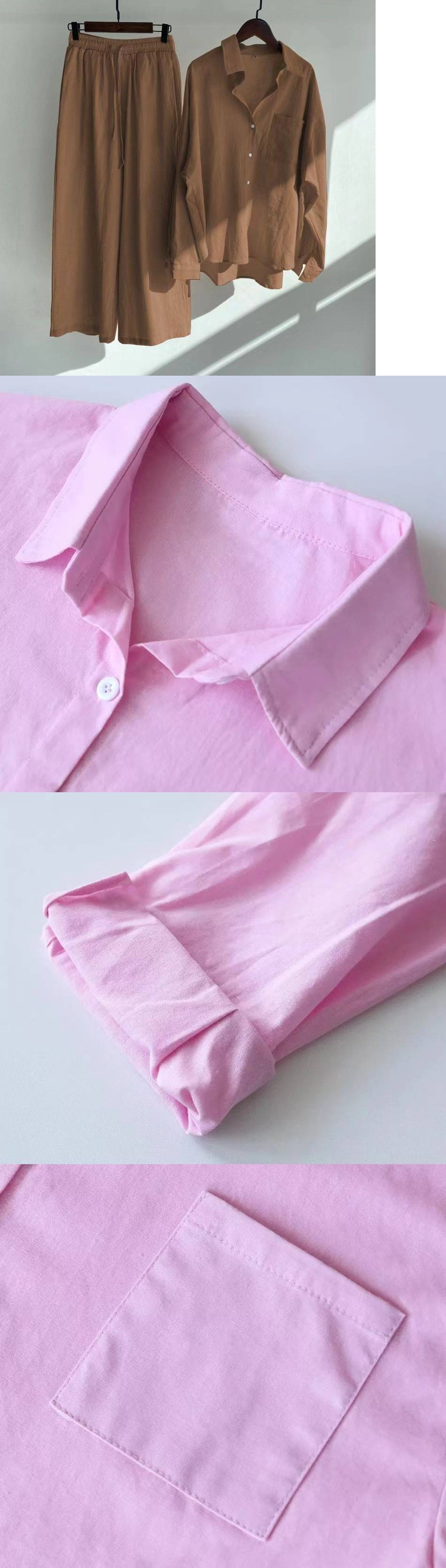 여성용 2 피스 빈티지 플러스 사이즈 2025 면 및 리넨 셔츠 세트 높은 허리 느슨한 바지