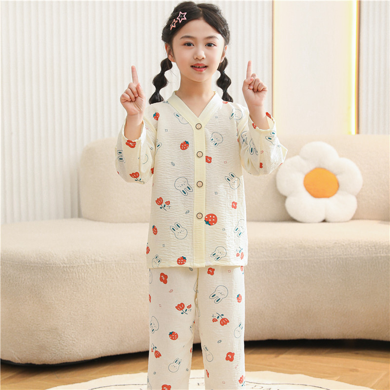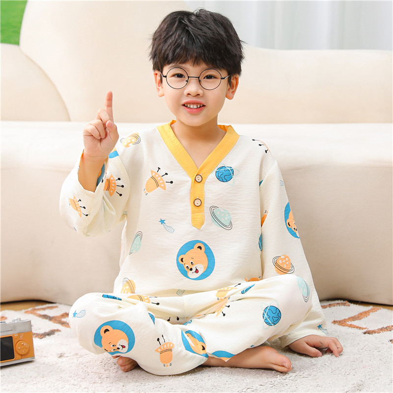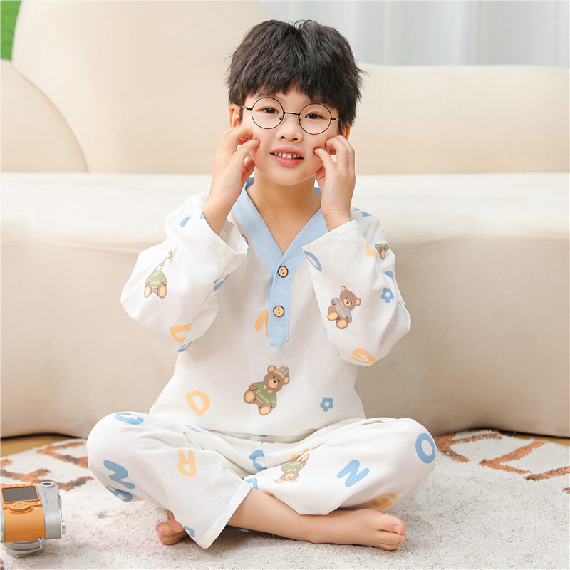 2025 봄, 가을 어린이 긴팔 바지 홈웨어 세트 클라우드 코튼 속옷 아기 얇은 잠옷 및 잠옷