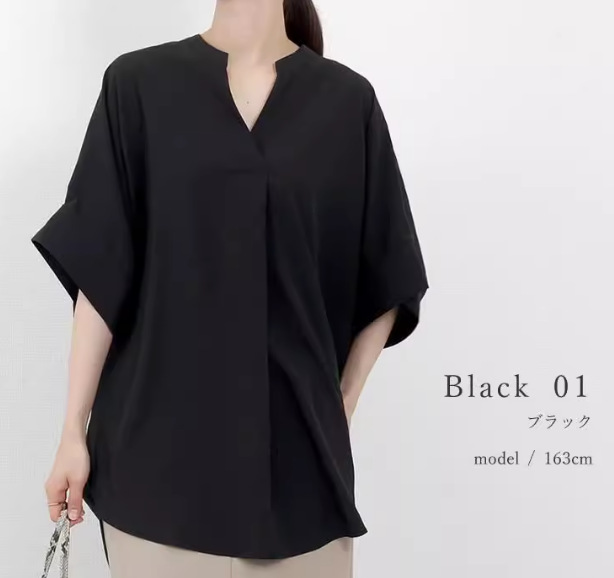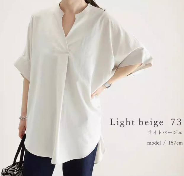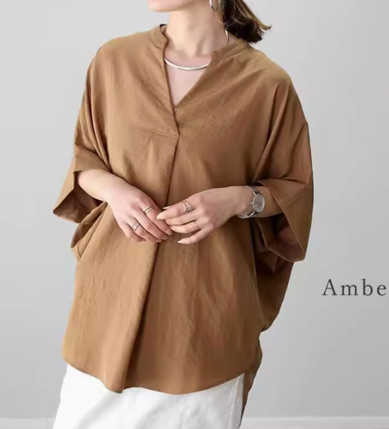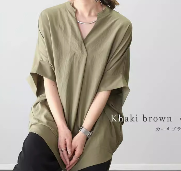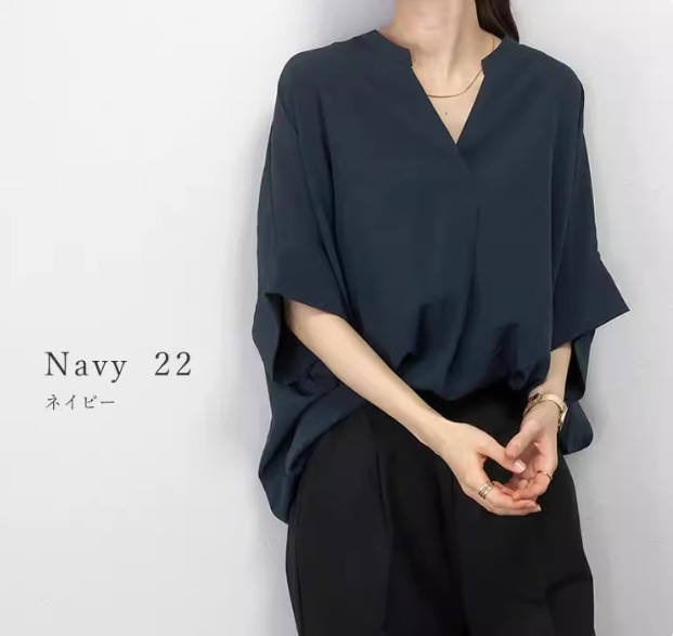 국경 간 일본 한국 외국 단일 유럽 역 새로운 여름 V-목 풀오버 느슨한 단색 쉬폰 셔츠 탑스토어 가기