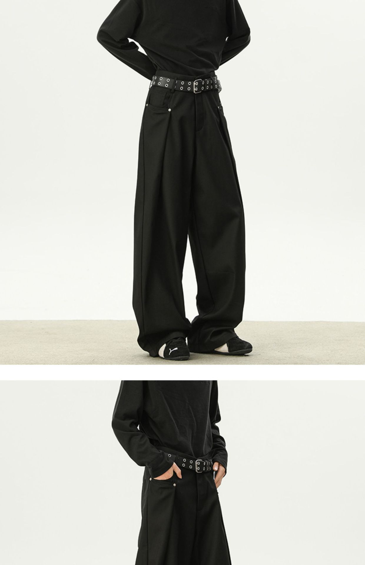 반 탄성 허리 와이드 레그 웨스턴 바지 남자 여름 트렌디 브랜드 미국 스타일 주름 캐주얼 바지 루즈 핏 딥 시미 터 바지스토어 가기