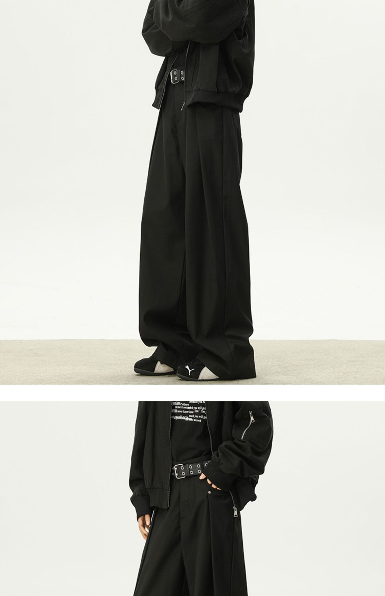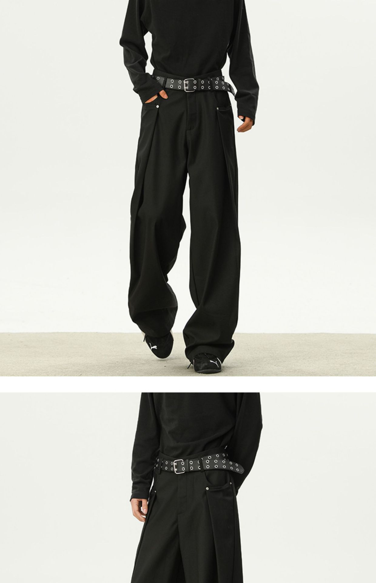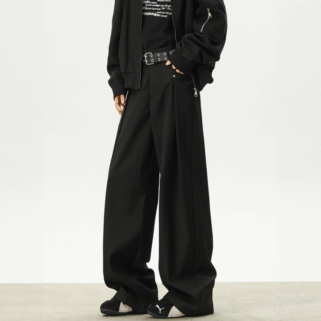 반 탄성 허리 와이드 레그 웨스턴 바지 남자 여름 트렌디 브랜드 미국 스타일 주름 캐주얼 바지 루즈 핏 딥 시미 터 바지
