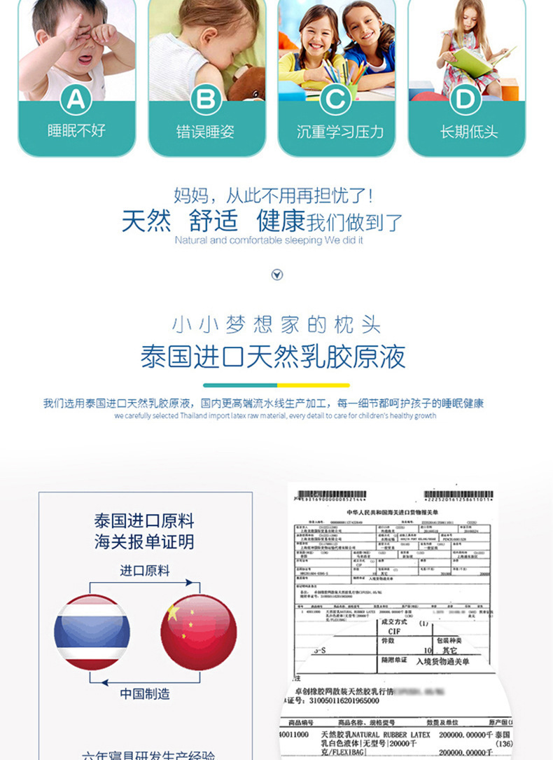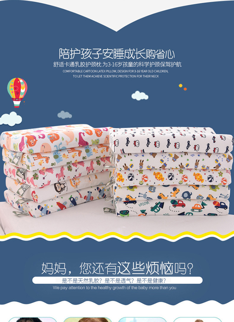 아기 라텍스 베개심, 어린이 베개, 만화 캐릭터 니트 면 베갯잇, 천연 태국산 도매, 수면 안전, 진드기 방지스토어 가기