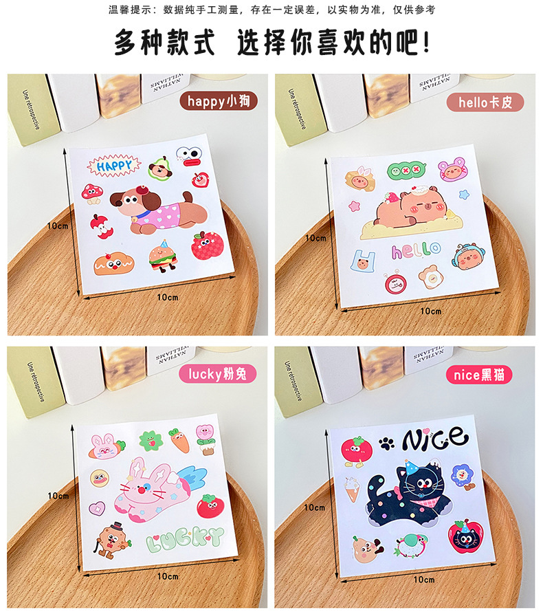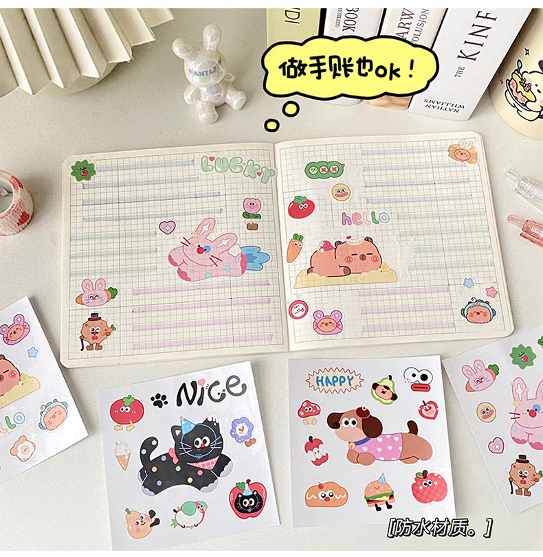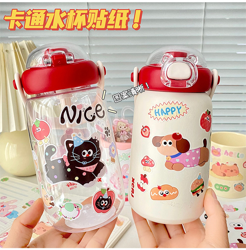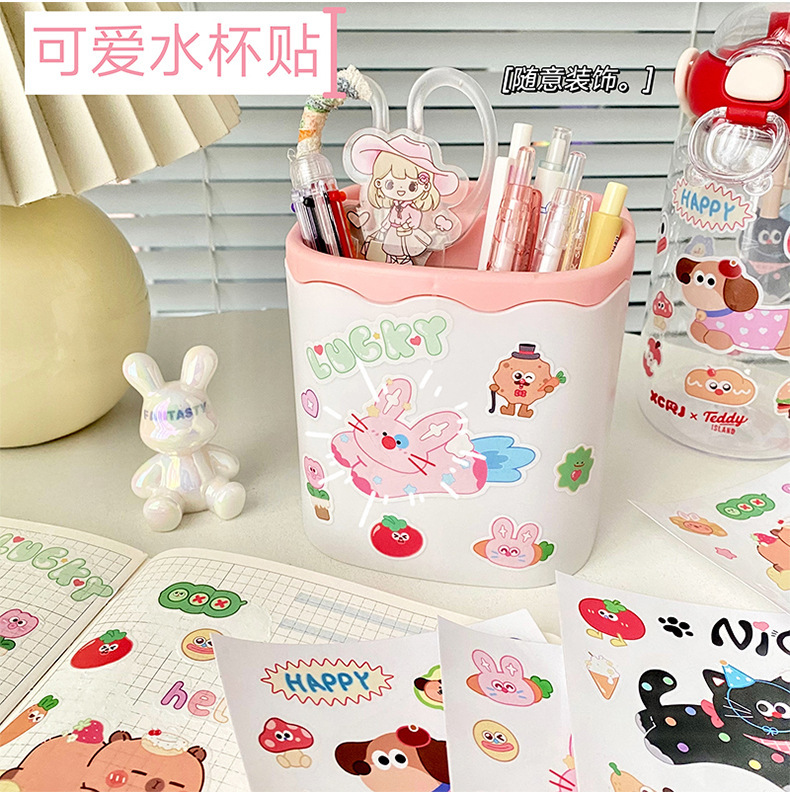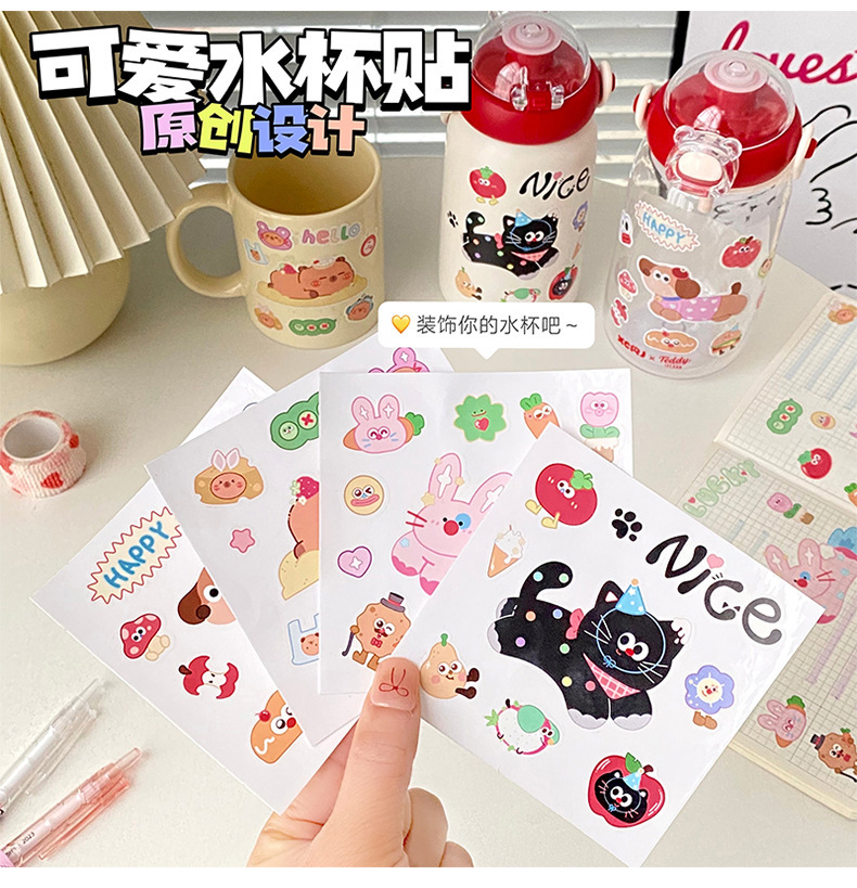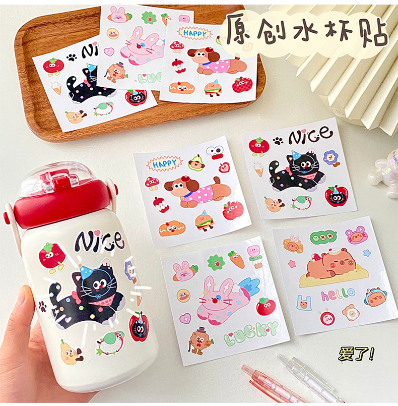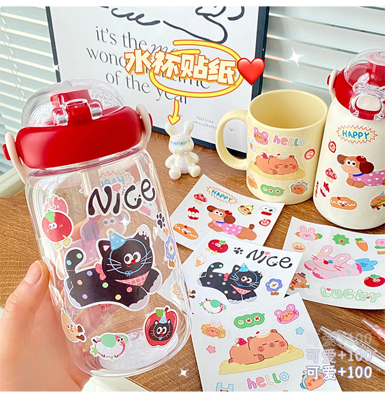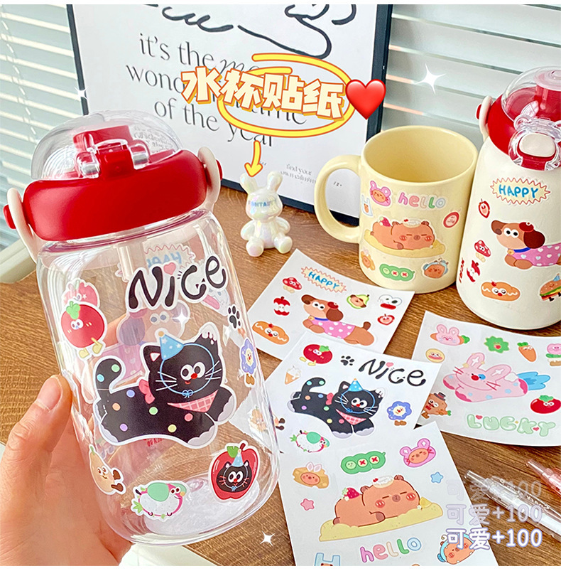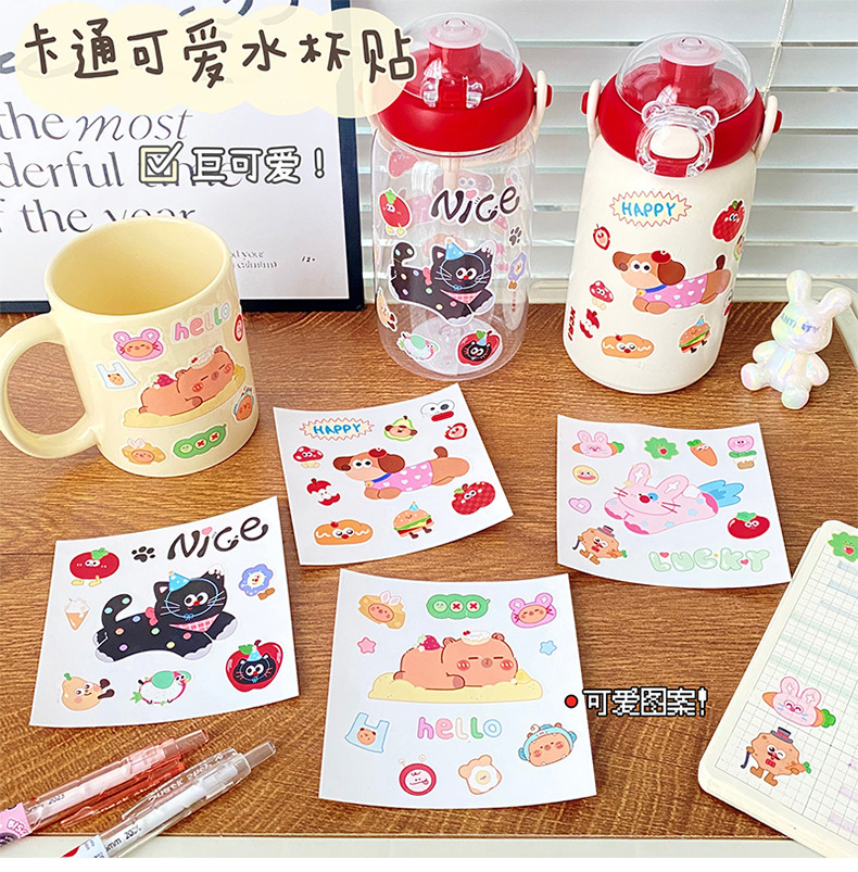 여름 만화 물 컵 스티커 귀여운 Kapibara 스티커 토끼 검은 고양이 강아지 영어 스티커 장식 스티커 배치