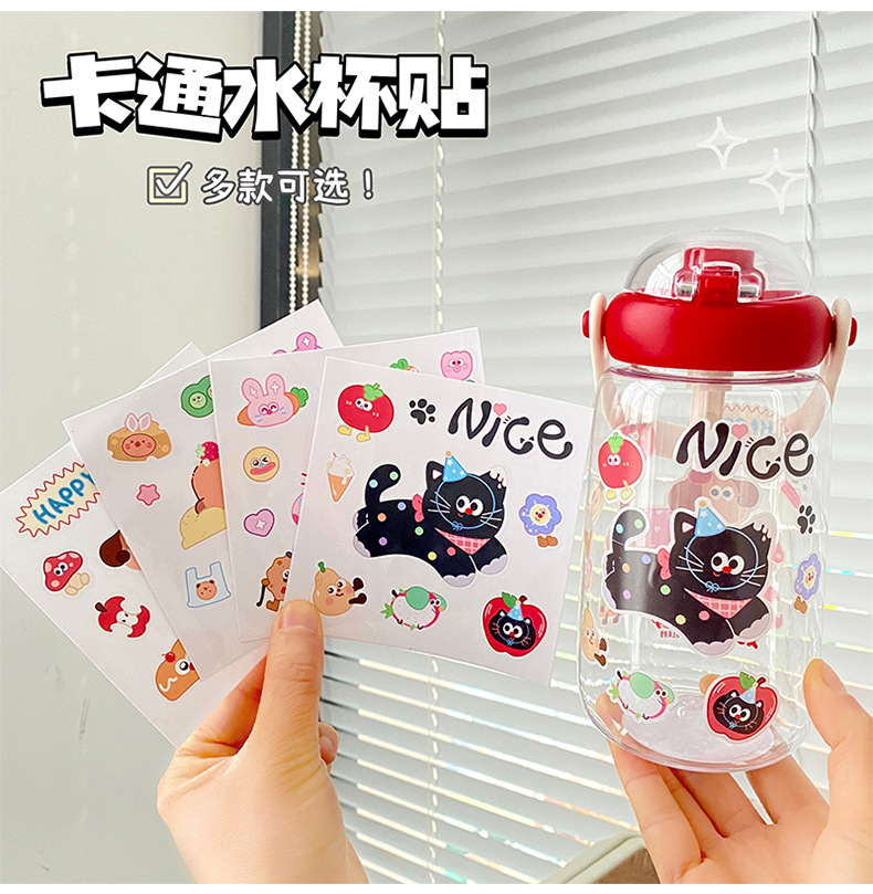 여름 만화 물 컵 스티커 귀여운 Kapibara 스티커 토끼 검은 고양이 강아지 영어 스티커 장식 스티커 배치스토어 가기