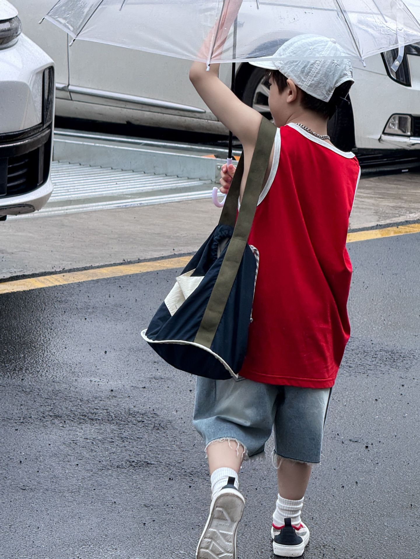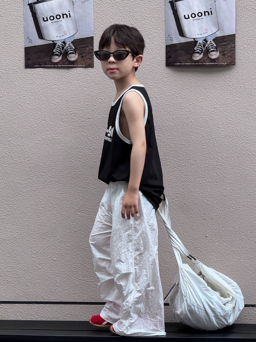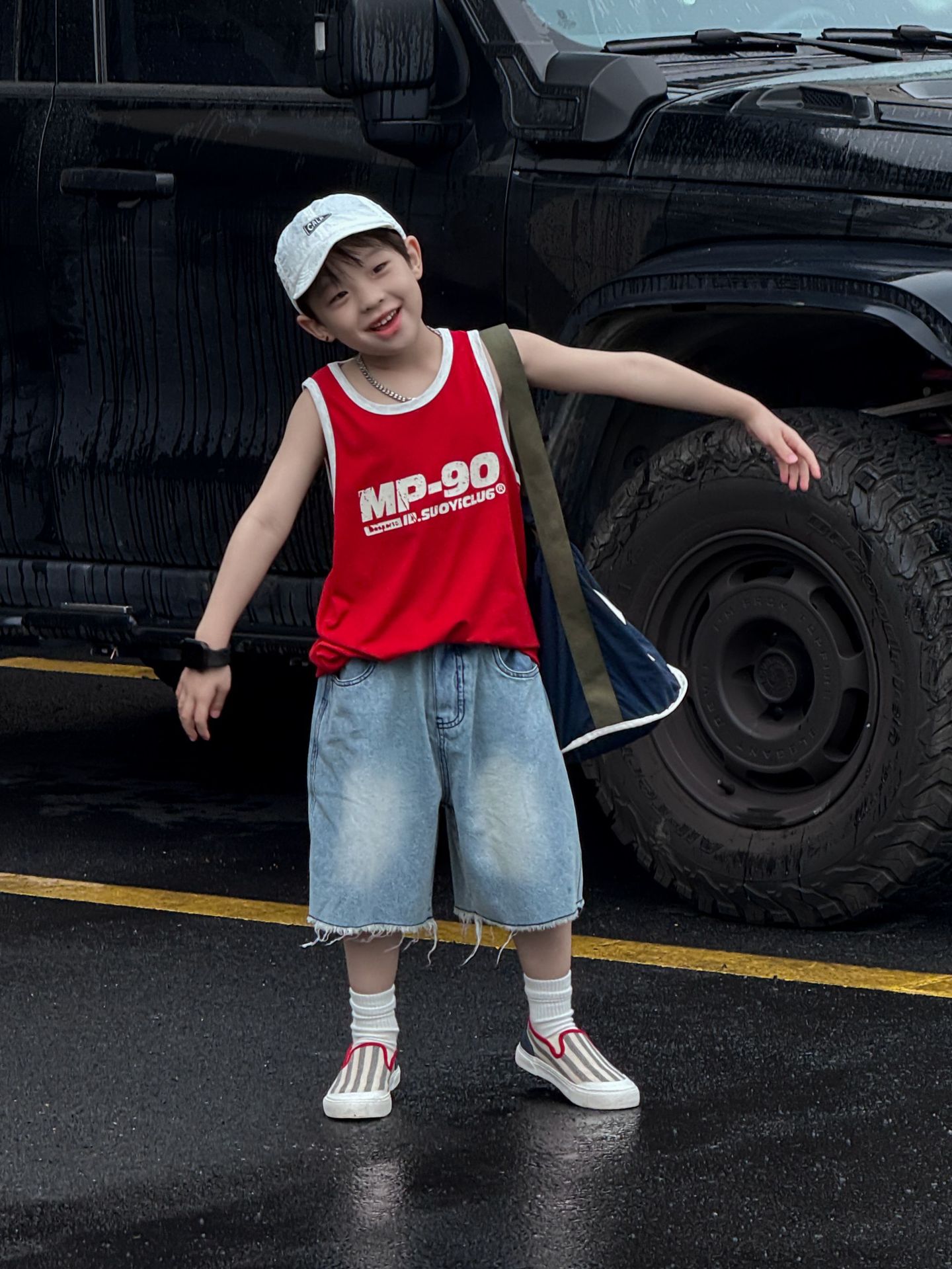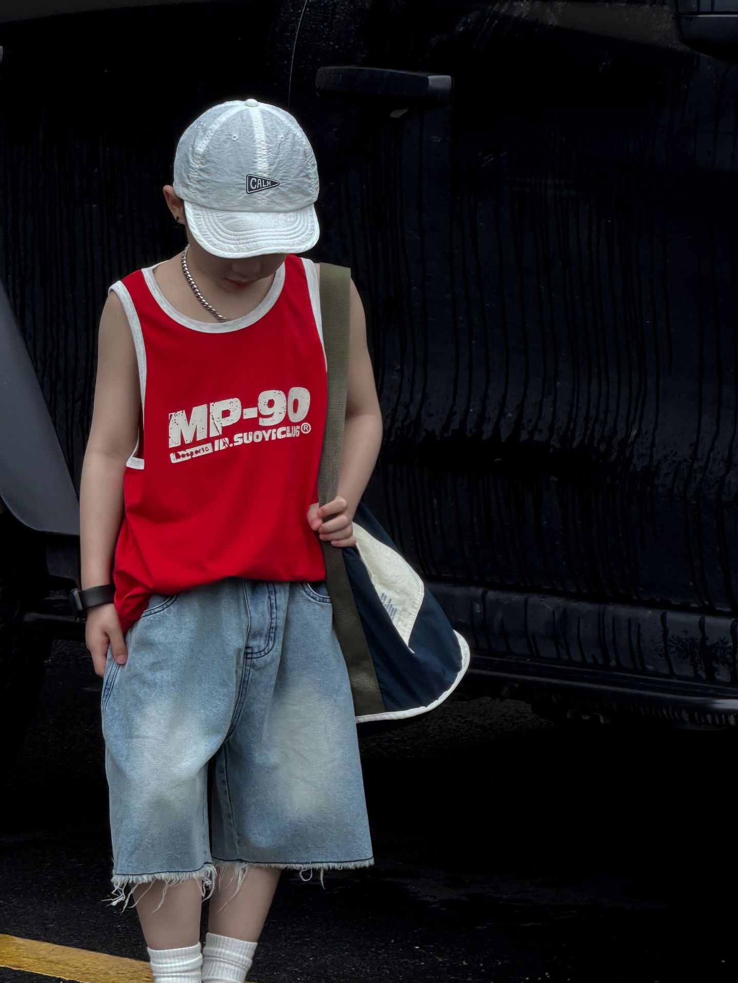 25 여름 한국 아동복 중소 어린이 소년 편지 인쇄 저지 레트로 스포츠 세척 면화 민소매 조끼 탑스토어 가기