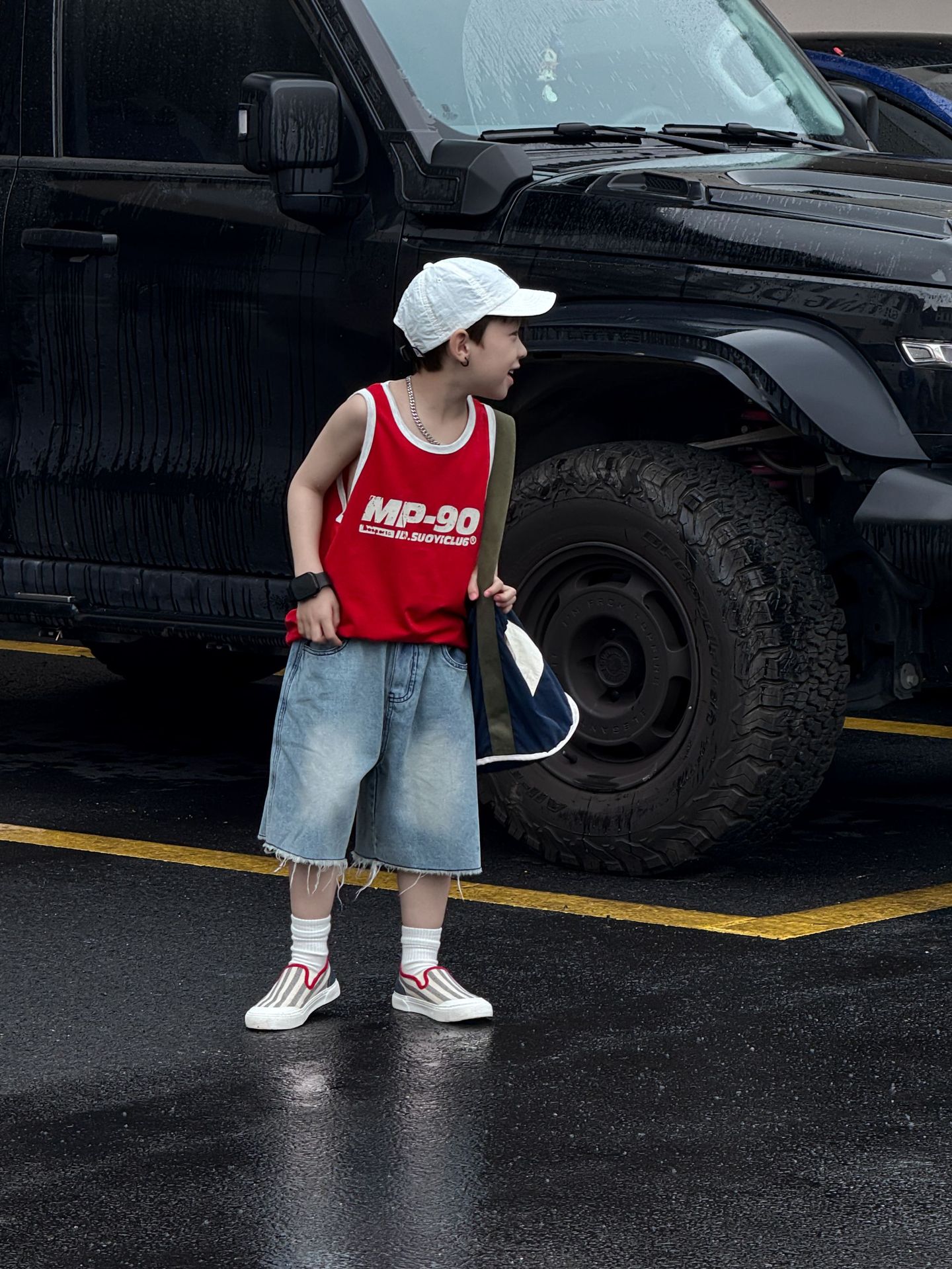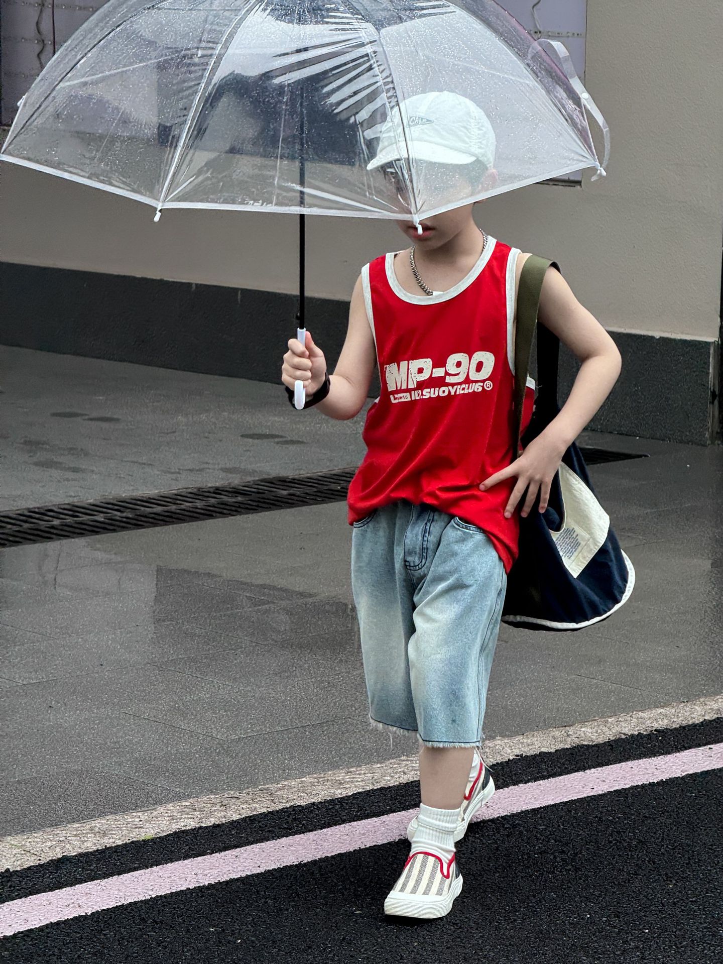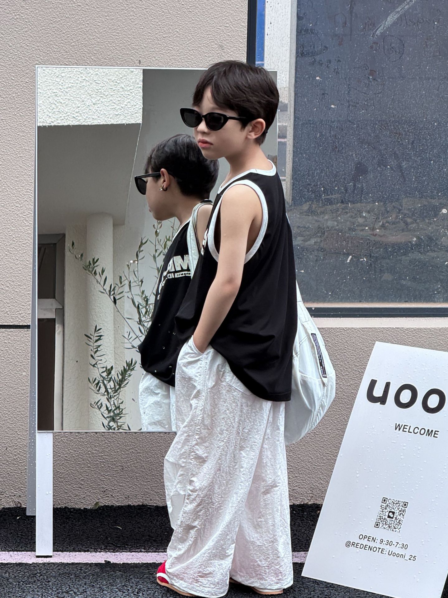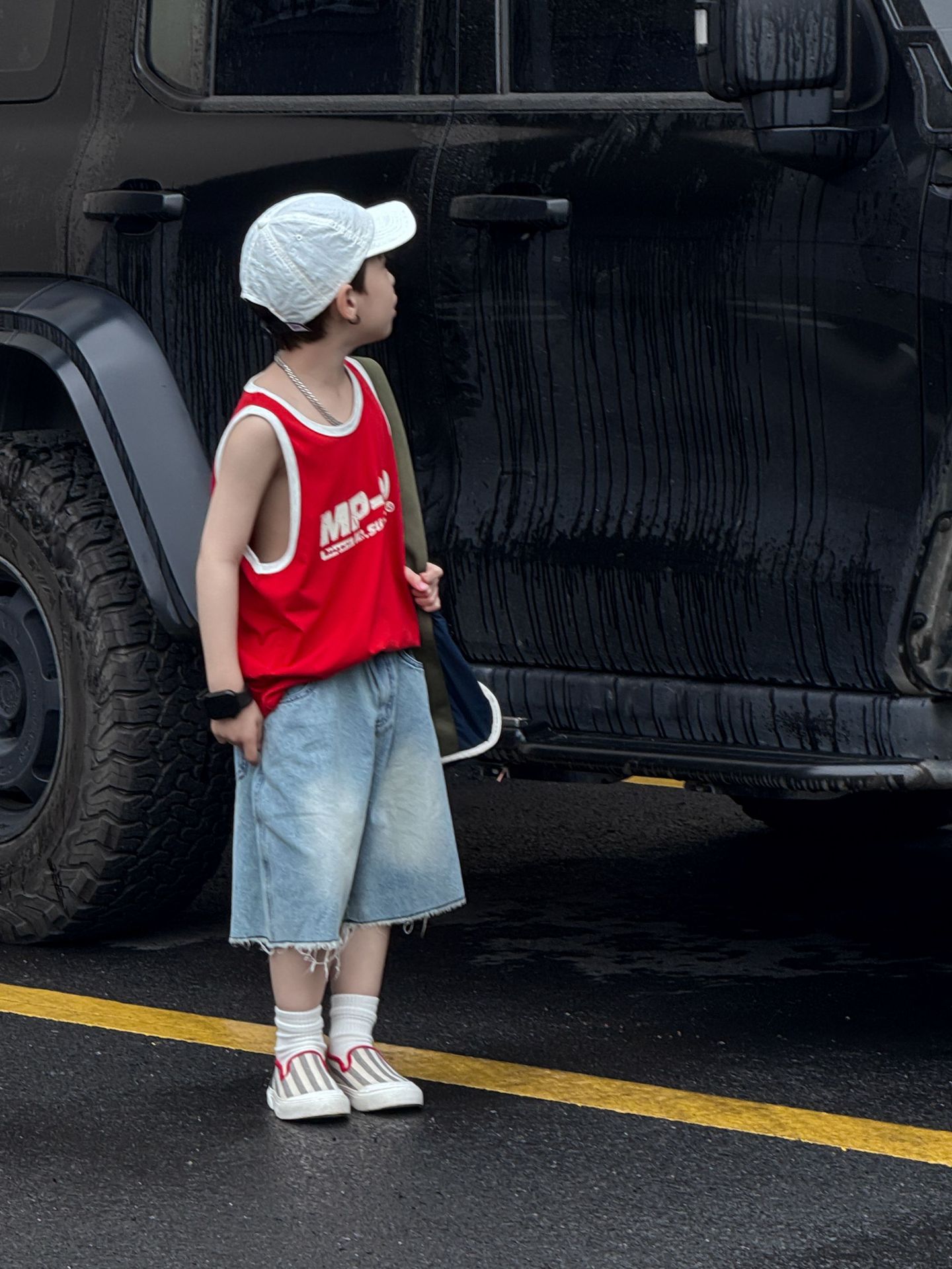 25 여름 한국 아동복 중소 어린이 소년 편지 인쇄 저지 레트로 스포츠 세척 면화 민소매 조끼 탑스토어 가기