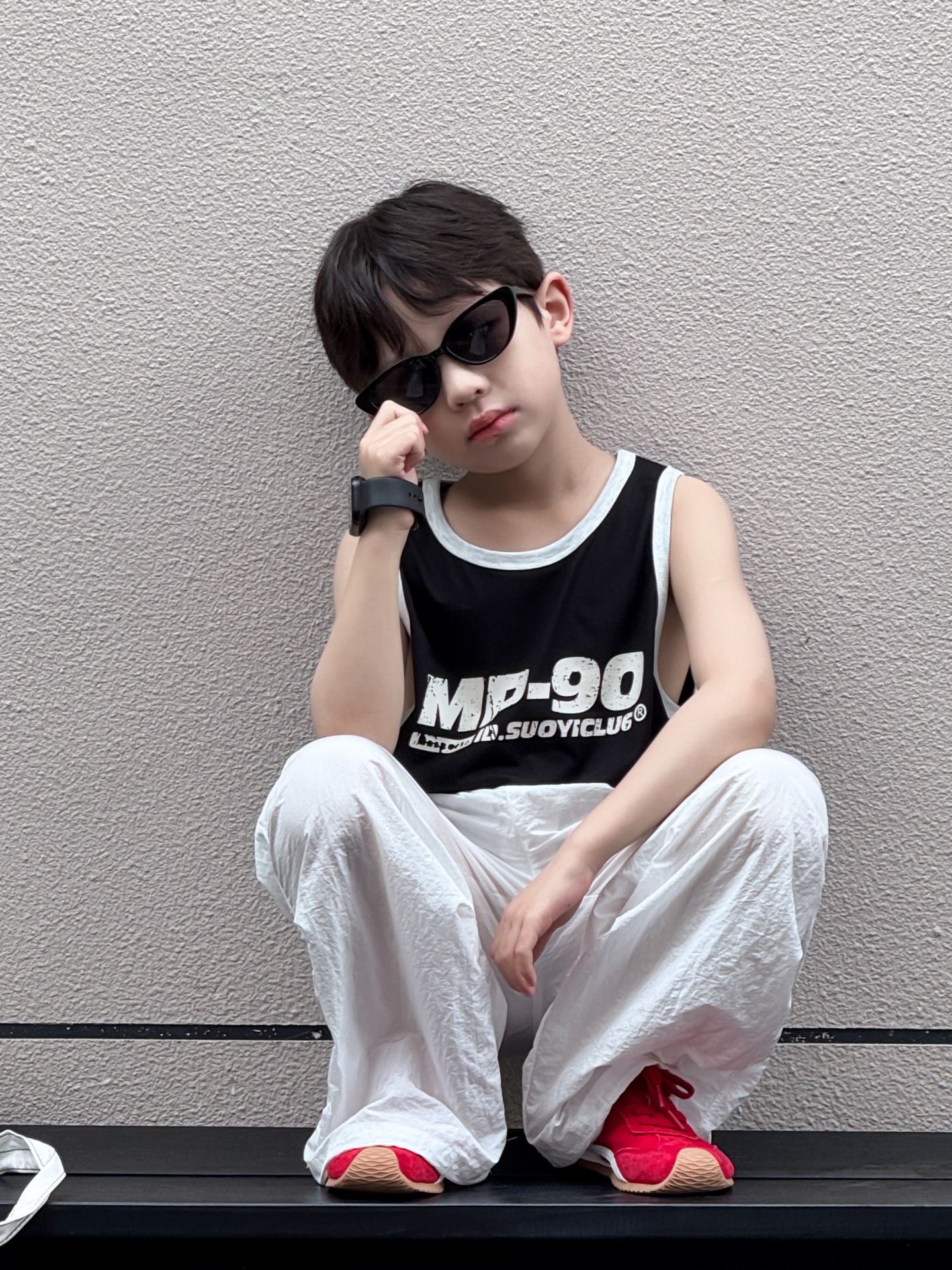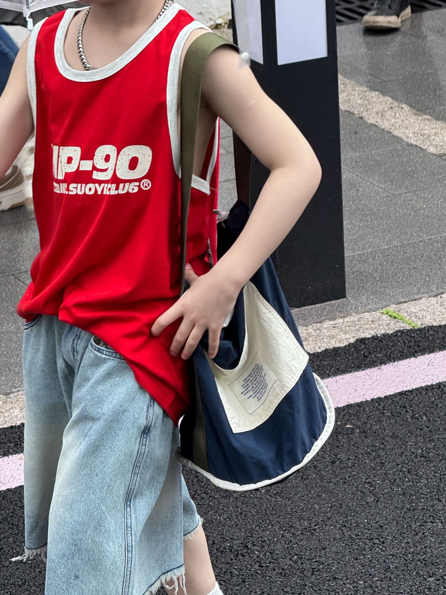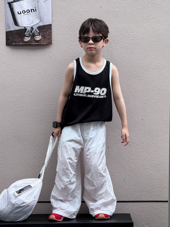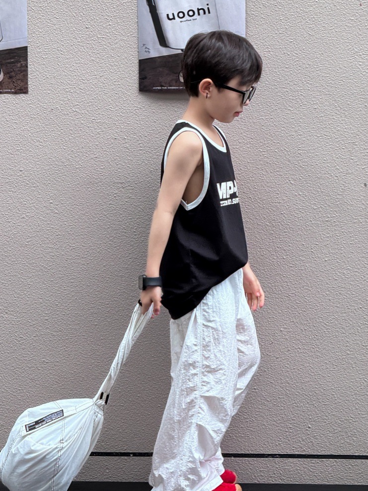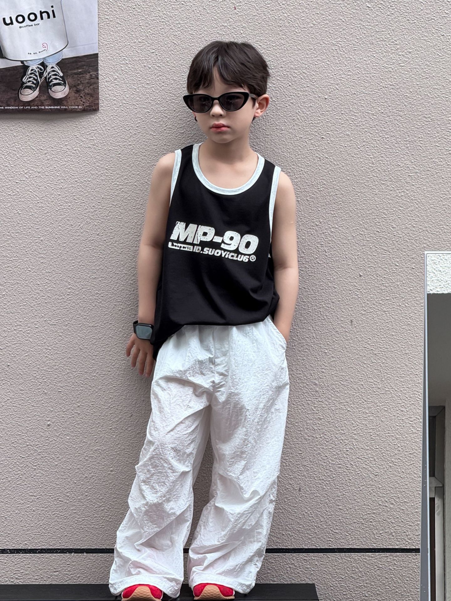 25 여름 한국 아동복 중소 어린이 소년 편지 인쇄 저지 레트로 스포츠 세척 면화 민소매 조끼 탑