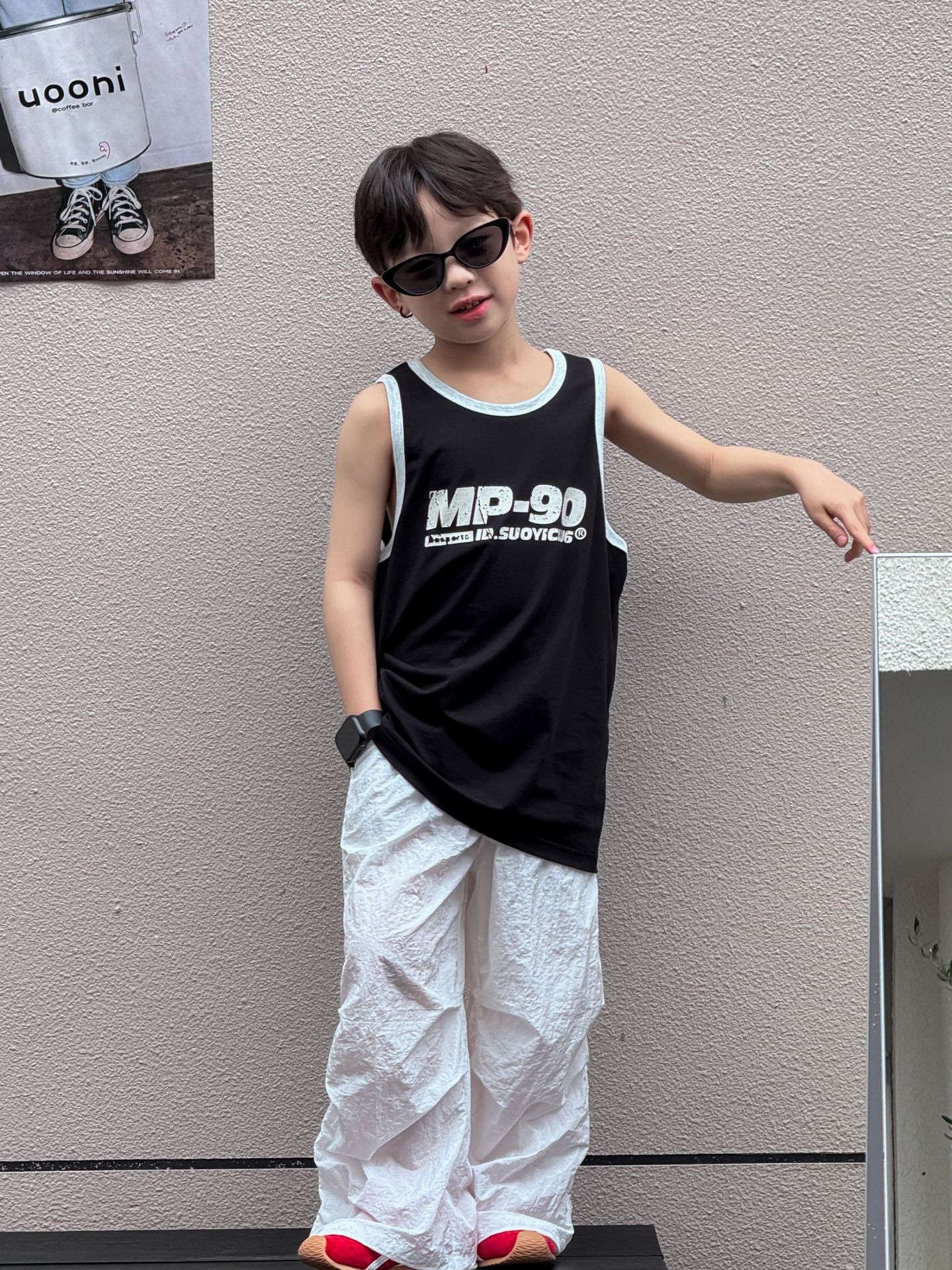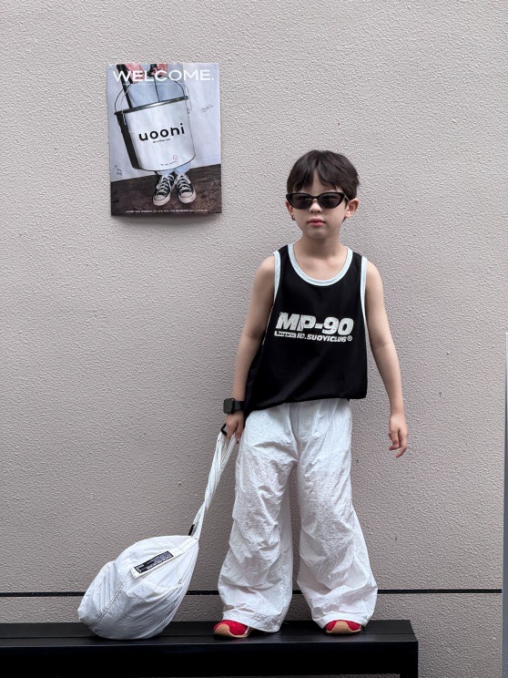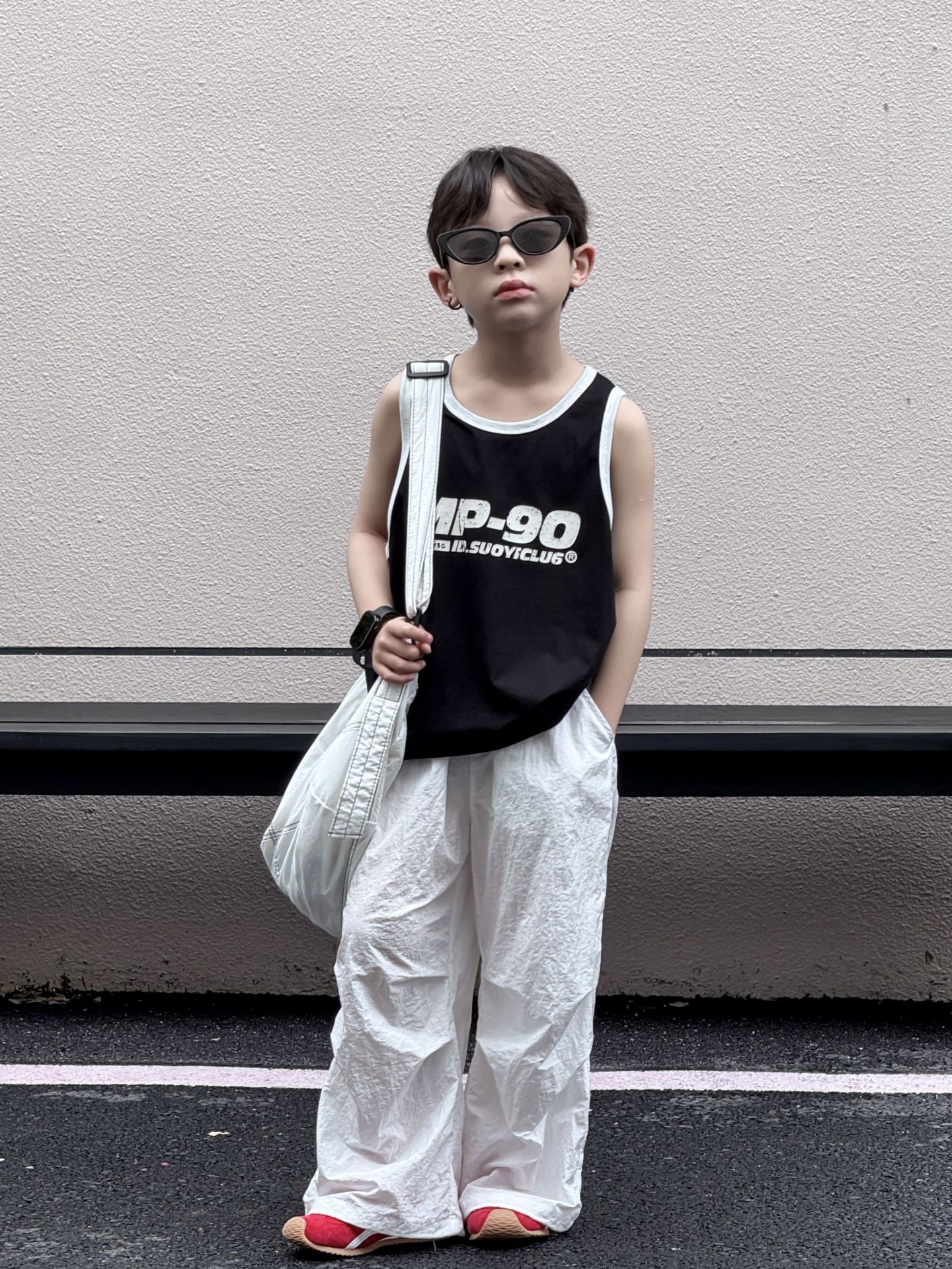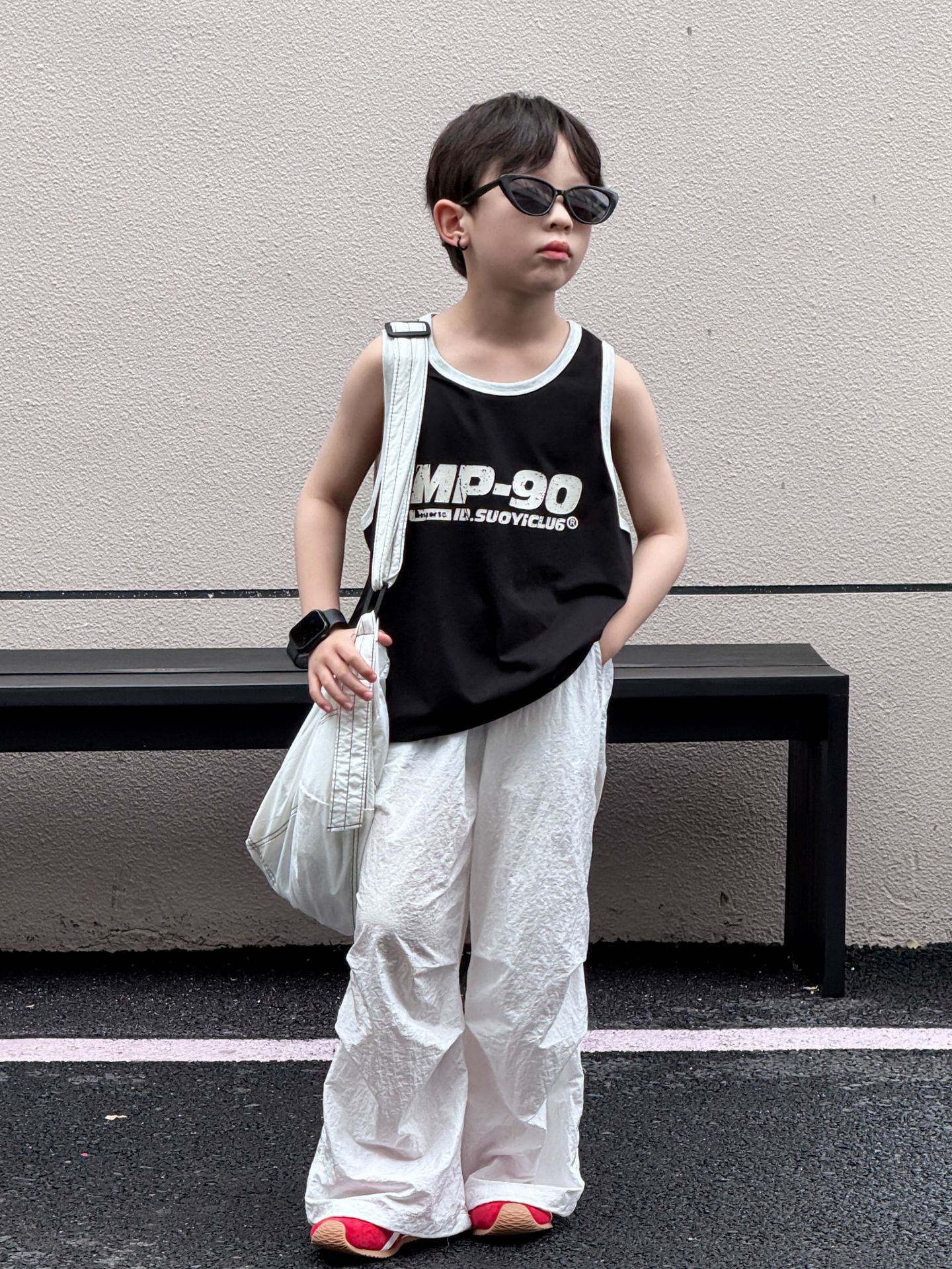 25 여름 한국 아동복 중소 어린이 소년 편지 인쇄 저지 레트로 스포츠 세척 면화 민소매 조끼 탑