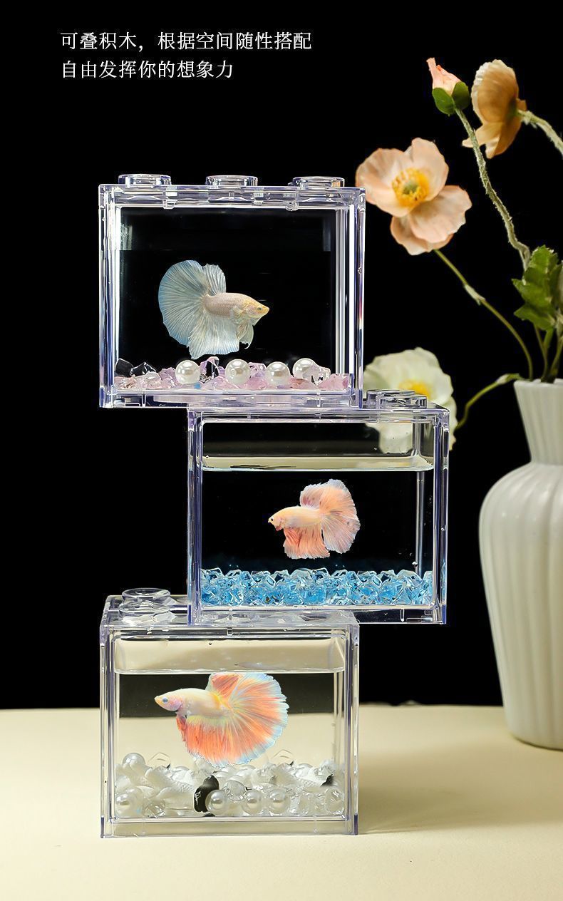 태국 Betta 탱크 투명 아크릴 거실 작은 데스크탑 식탁 나무 상자 금붕어 특별 2024 새로운 스타일스토어 가기