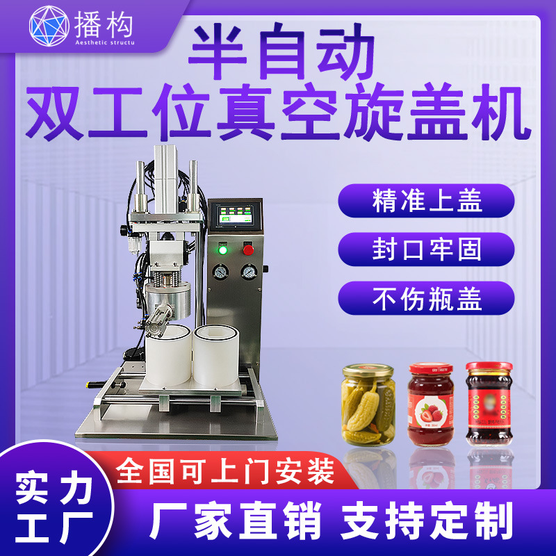 반자동 진공 캡핑 기계 이중 스테이션 Laoganma 칠리 소스 유리 병 쇠고기 소스 캔 씰링 및 캡핑 기계
