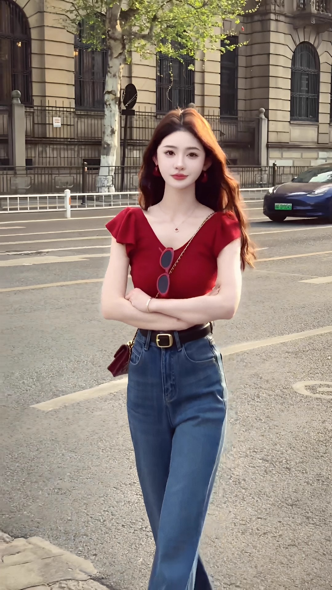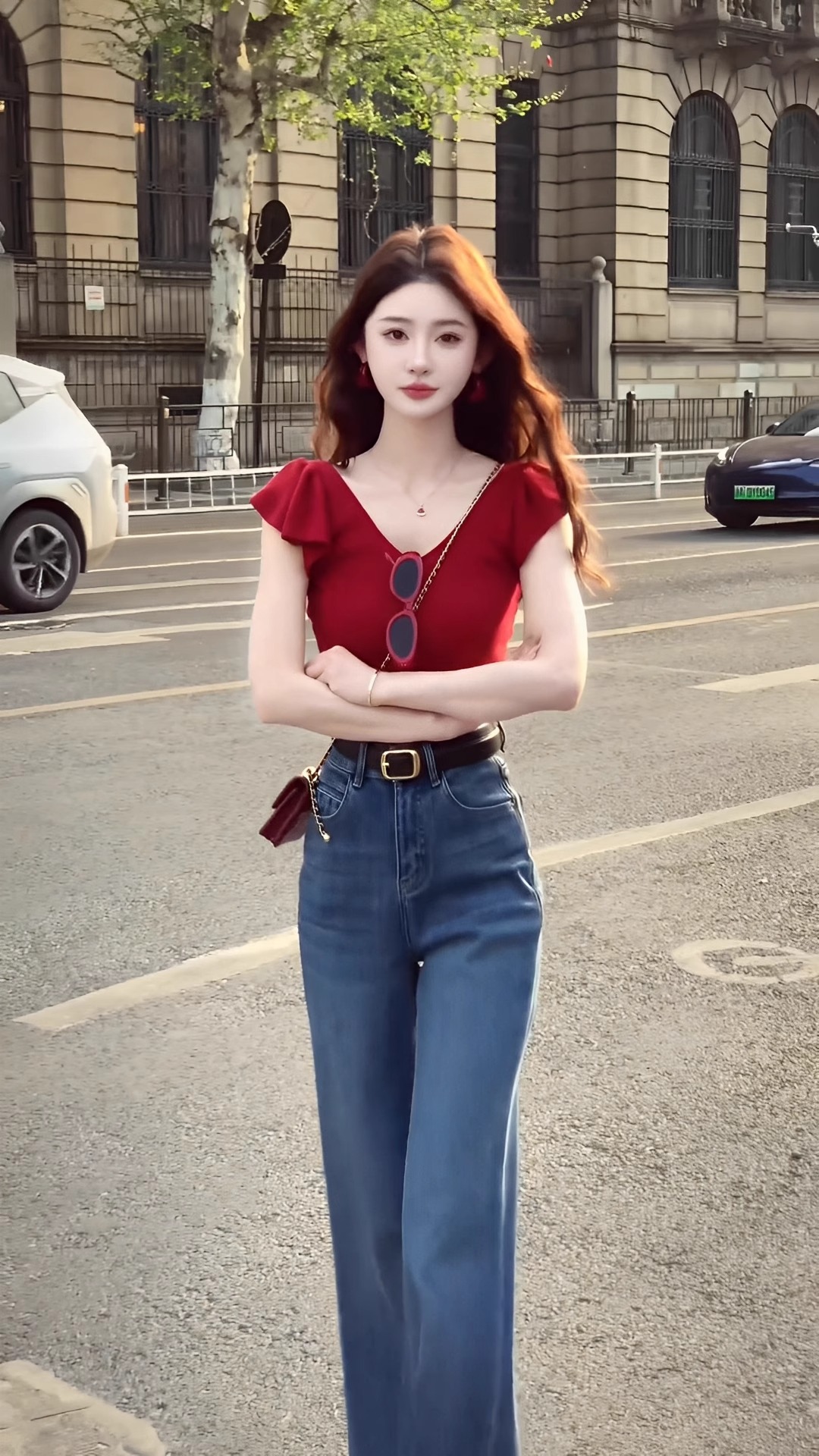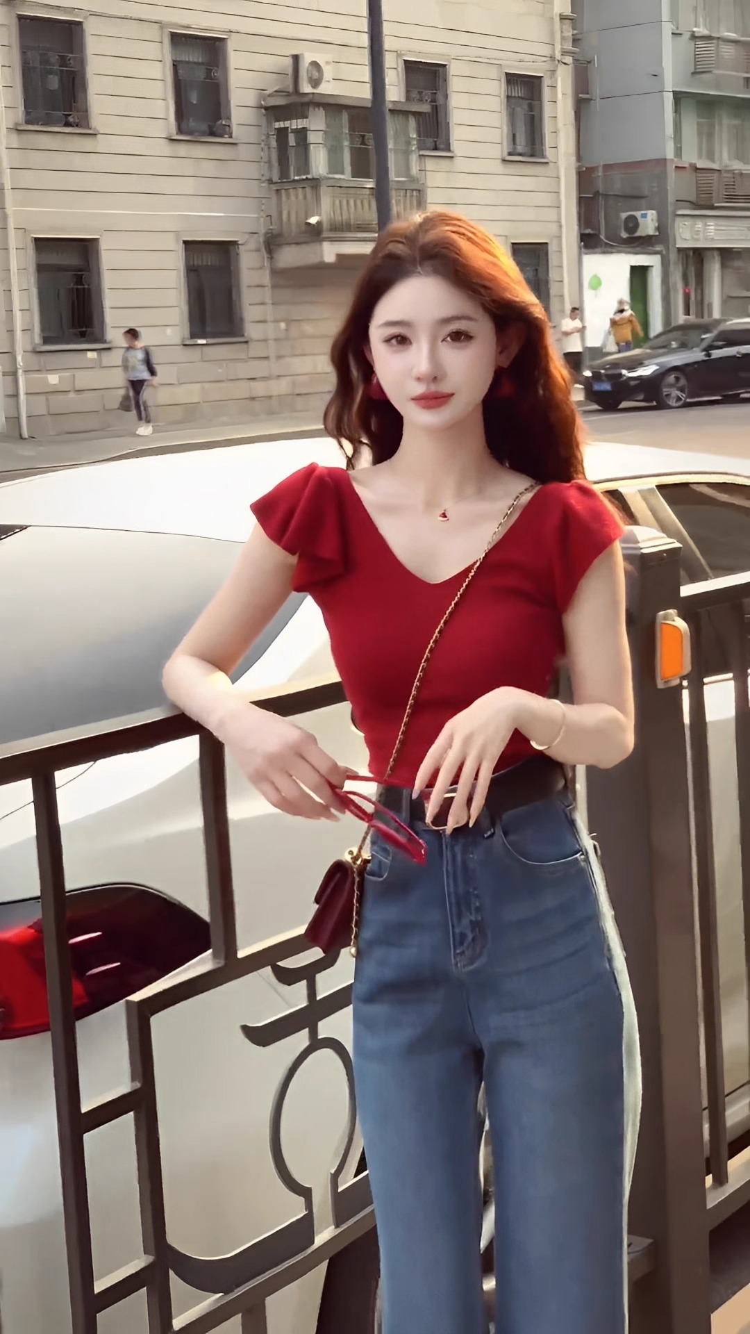 프랑스 하이 엔드 센스 레드 플라잉 슬리브 탑 여성의 2025 년 여름 새로운 아이스 실크 니트 짧은 소매 디자인 센스 틈새스토어 가기
