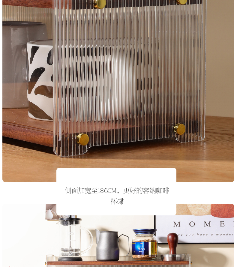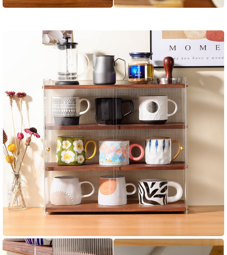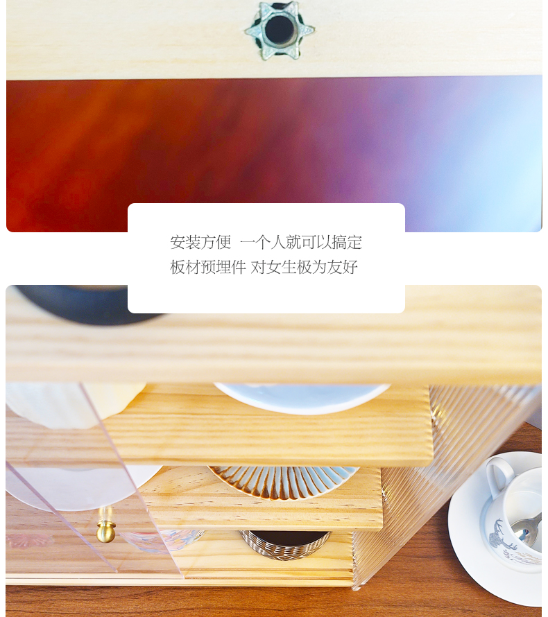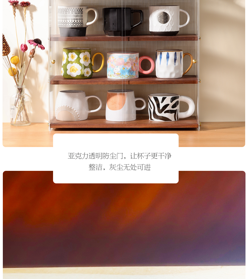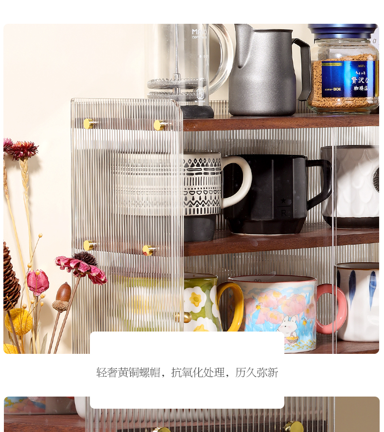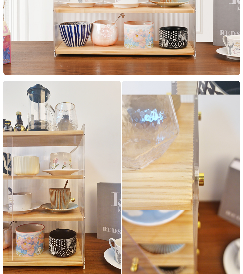 데스크탑 컵 보관함 단단한 나무 슬라이딩 도어 커피 차 세트 보관 캐비닛 식탁 아크릴 방진 컵 홀더