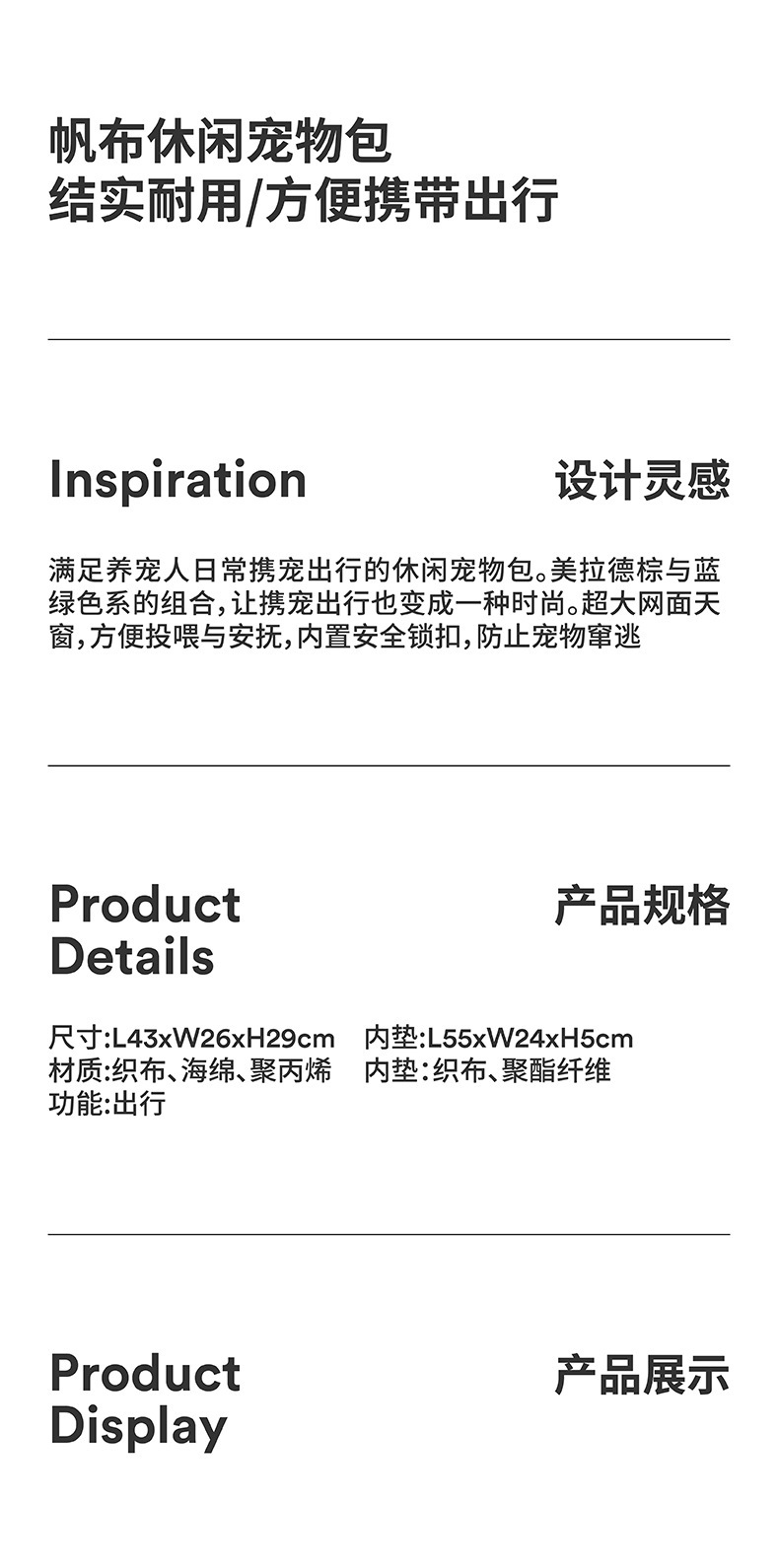 • 캔버스 캐주얼 애완동물 가방(매트 없음, 매트 버전 없음)